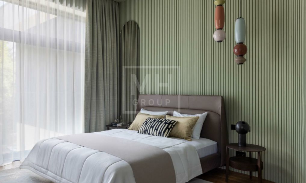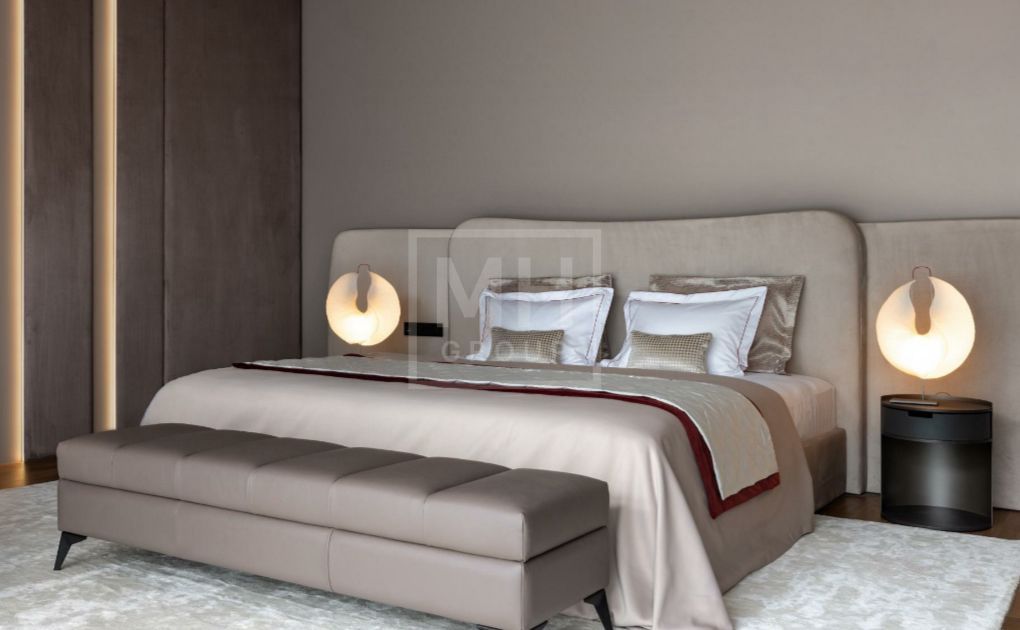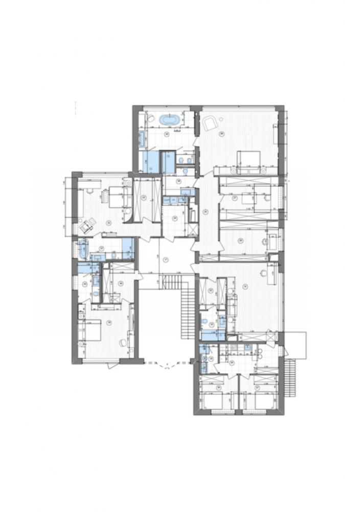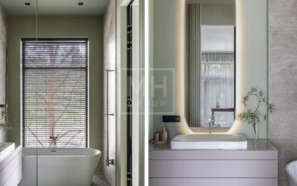 Этаж 2: мастер-блок (спальня, гардеробная, с/у, кабинет), 3 спальни, каждая - с с/у и гардеробной, постирочная, блок для персонала с отдельным входом (кухня, 2 спальни, с/у).