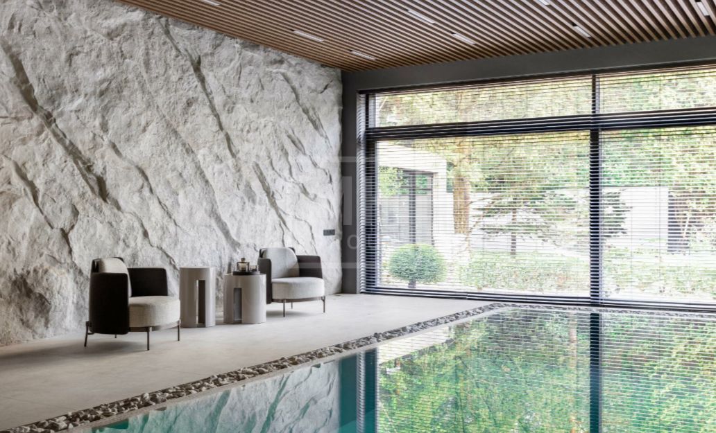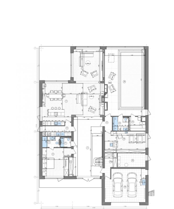 Этаж 1: холл со вторым светом, кухня-гостиная-столовая с камином, малая гостиная, рабочая кухня, спальня с с/у, гостевой с/у, СПА-зона (бассейн, сауна, с/у), Beauty Room, кладовая, котельная, гараж на 2 авто.