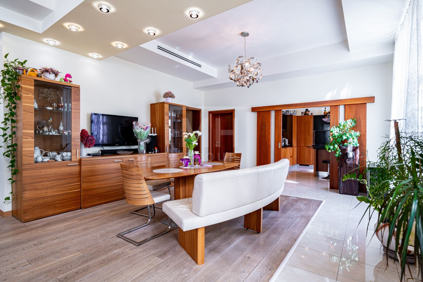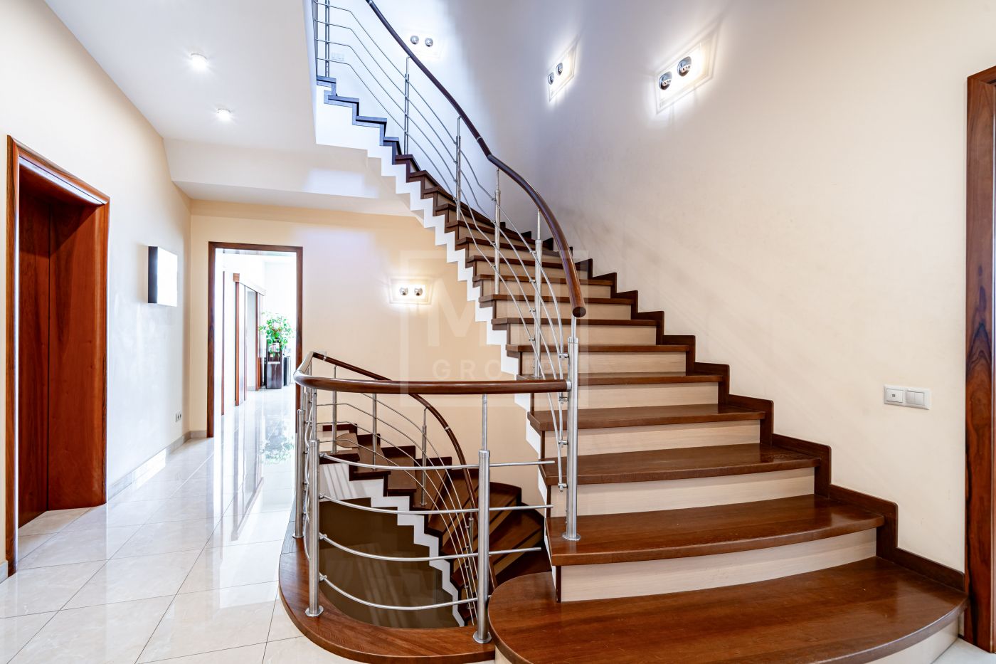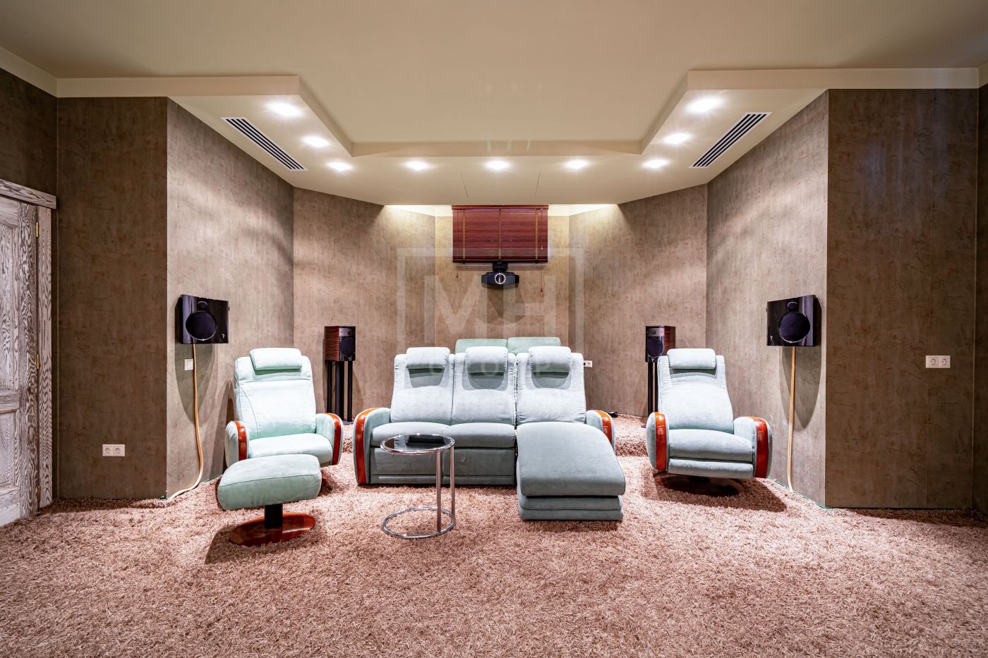 Этаж 1: Холл,2 гардеробных,Кабинет с камином,С/у,Кухня scavolini,с техникой miele, liebherr и siemens,Зимний сад,Столовая Гостиная,Гараж на 2 автомобиля,Котельная