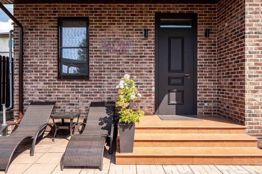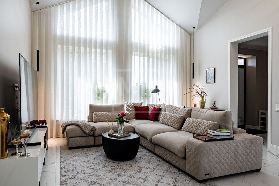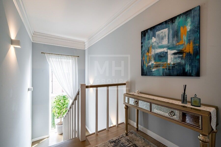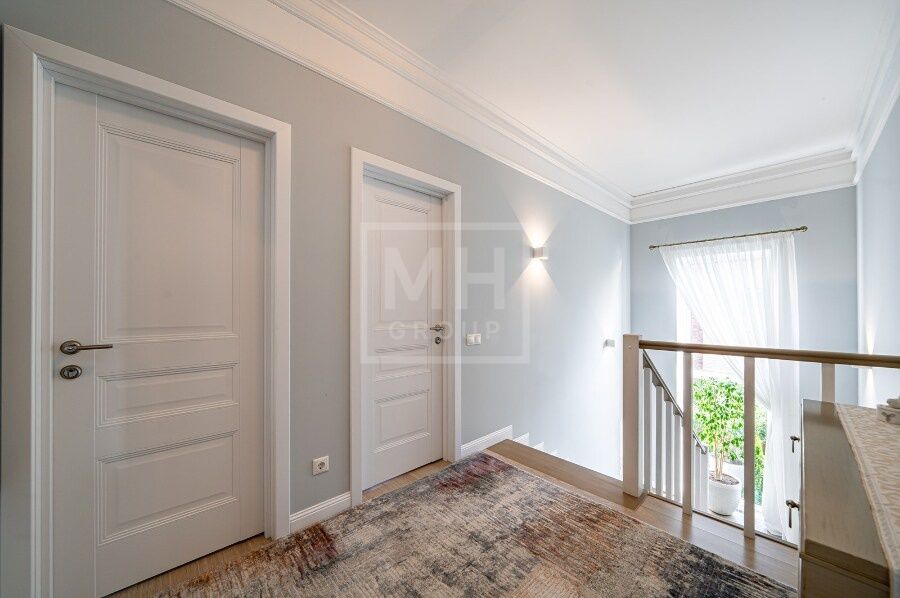 В домах: 5 спален, 4 санузла, 3 гардеробные, 2 кухни, 2 гостиные-столовые, баня, зимний сад. Качественное строительство — красный глиняный кирпич, фасад из бельгийского кирпича Wienerberger, высота потолков
