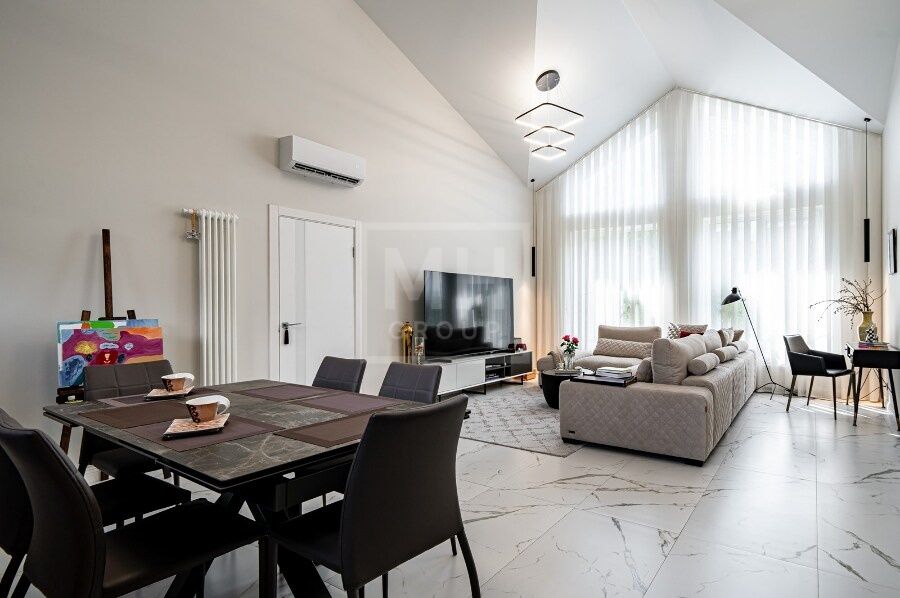 Общая площадь двух домов — 360 м², участок 10 соток с ландшафтом, садом и гаражом-навесом на 2 авто.