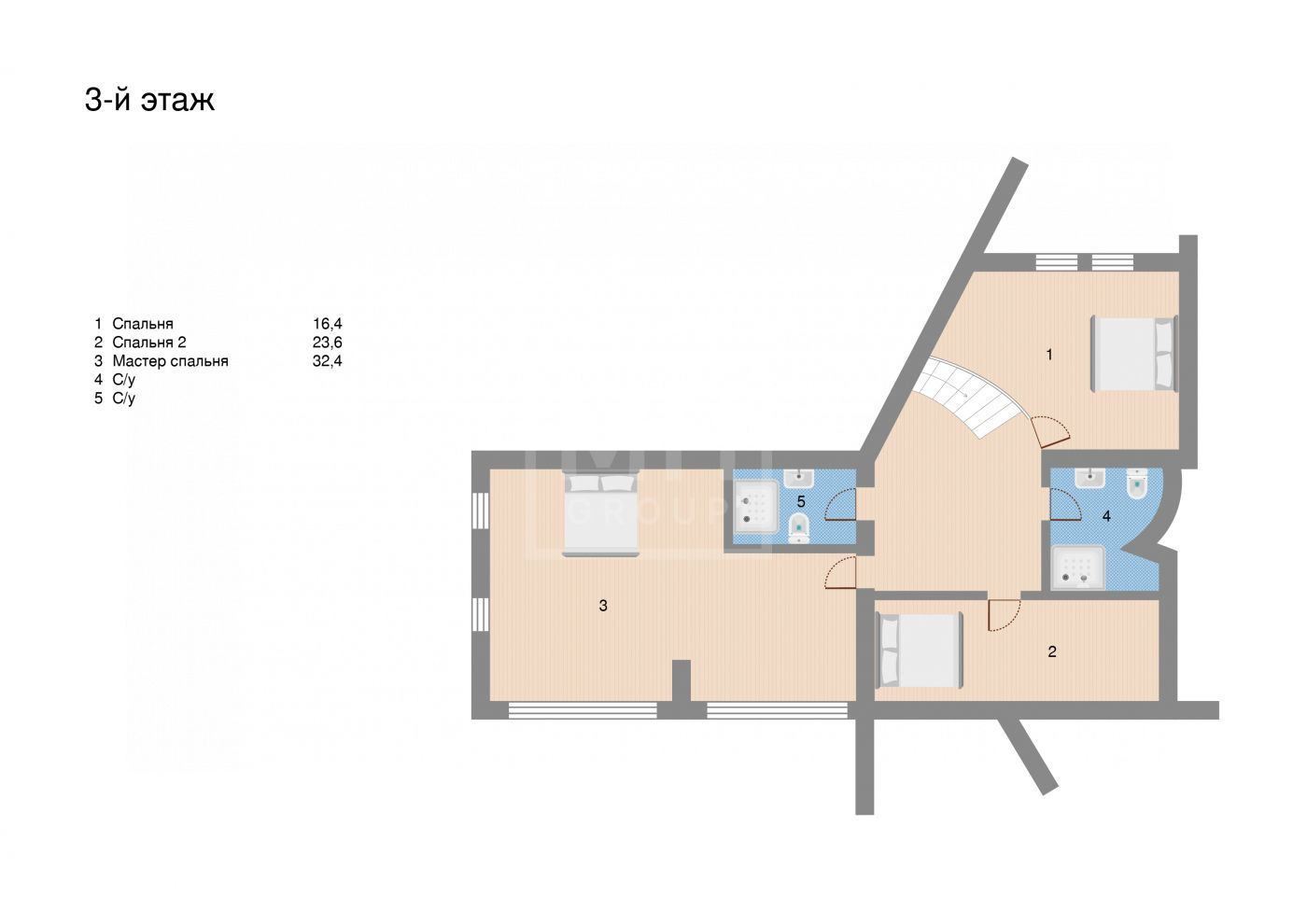 Этаж 3: холл, мастер спальня с с/у и просторной гардеробной над спальней, спальня с балконом, спальня, с/у