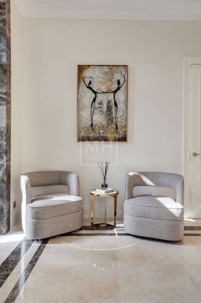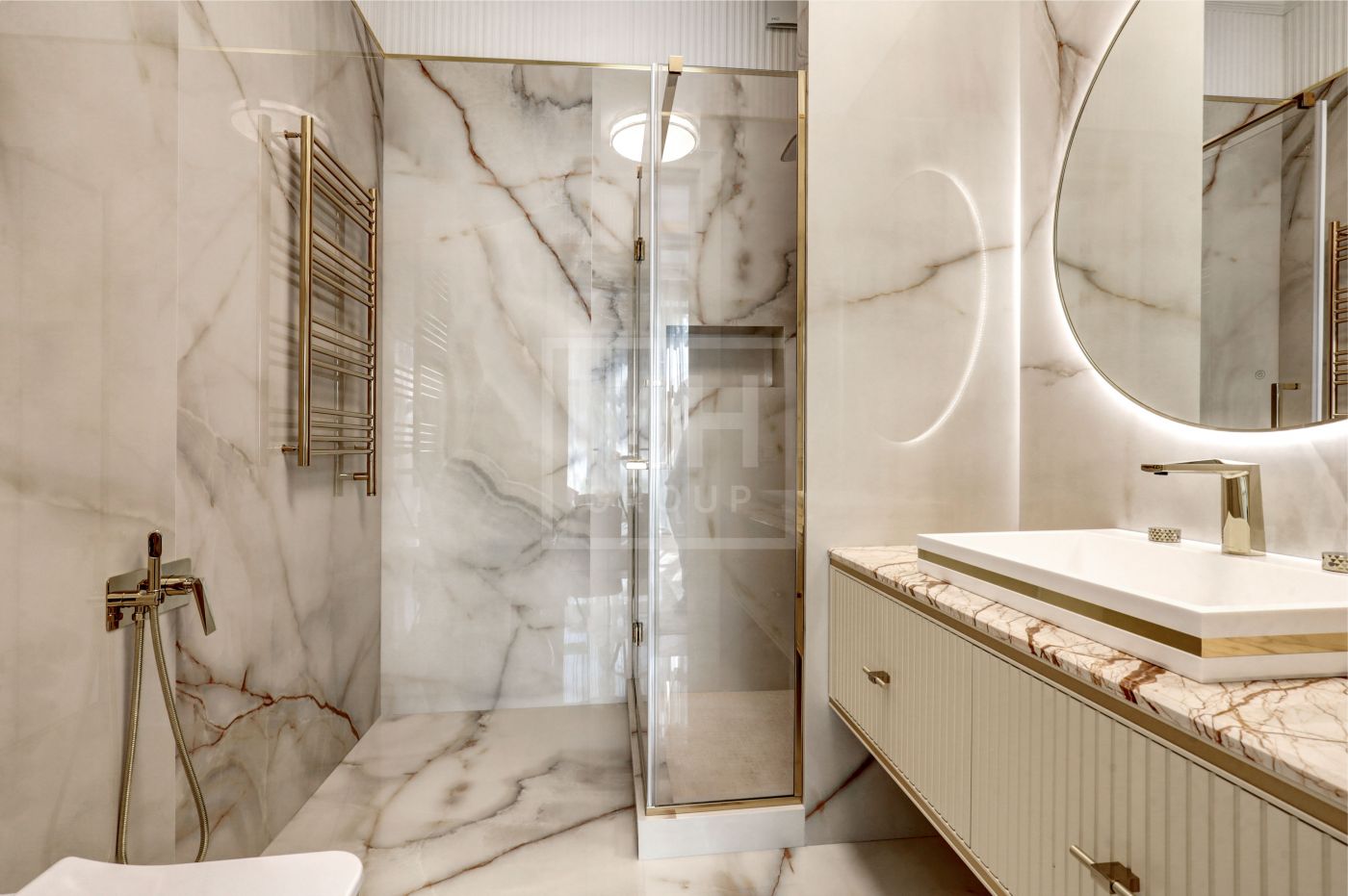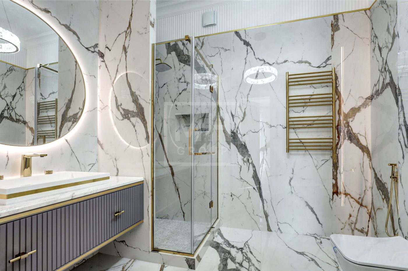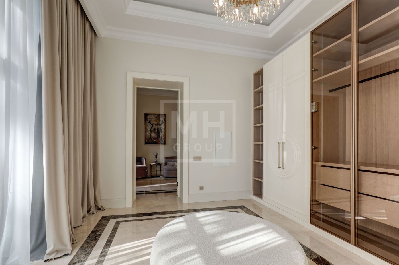 Этаж 1: Холл, большая гардеробная комната с постирочной, спальня с су и гардеробной, камин с лаунж зоной, просторная кухня гостиная с мраморным островом и выходом на терассу, гостевой су , котельная.