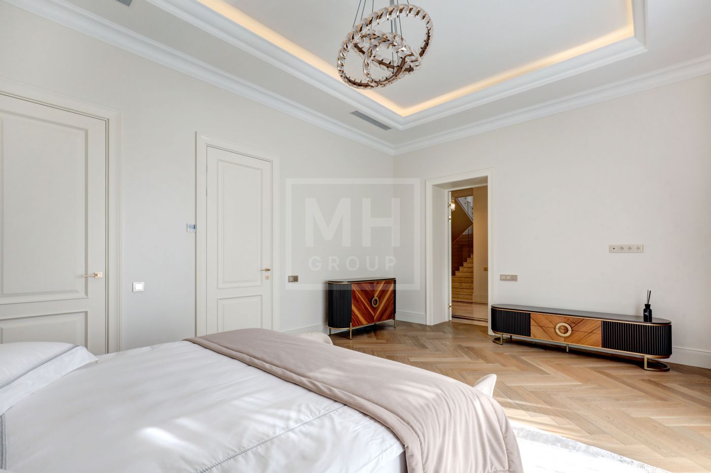 Этаж 2: мастер блок ( 2 спальни или спальня с гардеробной комнатой) с просторным су с ванной и душем, детская с су и гардеробной, гостевая спальня ( или кабинет ) с санузлом и гардеробом.