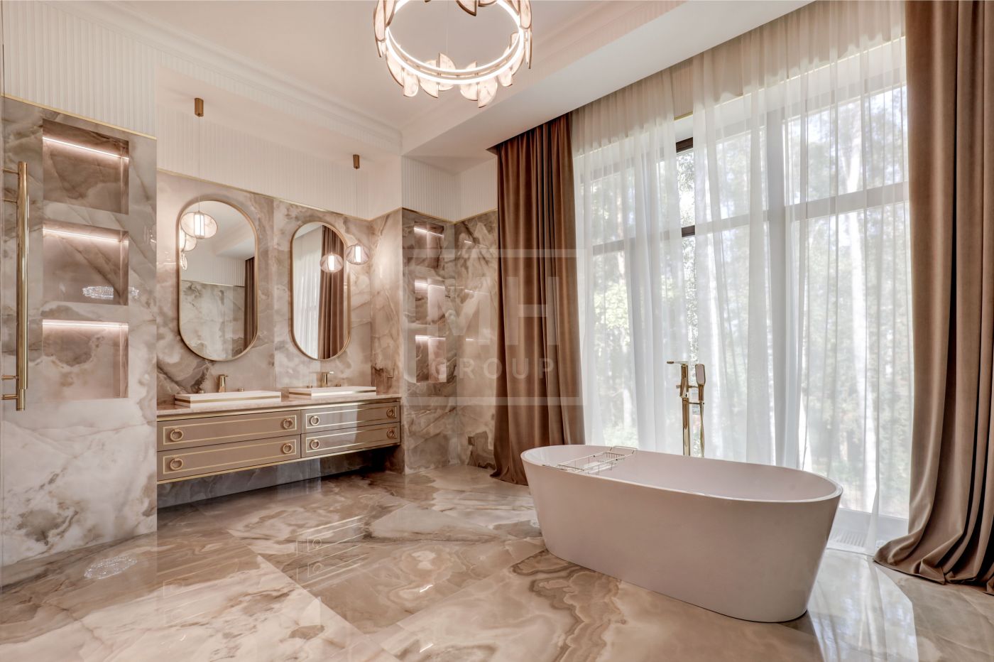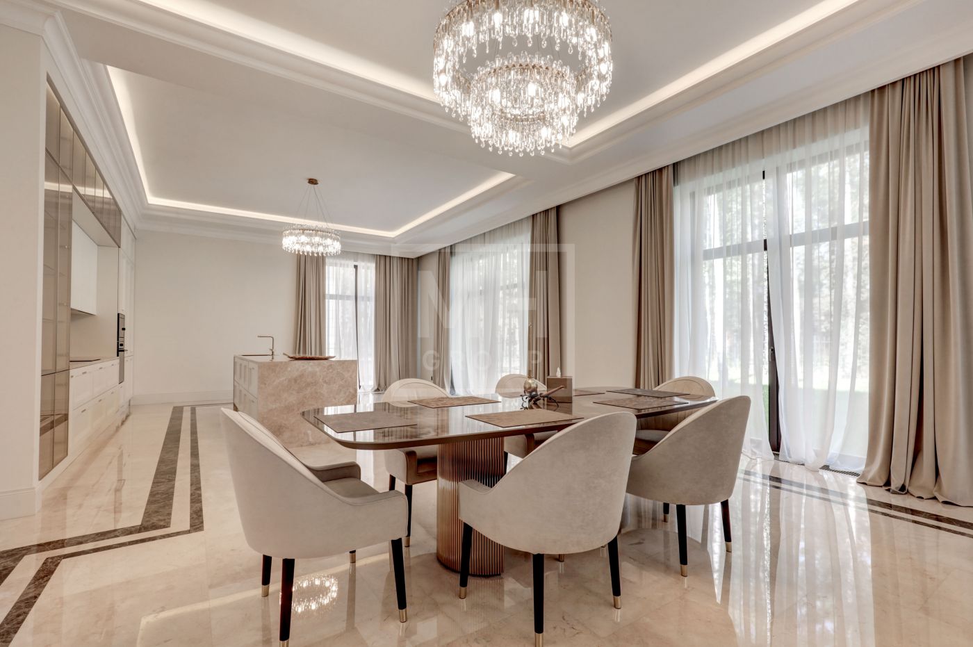 Элитный хорошо охраняемый коттеджный посёлок высокого уровня Коровино.Новый дом! Дорогой дизайнерский ремонт 2025 г! Никто не жил! Кирпичный дом 440 метров, под ключ, на шикарном лесном участке 13 соток В доме 5 спален с су и гардеробными, полы - мрамор с подогревом, стены венецианская штукатурка, современная кухня с бытовой техникой и островом, панорамное остекление, дизайнерская мебель.