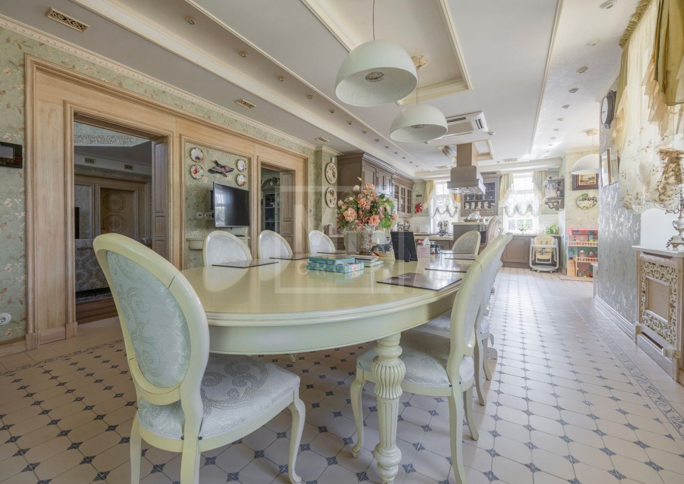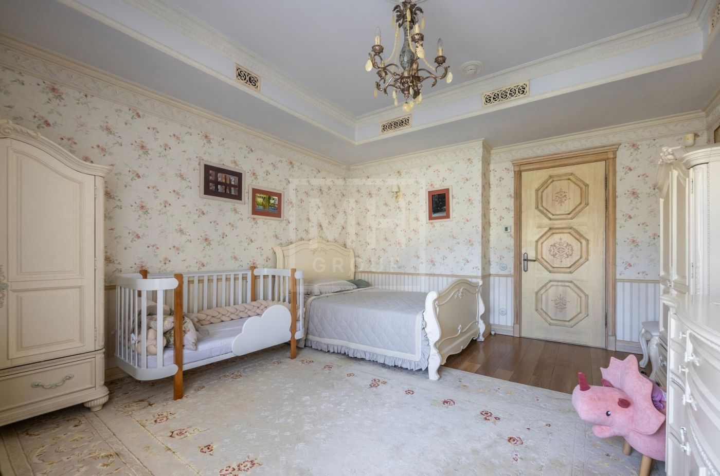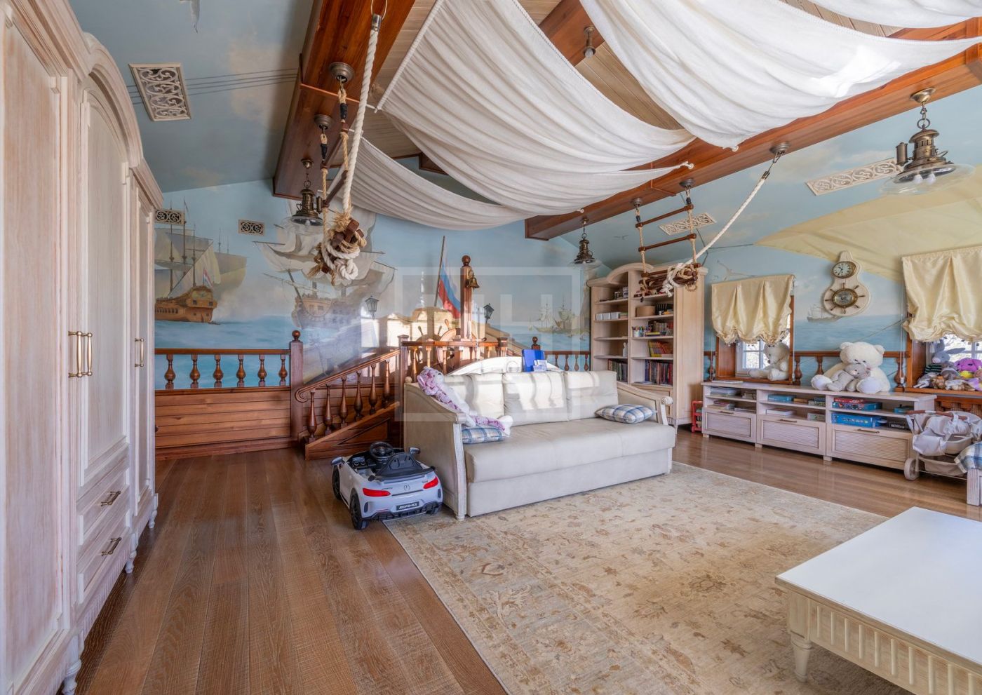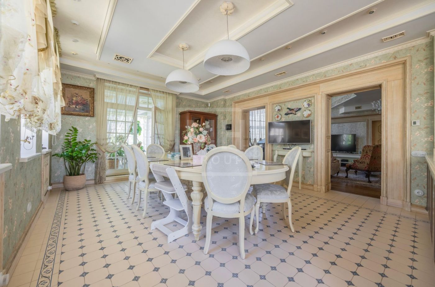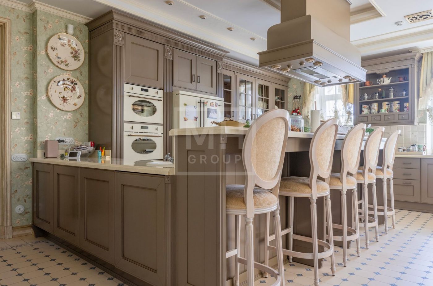 В камерной части поселка на участке почти 26 соток примыкающем к парковой зоне расположен уютный дом в стиле прованс.В доме дорогая мебель итальянских производителей, системы вентиляции и кондиционирования гармонично вписаны в интерьер дома. На участке так же расположен гостевой дом с гаражом на 2 авто и собственной мойкой. Изысканный ландшафт переходит в красивейшую часть прогулочной зоны поселка и является ее логическим продолжением.