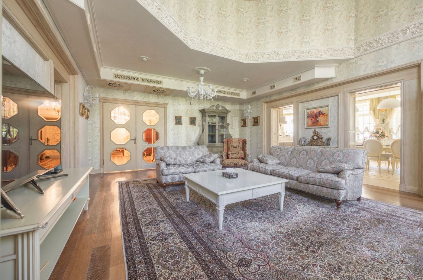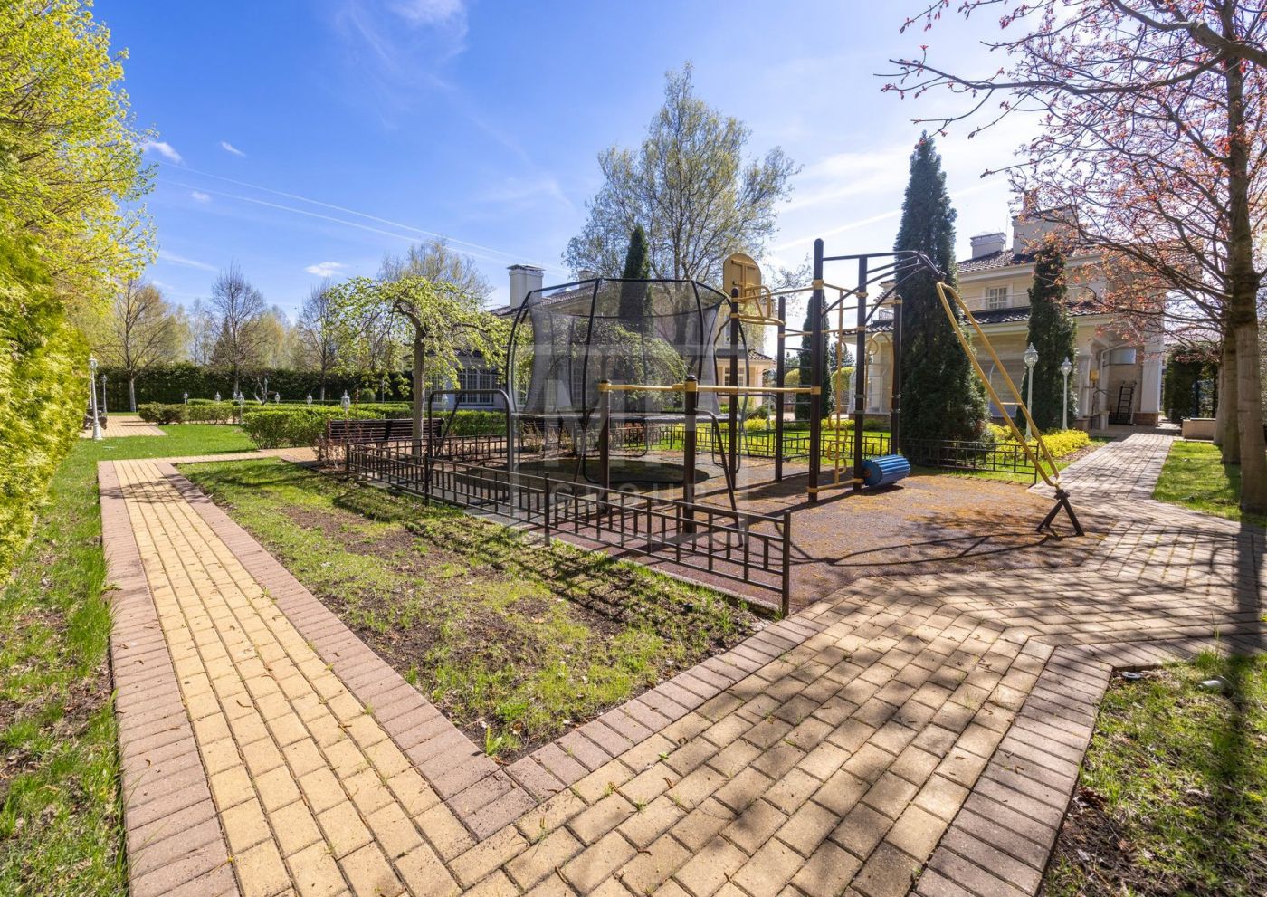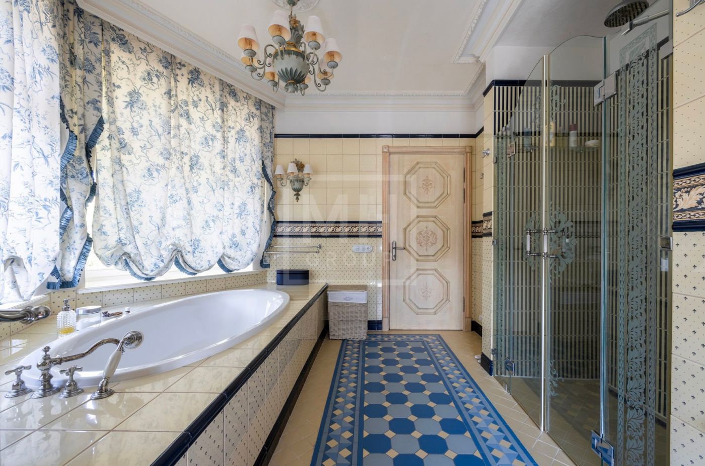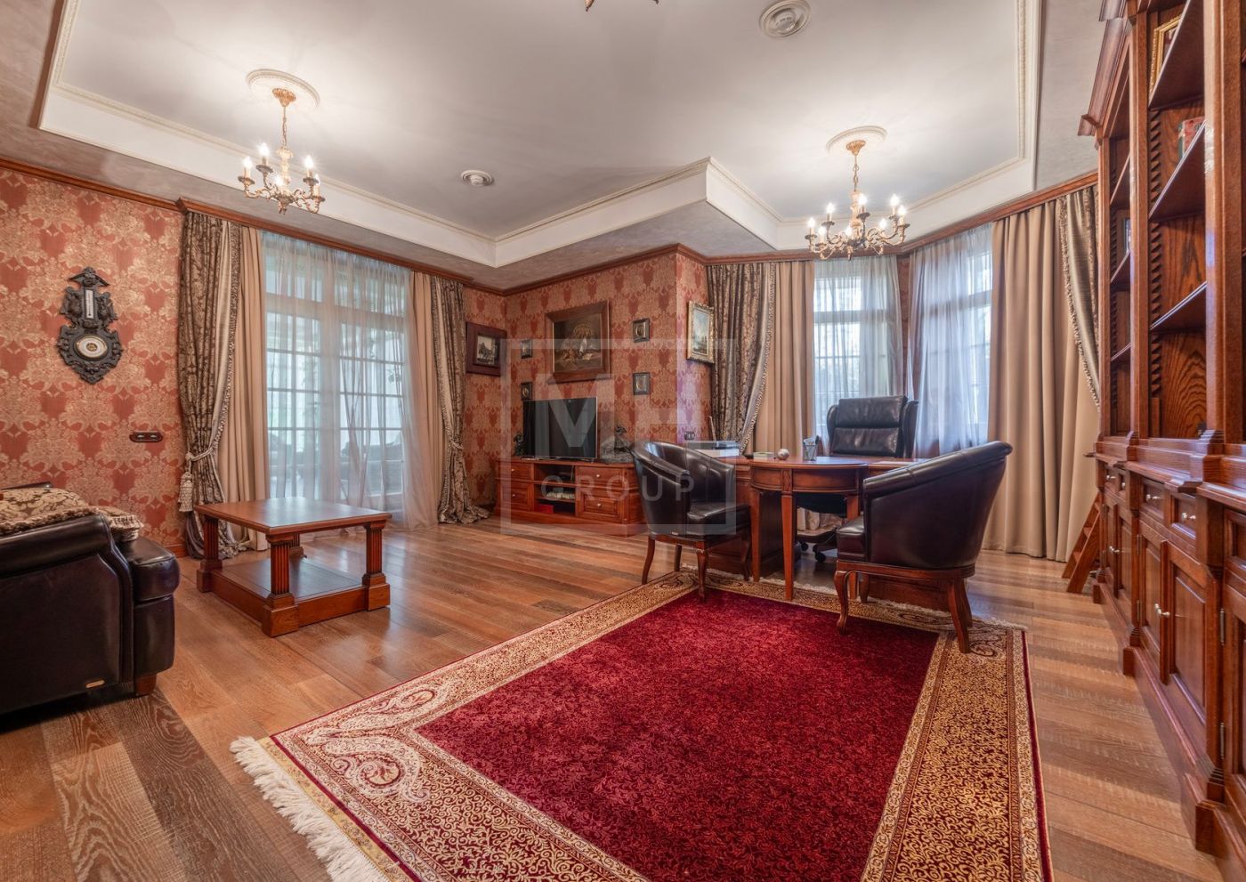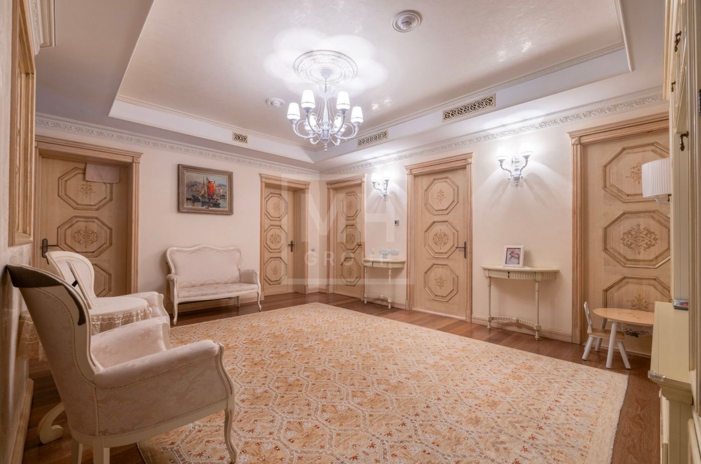 В камерной части поселка на участке почти 26 соток примыкающем к парковой зоне расположен уютный дом в стиле прованс.В доме дорогая мебель итальянских производителей, системы вентиляции и кондиционирования гармонично вписаны в интерьер дома. На участке так же расположен гостевой дом с гаражом на 2 авто и собственной мойкой. Изысканный ландшафт переходит в красивейшую часть прогулочной зоны поселка и является ее логическим продолжением.