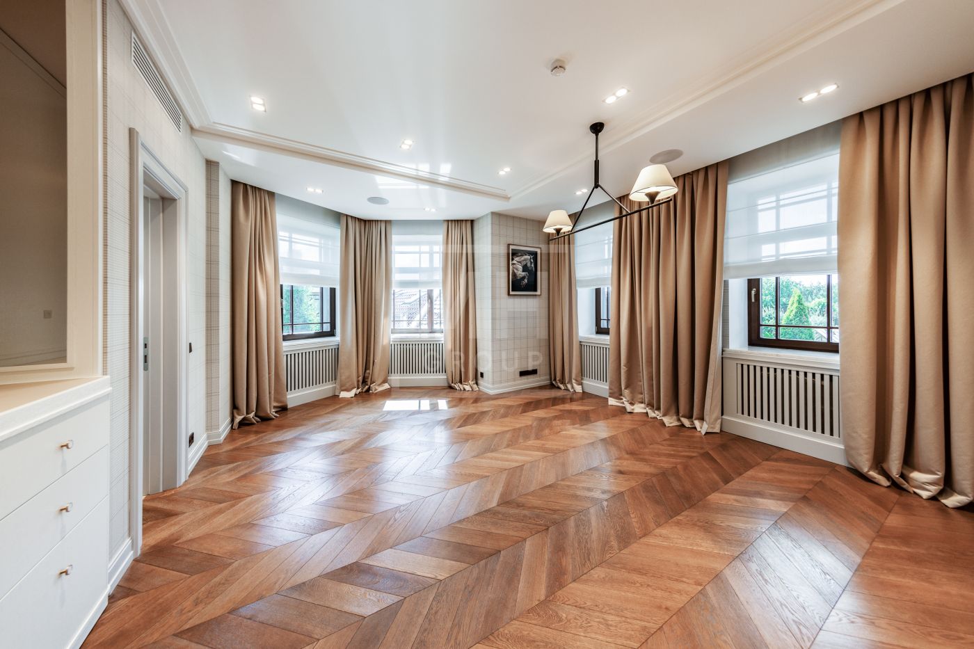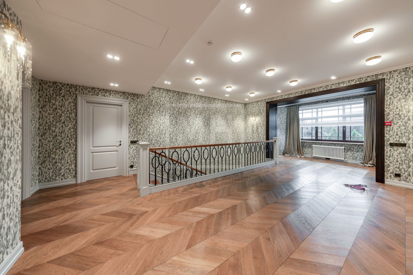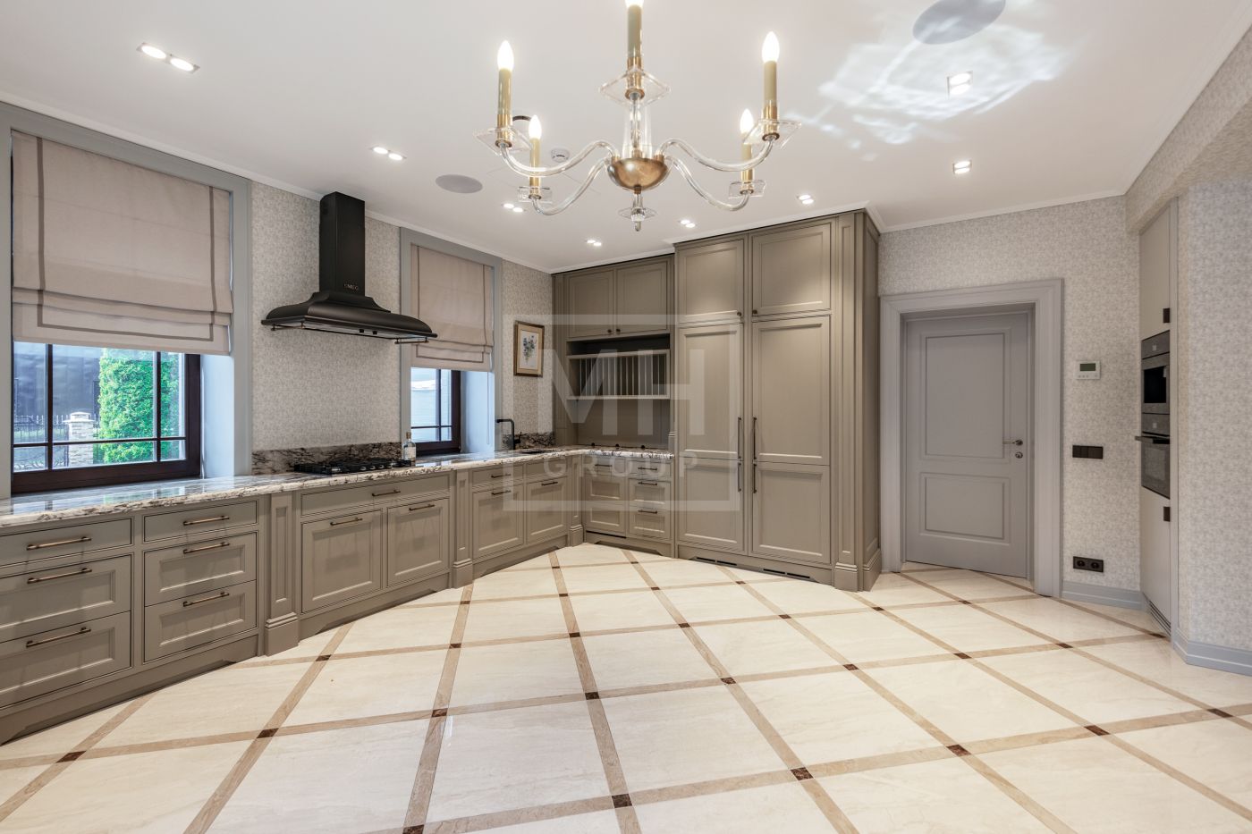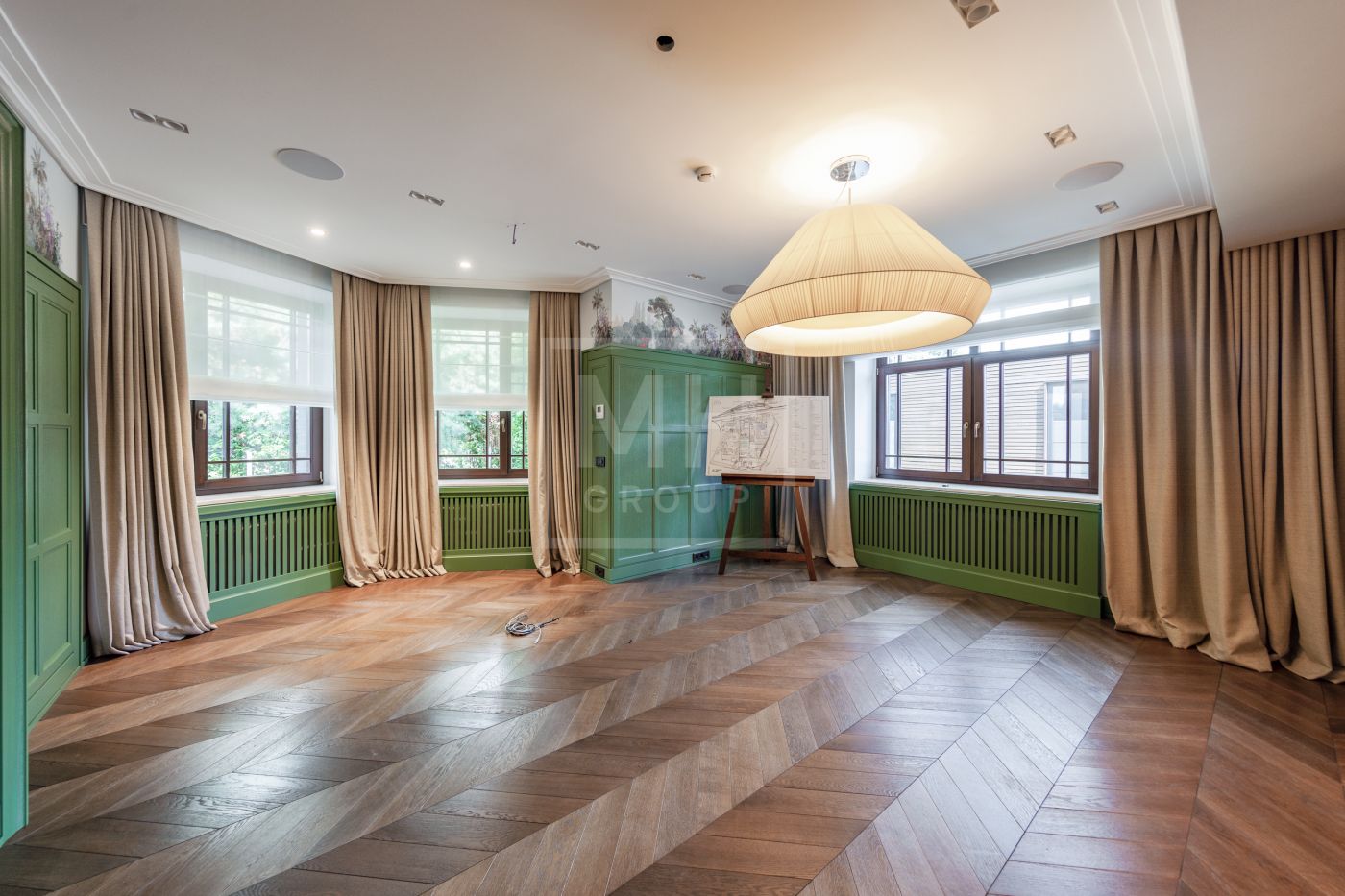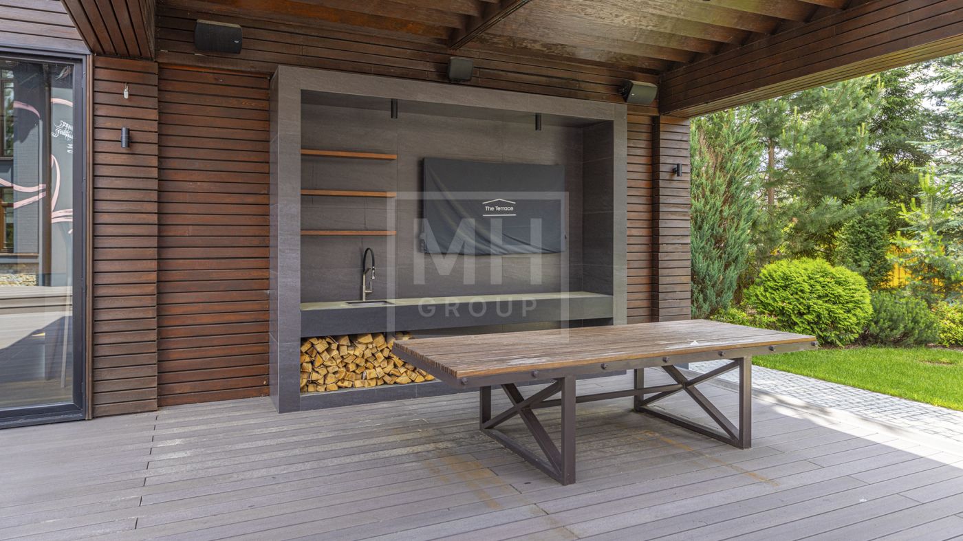 Загородный коттедж площадью 487 м² расположен на полевом участке 22 сотки,воплощает концепцию home office. Черный фасад с росписью в стиле стрит-арта создает выразительный современный образ, а большие окна наполняют интерьеры естественным светом. Внутреннее пространство выдержано в светлых тонах элементами неоклассики, где каждая деталь продумана до мелочей — премиальные обои американских производителей, мрамор, камин, авторская мебель и светильники. Особый шарм придают спортивные арт-объекты — антикварные клюшки, винтажный велосипед и футбольные мячи.Дом оснащен передовыми инженерными системами, включая канальное кондиционирование, увлажнение, приточную вентиляцию и систему «умный дом».Здесь создано идеальное пространство для комфортной работы и проведения деловых и личных встреч. Планировка включает просторную кухню-столовую с бильярдной зоной и винными шкафами, зал ожидания, 2 переговорные,5 кабинетов, гардеробную, кладовые и зону с ретро-автомобилем Bugatti. На каждом этаже расположены стойки ресепшен.