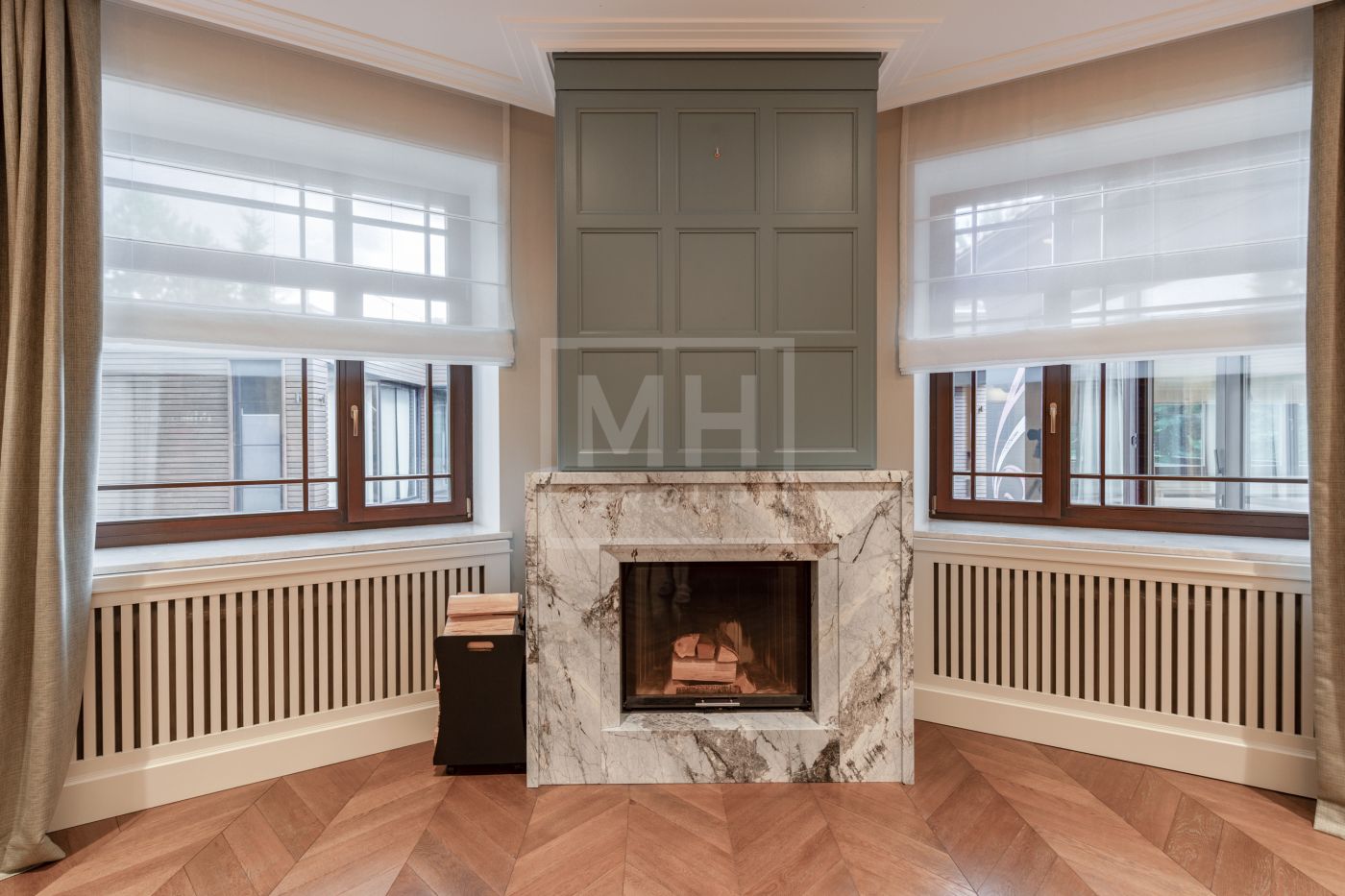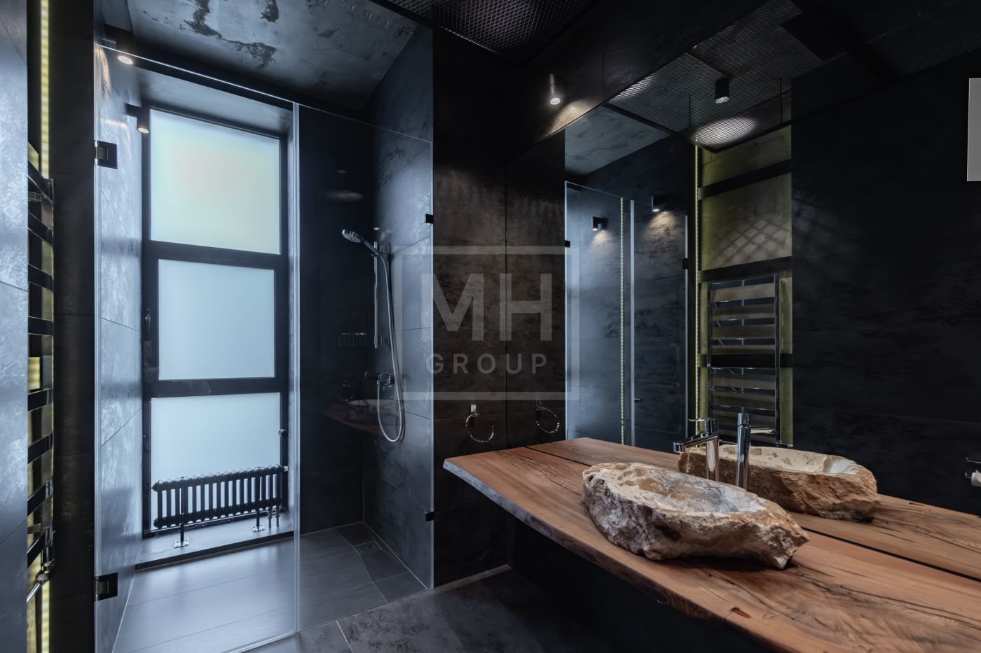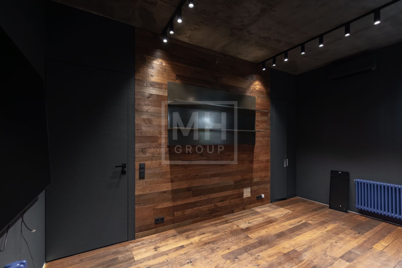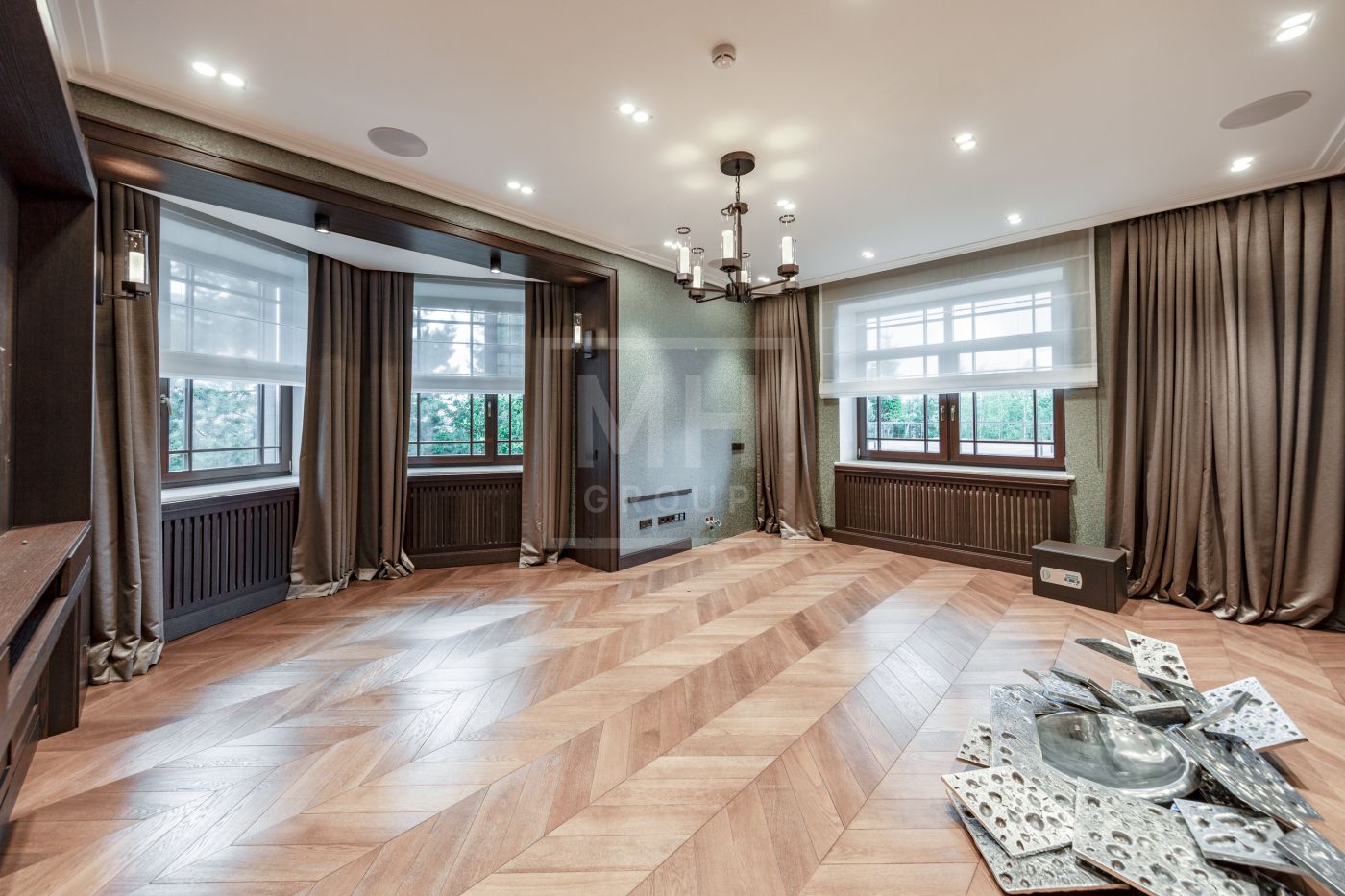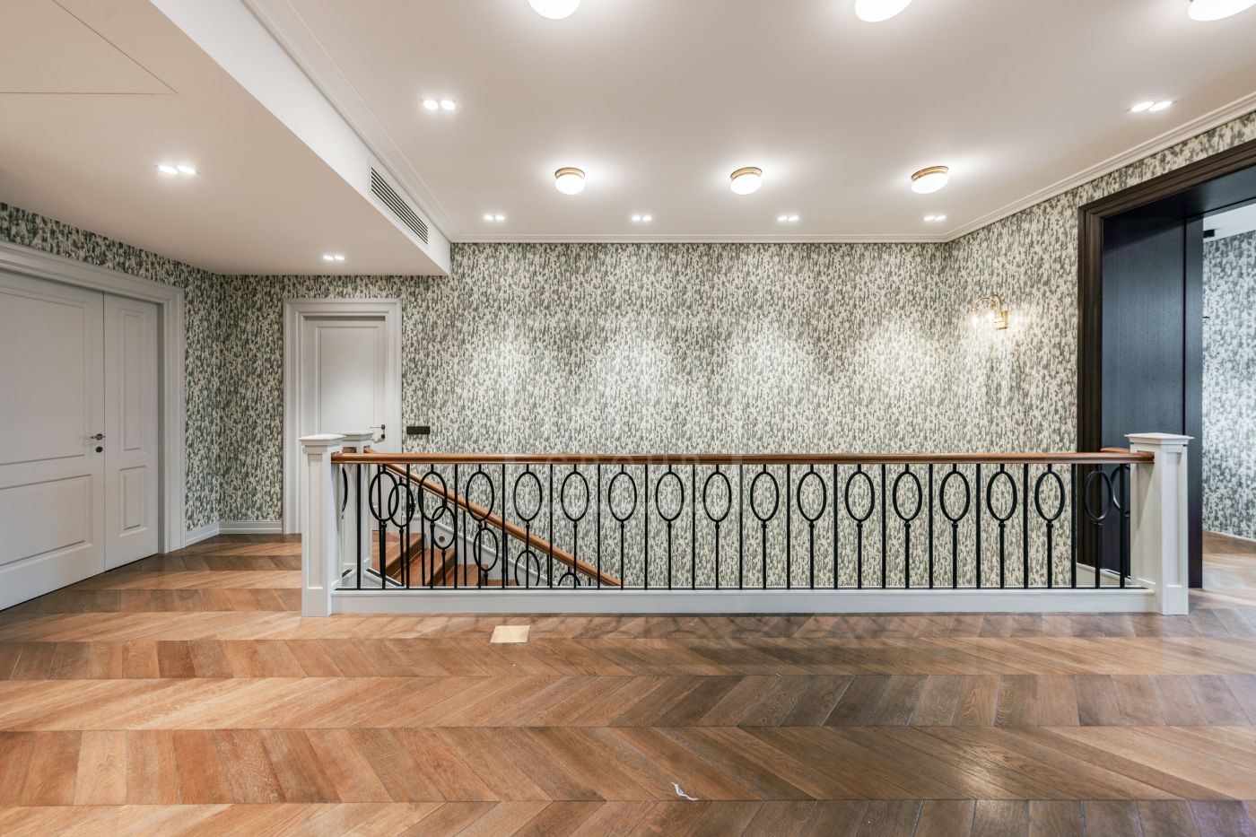Загородный коттедж площадью 487 м² расположен на полевом участке 22 сотки,воплощает концепцию home office. Черный фасад с росписью в стиле стрит-арта создает выразительный современный образ, а большие окна наполняют интерьеры естественным светом. Внутреннее пространство выдержано в светлых тонах элементами неоклассики, где каждая деталь продумана до мелочей — премиальные обои американских производителей, мрамор, камин, авторская мебель и светильники. Особый шарм придают спортивные арт-объекты — антикварные клюшки, винтажный велосипед и футбольные мячи.Дом оснащен передовыми инженерными системами, включая канальное кондиционирование, увлажнение, приточную вентиляцию и систему «умный дом».Здесь создано идеальное пространство для комфортной работы и проведения деловых и личных встреч. Планировка включает просторную кухню-столовую с бильярдной зоной и винными шкафами, зал ожидания, 2 переговорные,5 кабинетов, гардеробную, кладовые и зону с ретро-автомобилем Bugatti. На каждом этаже расположены стойки ресепшен.