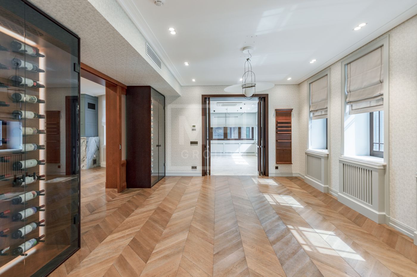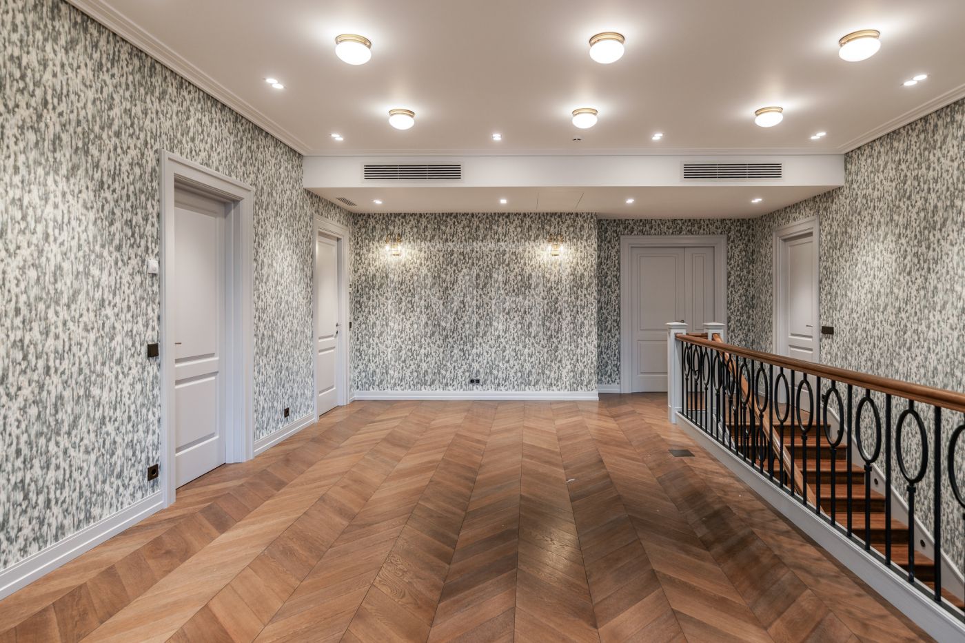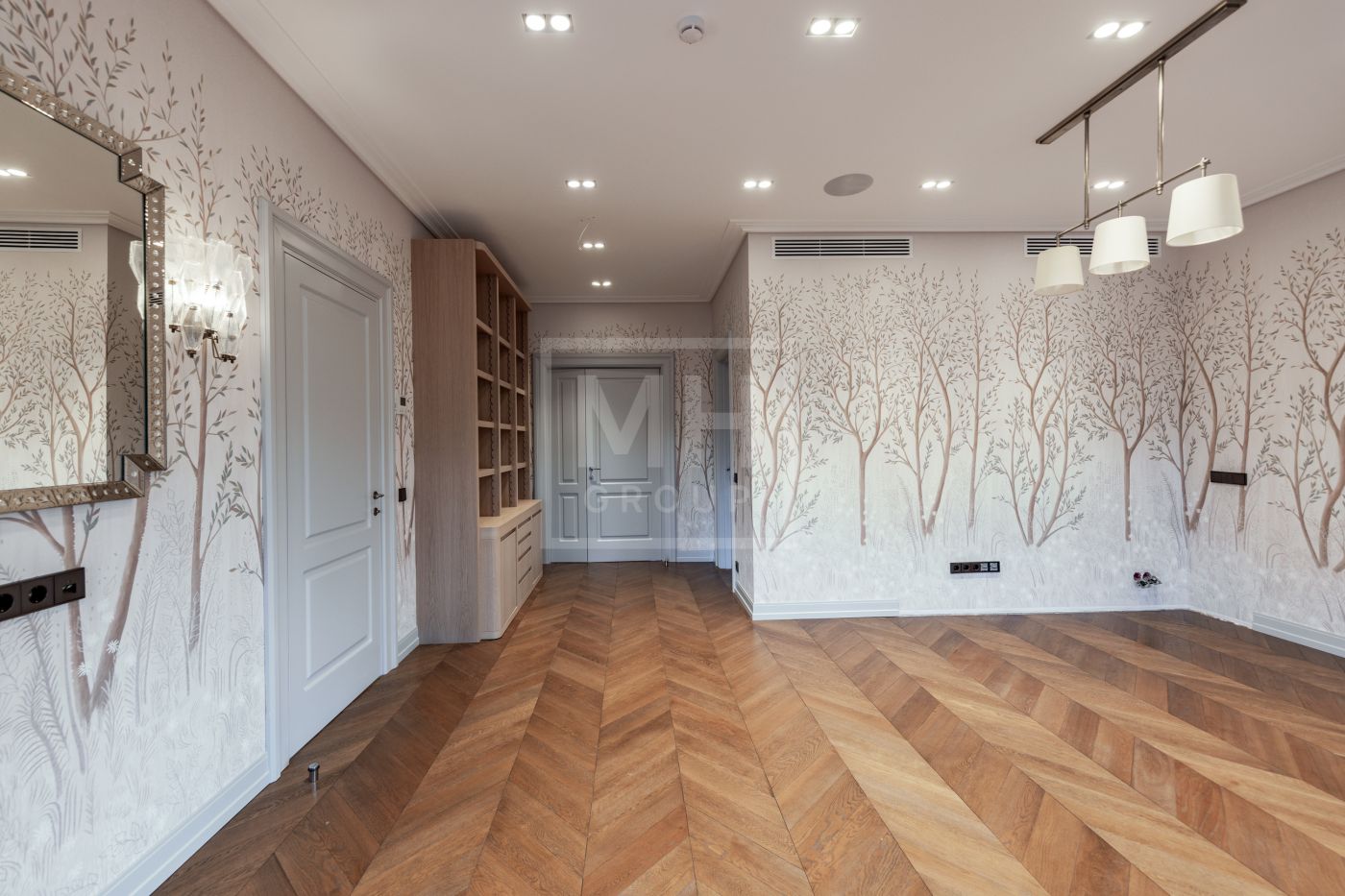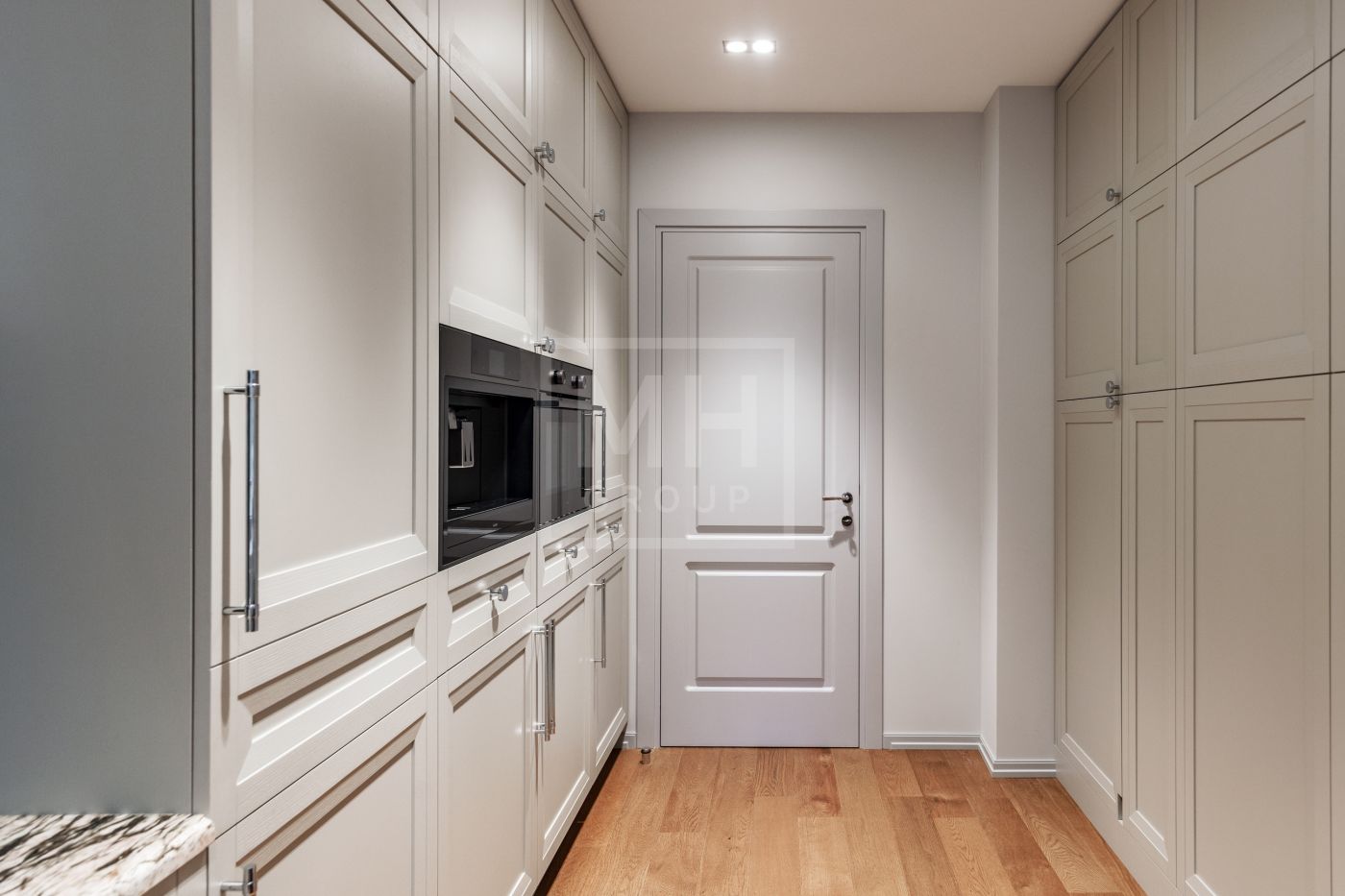 Загородный коттедж площадью 487 м² расположен на полевом участке 22 сотки,воплощает концепцию home office. Черный фасад с росписью в стиле стрит-арта создает выразительный современный образ, а большие окна наполняют интерьеры естественным светом. Внутреннее пространство выдержано в светлых тонах элементами неоклассики, где каждая деталь продумана до мелочей — премиальные обои американских производителей, мрамор, камин, авторская мебель и светильники. Особый шарм придают спортивные арт-объекты — антикварные клюшки, винтажный велосипед и футбольные мячи.Дом оснащен передовыми инженерными системами, включая канальное кондиционирование, увлажнение, приточную вентиляцию и систему «умный дом».Здесь создано идеальное пространство для комфортной работы и проведения деловых и личных встреч. Планировка включает просторную кухню-столовую с бильярдной зоной и винными шкафами, зал ожидания, 2 переговорные,5 кабинетов, гардеробную, кладовые и зону с ретро-автомобилем Bugatti. На каждом этаже расположены стойки ресепшен.