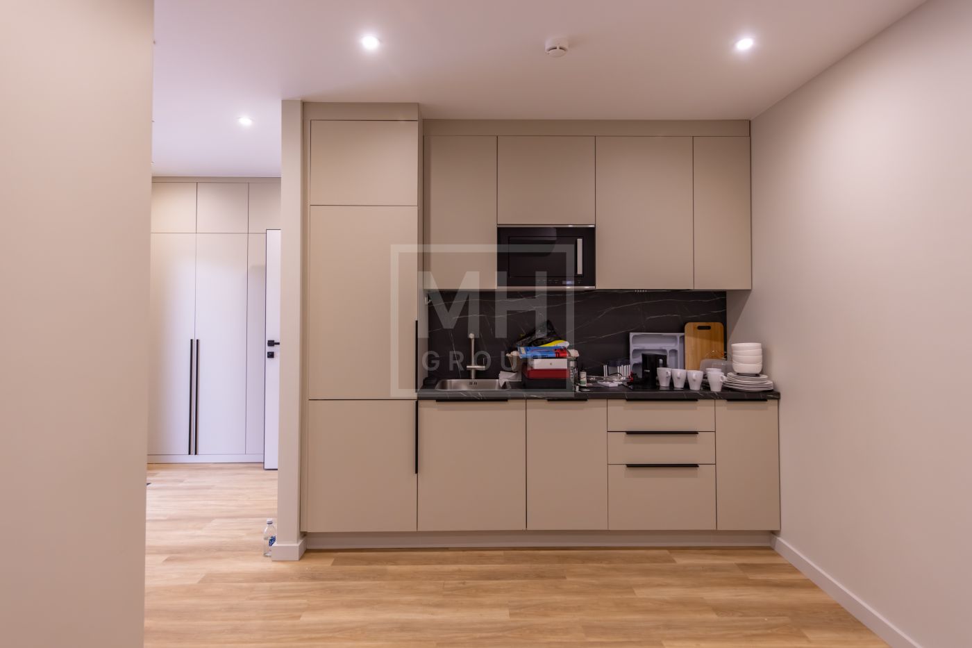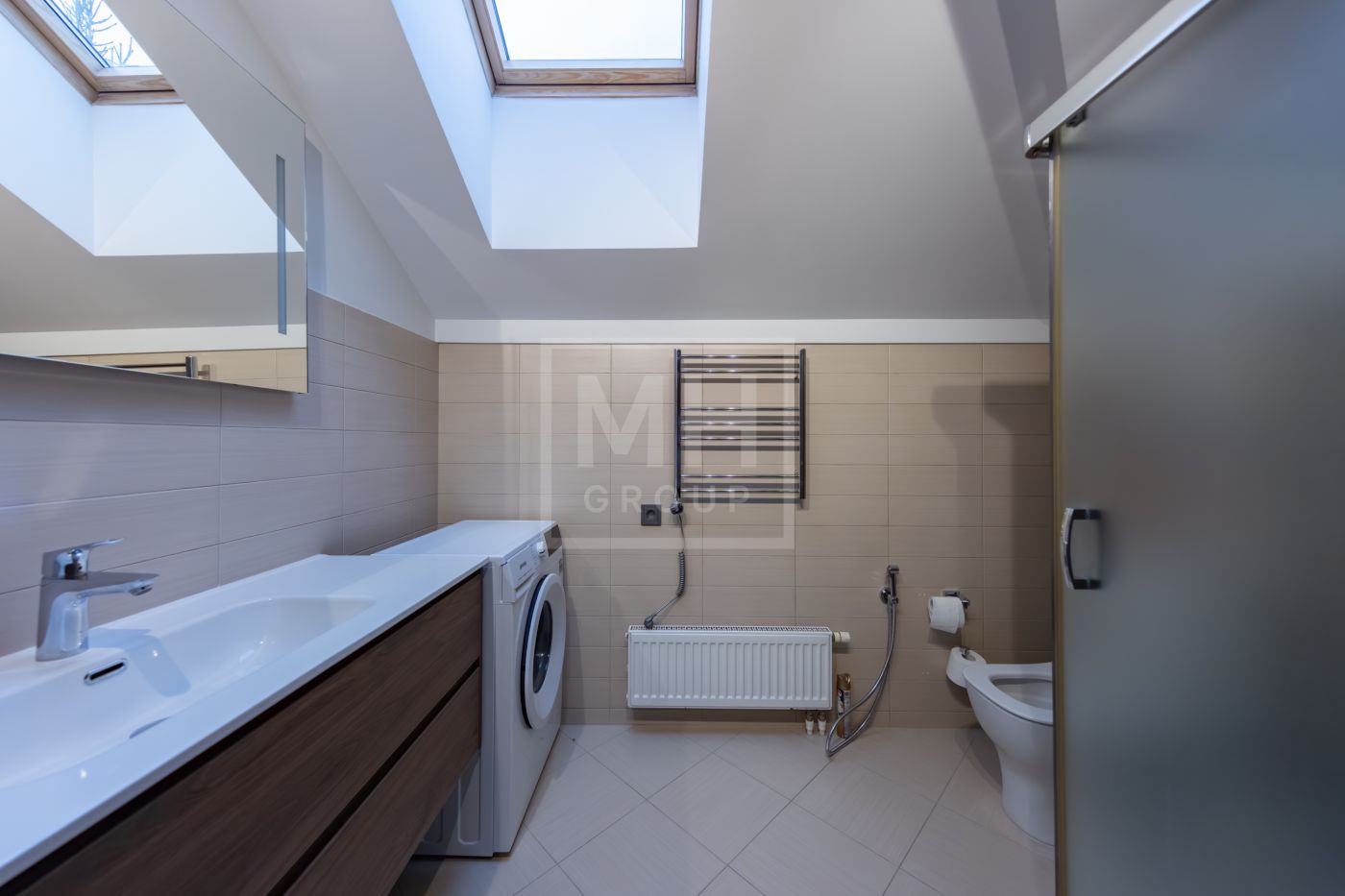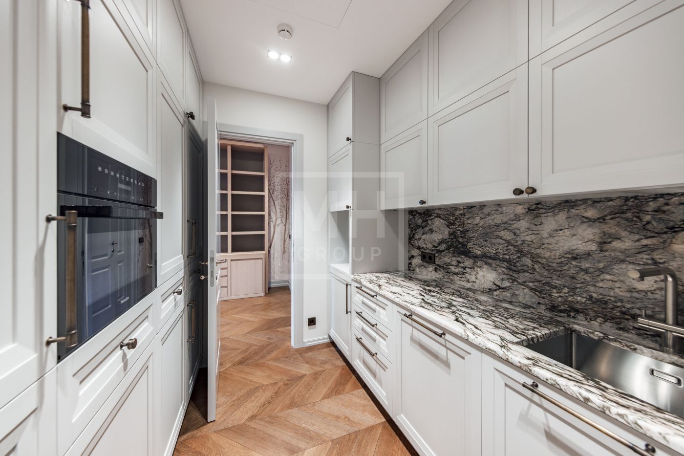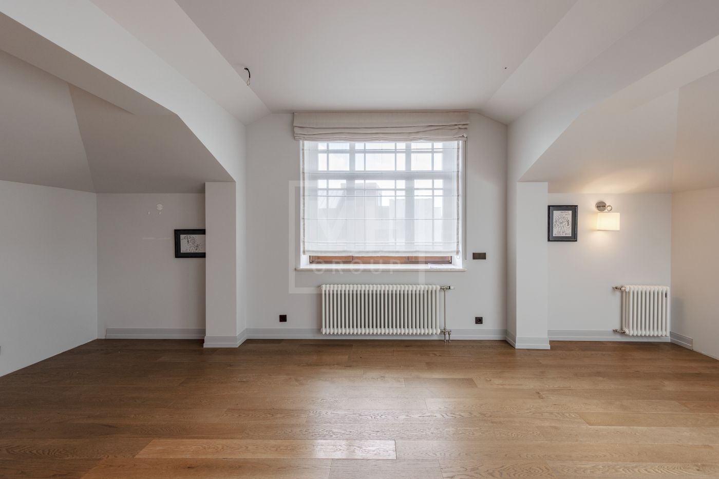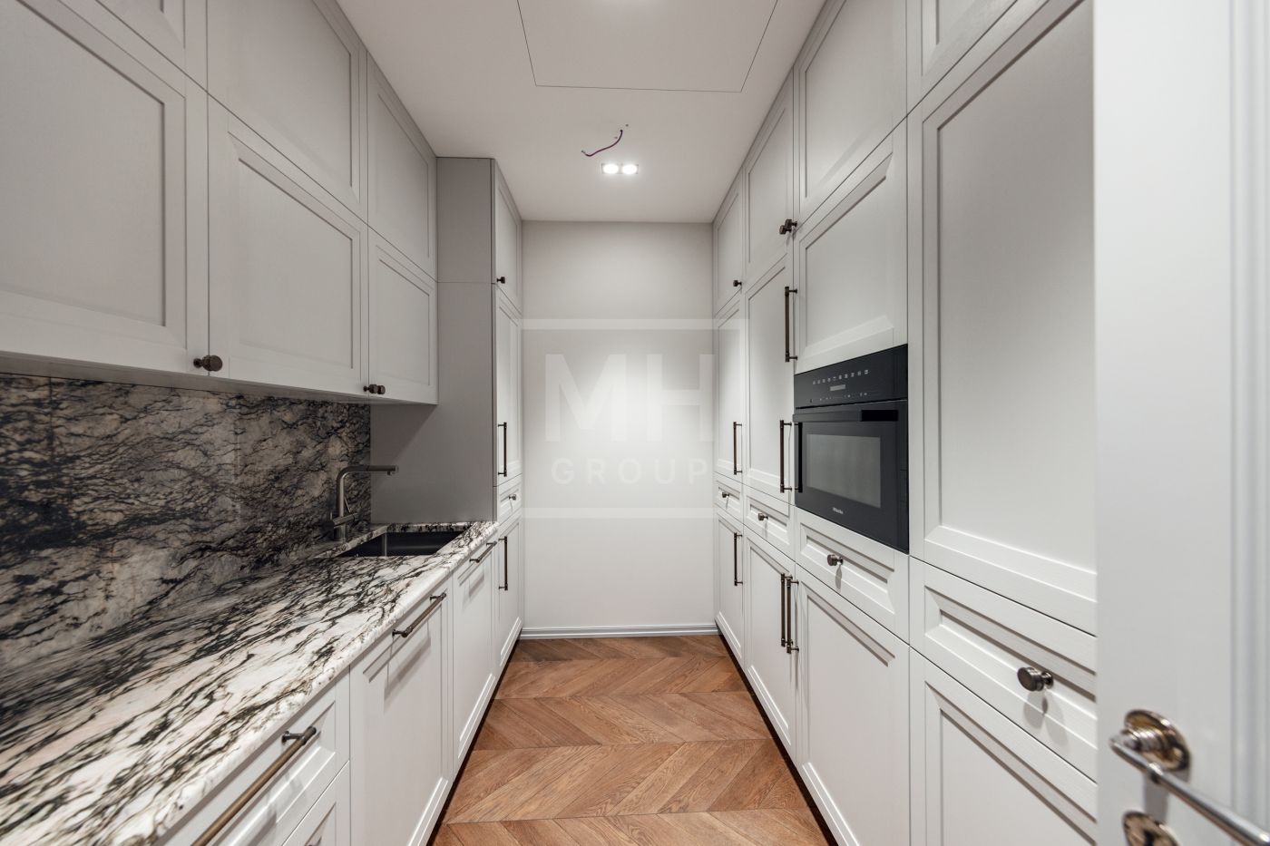 Загородный коттедж площадью 487 м² расположен на полевом участке 22 сотки,воплощает концепцию home office. Черный фасад с росписью в стиле стрит-арта создает выразительный современный образ, а большие окна наполняют интерьеры естественным светом. Внутреннее пространство выдержано в светлых тонах элементами неоклассики, где каждая деталь продумана до мелочей — премиальные обои американских производителей, мрамор, камин, авторская мебель и светильники. Особый шарм придают спортивные арт-объекты — антикварные клюшки, винтажный велосипед и футбольные мячи.Дом оснащен передовыми инженерными системами, включая канальное кондиционирование, увлажнение, приточную вентиляцию и систему «умный дом».Здесь создано идеальное пространство для комфортной работы и проведения деловых и личных встреч. Планировка включает просторную кухню-столовую с бильярдной зоной и винными шкафами, зал ожидания, 2 переговорные,5 кабинетов, гардеробную, кладовые и зону с ретро-автомобилем Bugatti. На каждом этаже расположены стойки ресепшен.
