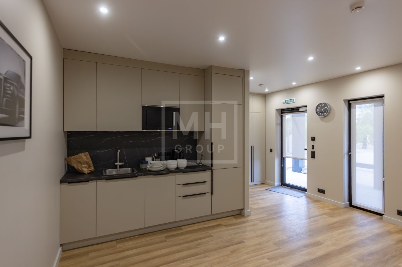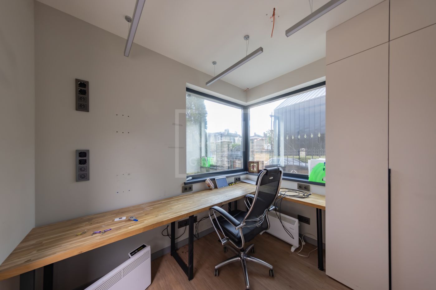 Этаж 2: холл, кабинет, кабинет с санузлом и балконом, кабинет с кладовой и санузлом, переговорная с кладовой и санузлом, мини-кухня, санузел.