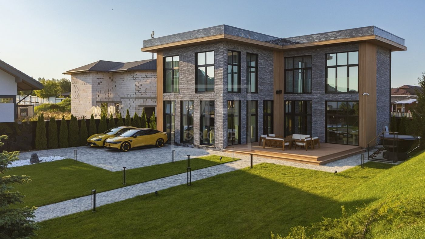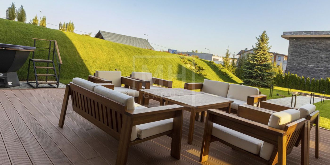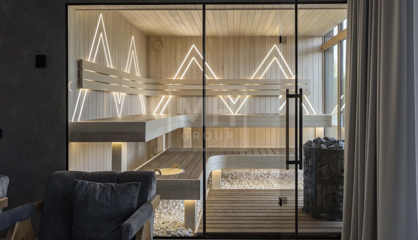 Сердцем дома стала просторная гостиная-столовая, объединённая с кухней с удобным островом и встроенной техникой Kuppersbusch. Журнальный столик с биокамином от дизайнера Анастасии Верощако завершает уютный образ. Также планировка включает 3 спальни, вместительные гардеробные и спа-зону с парной с печью Harvia и комнатой отдыха. Терраса с банным чаном и патио станут любимыми местами для вечерних посиделок на свежем воздухе. На благоустроенном участке вдохните аромат хвойных деревьев, прогуливаясь по мощеным дорожкам и любуясь аккуратным газоном.