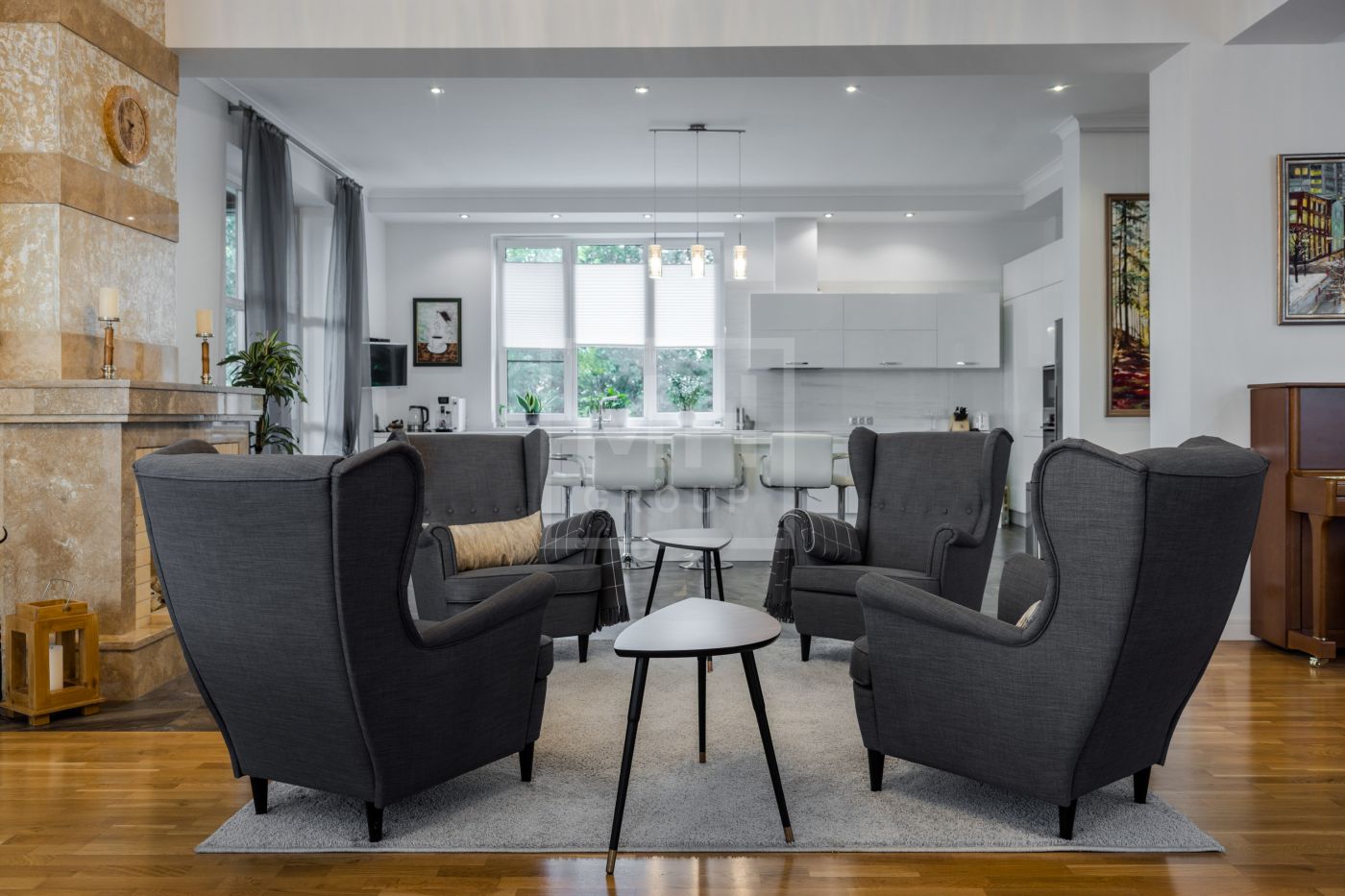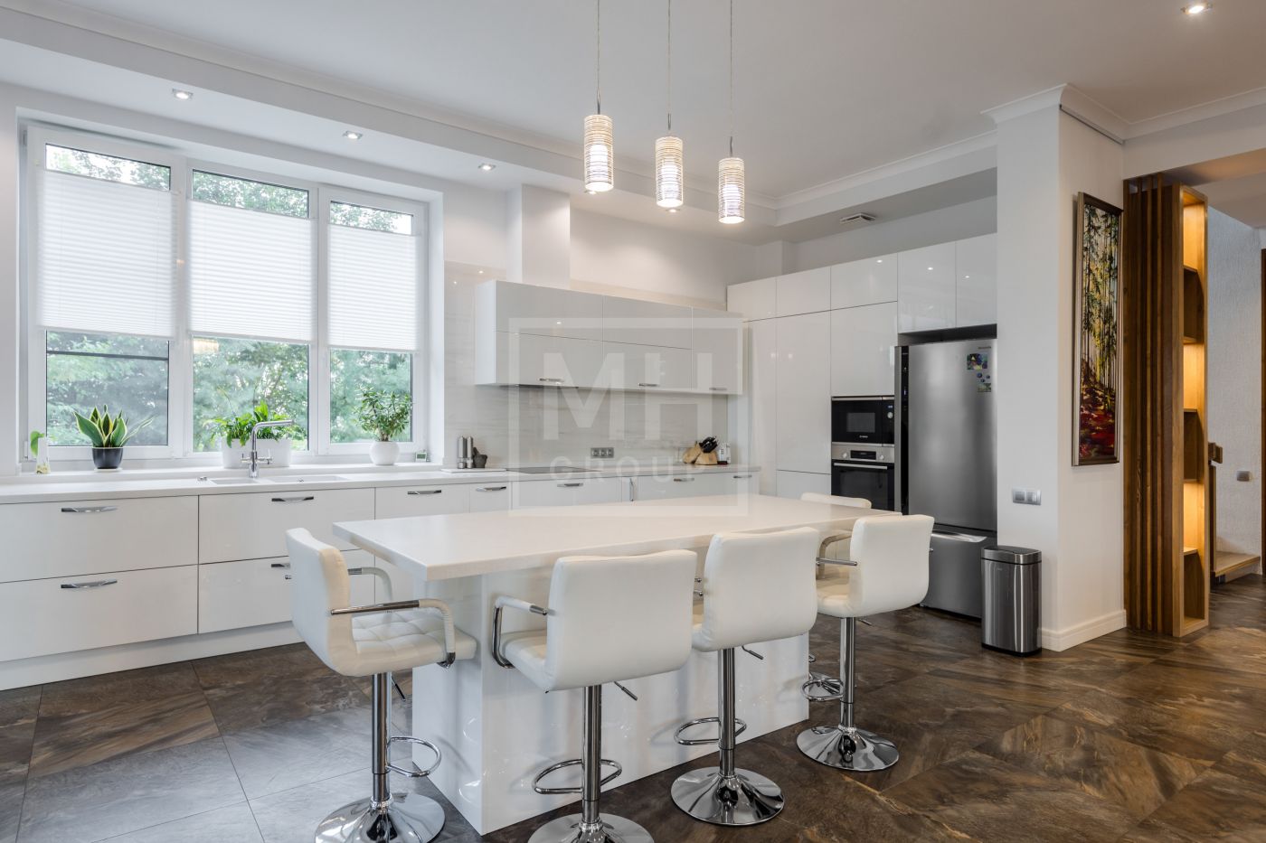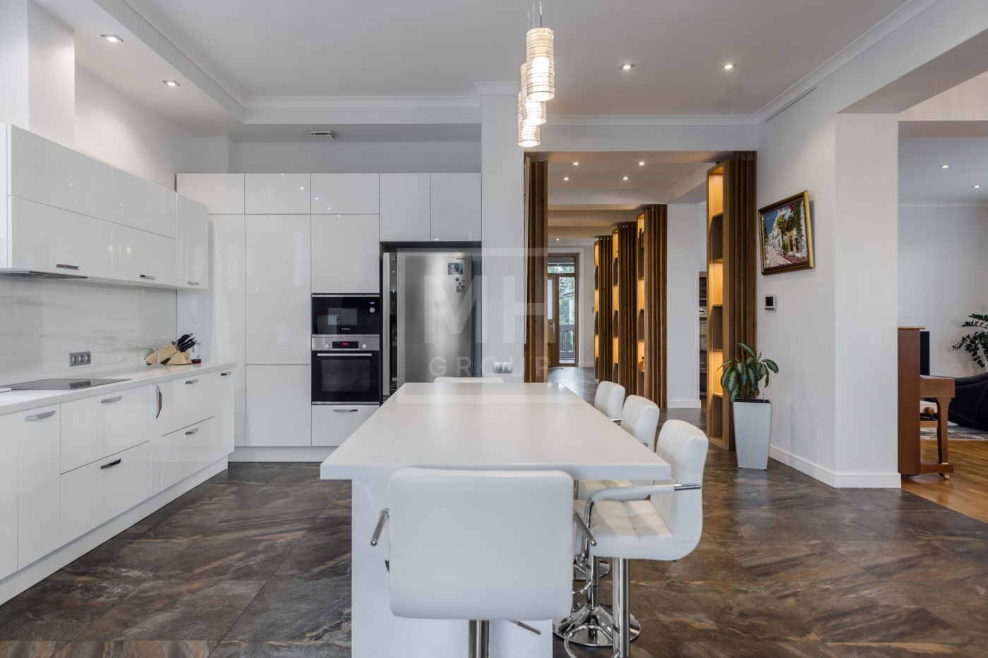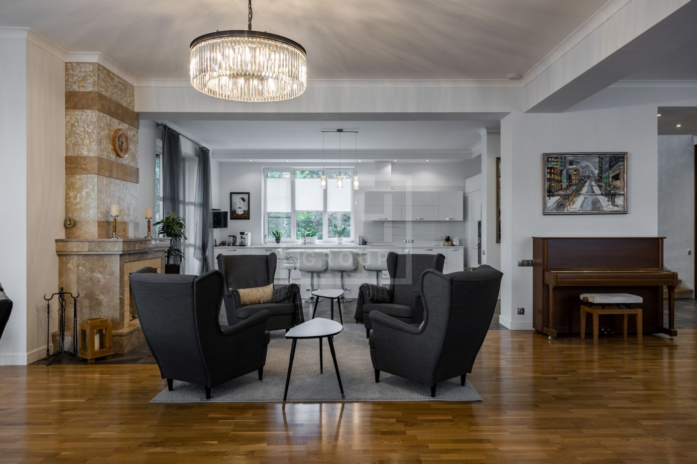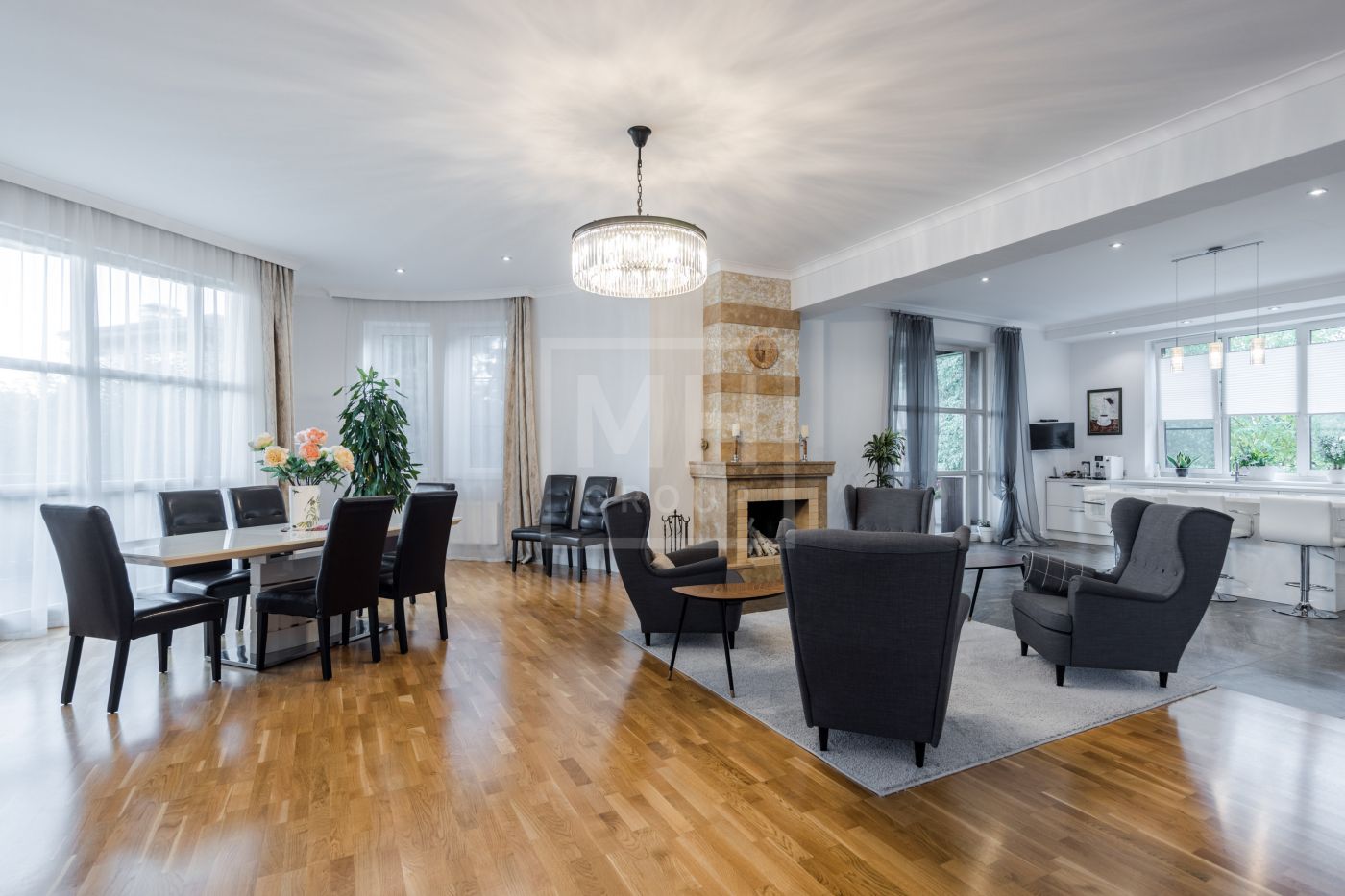 Этаж 1: кухня, гостиная с камином, столовая, объединенные открытой планировкой, гардеробная, с/у