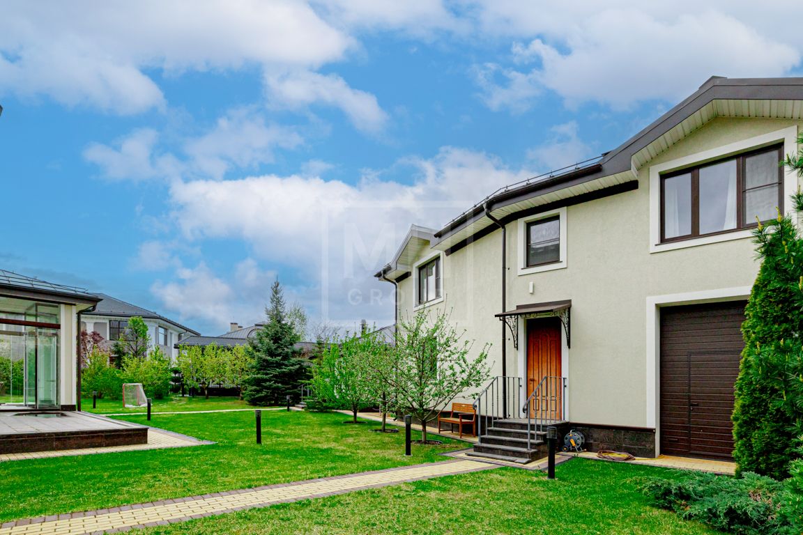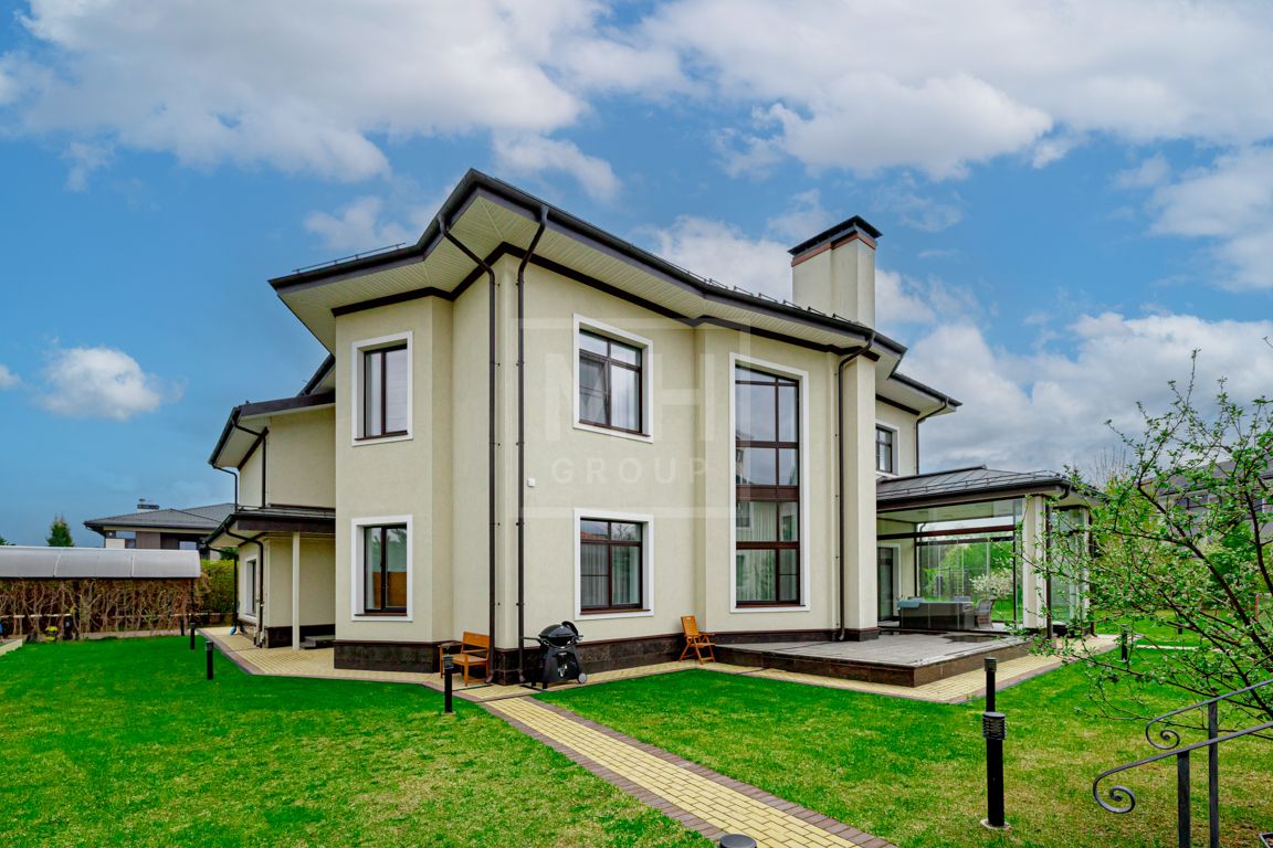 Уютный двухэтажный дом "под ключ" на просторном участке в КП "Миллениум парк".На участке выполнен ландшафтный дизайн. Есть двухэтажный гостевой дом (136 кв.м) с комнатой для персонала, теплая беседка с барбекю, кухней и зоной отдыха.