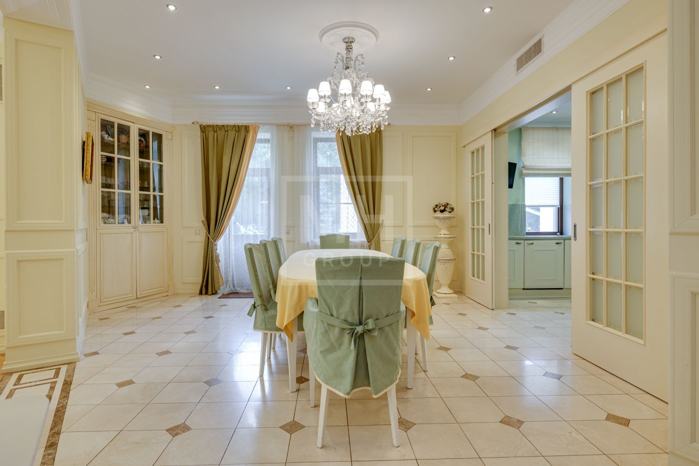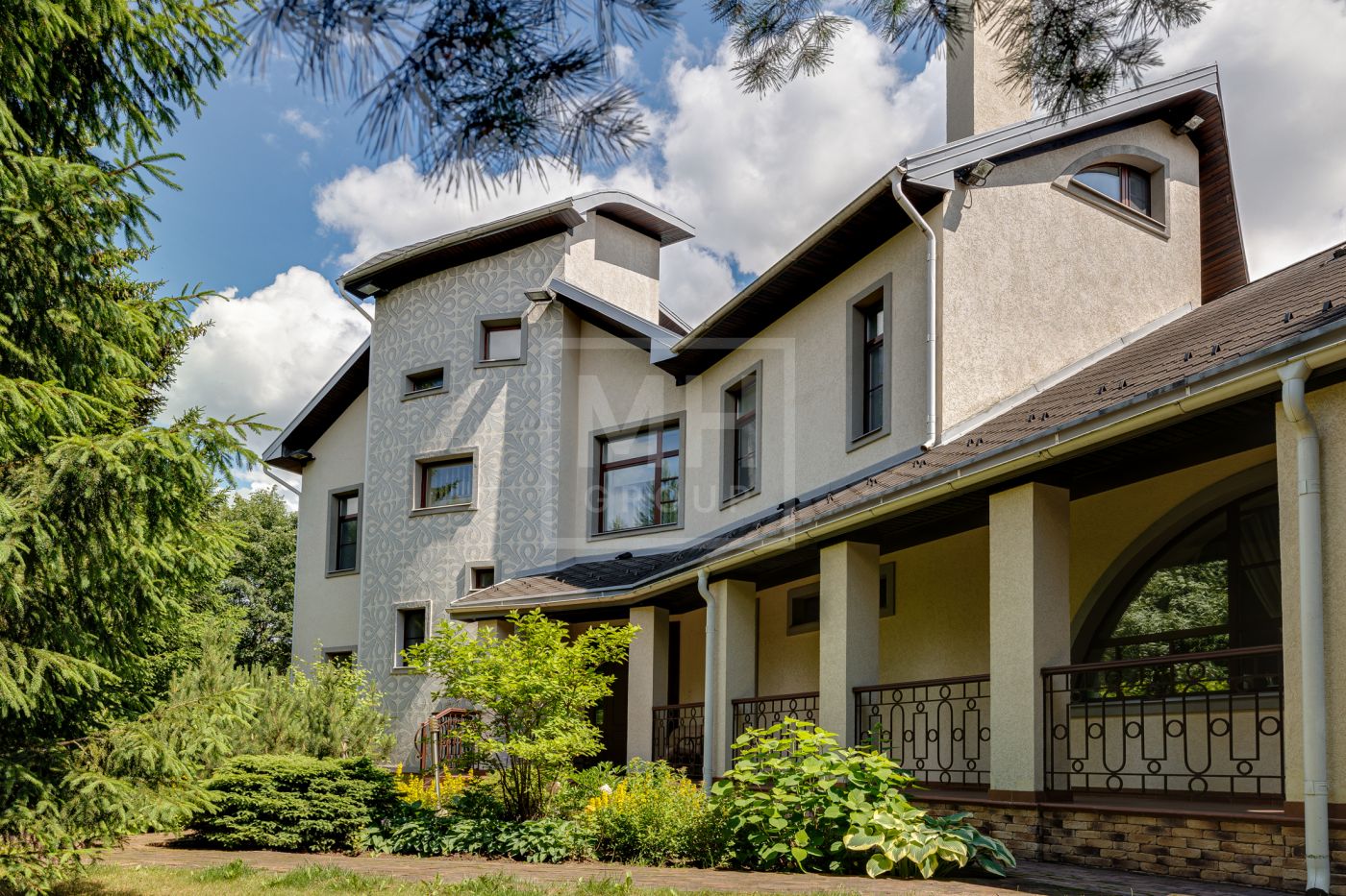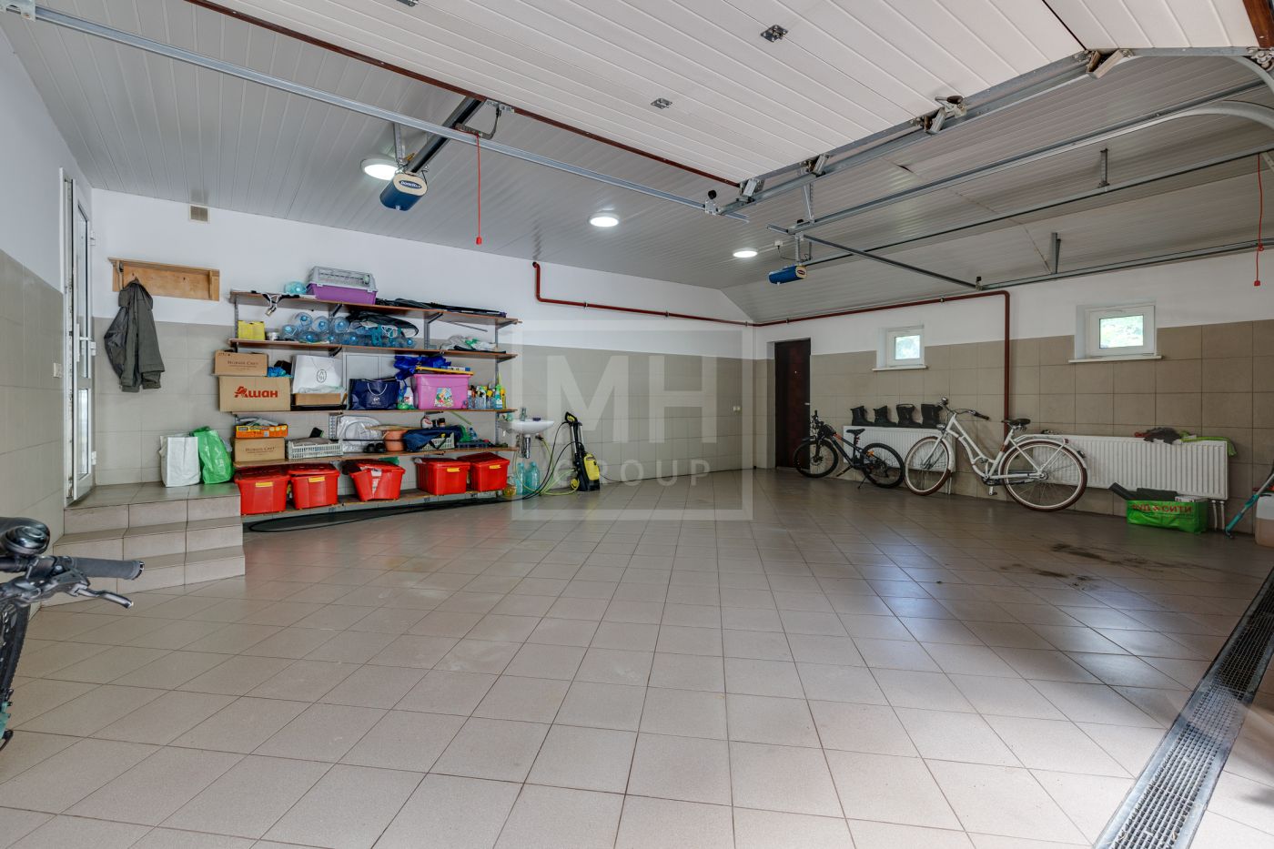 Этаж 1: прихожая, гардеробная, гостевой с.у с душевой, кухня-столовая с выходом на летнюю террасу, гостиная с камином, комната/кабинет, постирочная, гараж на 2 м.м., котельная с отдельным входом, блок для персонала.