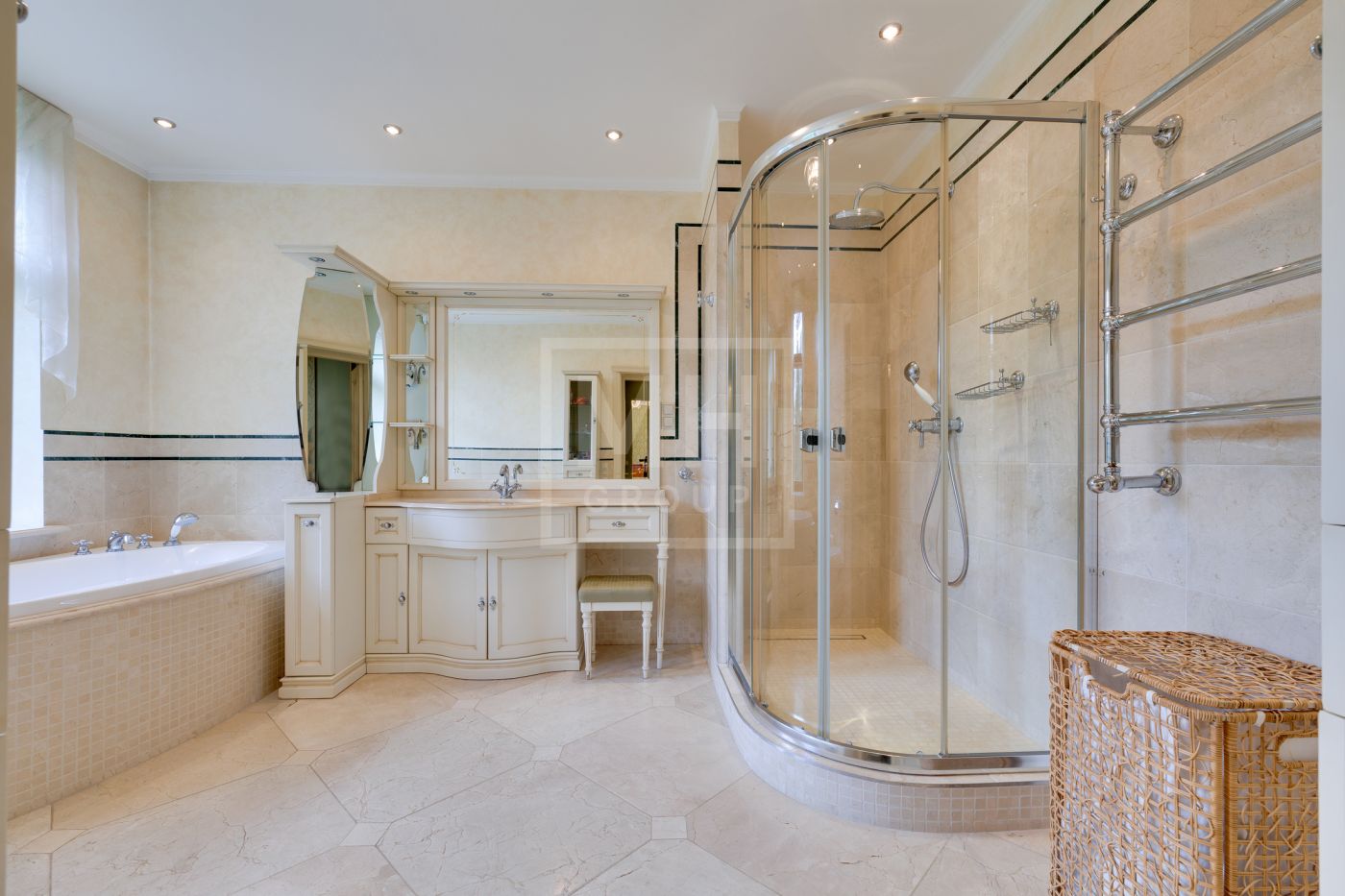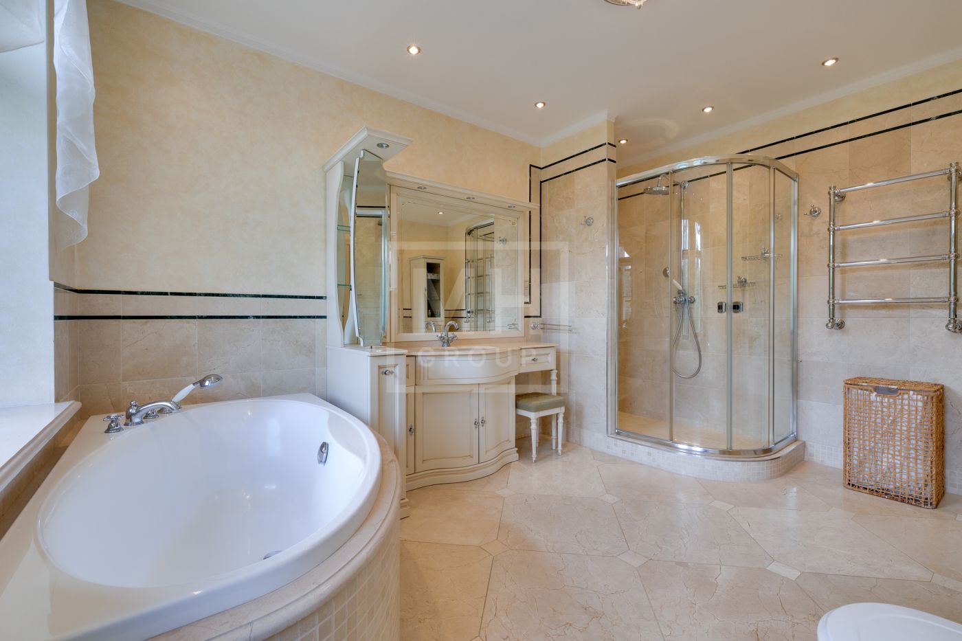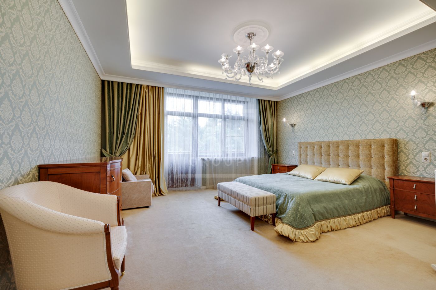 Этаж 2: мастер-блок: спальня с выходом на балкон, гардеробная, ванная комната; спальня с ванной комнатой и гардеробной, детская с ванной и гардеробной.