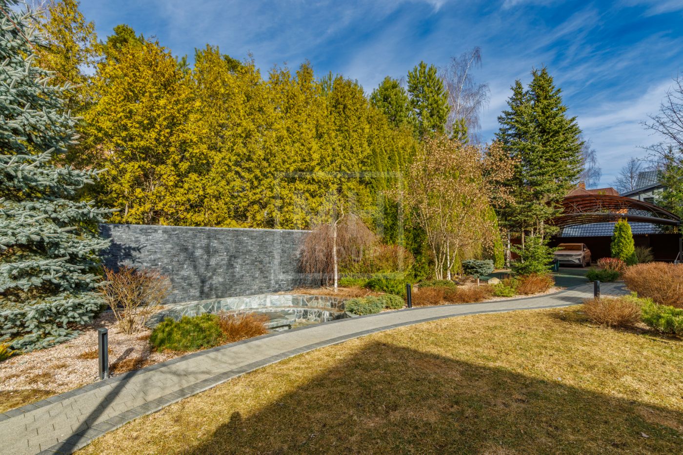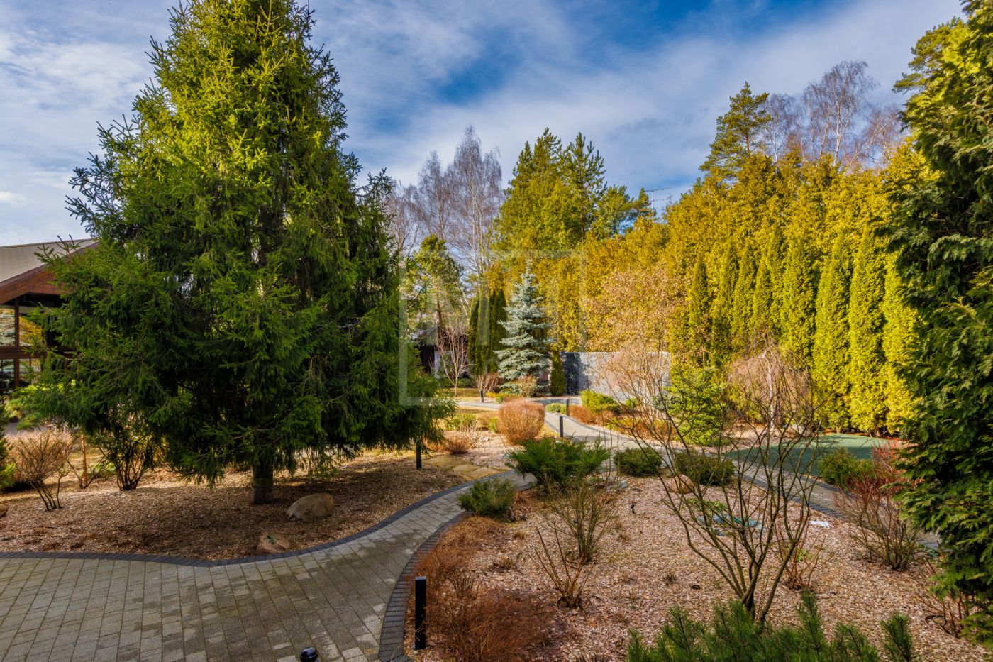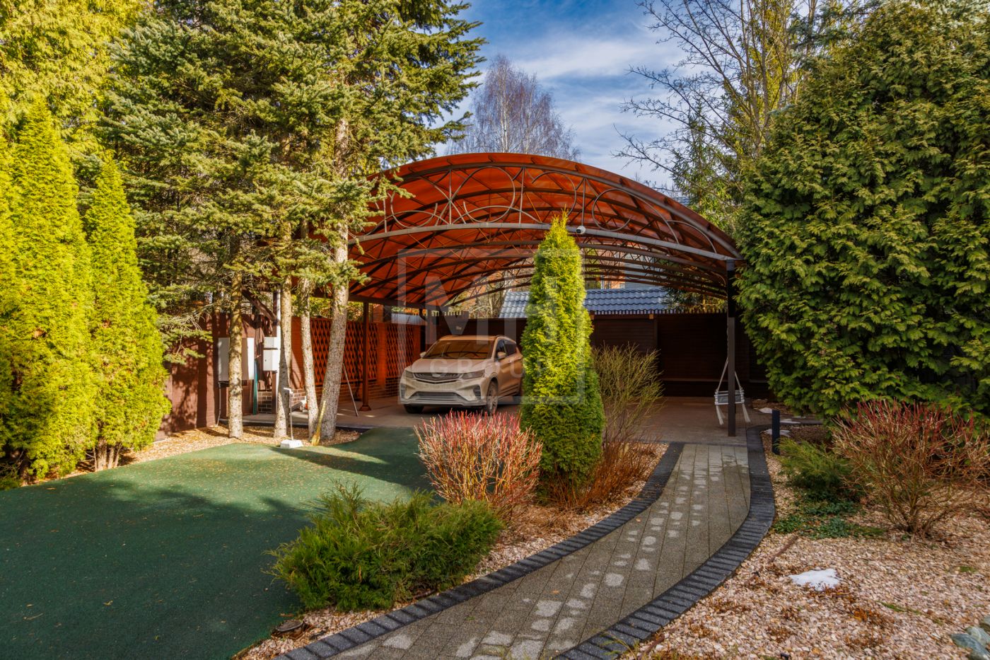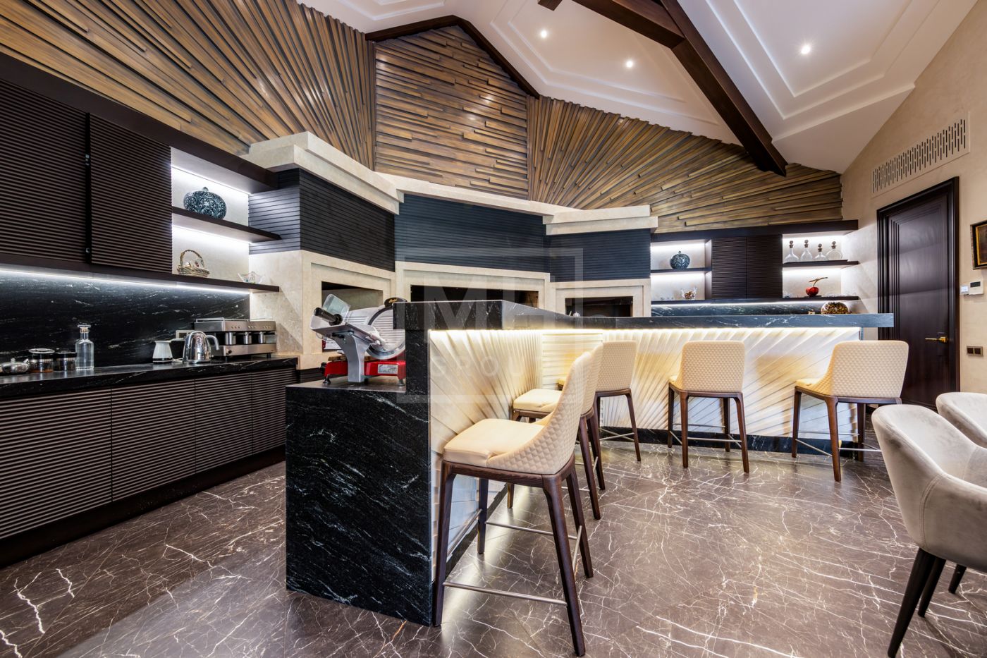 отдыха с камином, массажными креслами и кинозалом. Из основного дома можно перейти в дом-шале, где расположены гостиная, кабинет, большая профессиональная кухня-барбекю с залом для гостей. На участке также