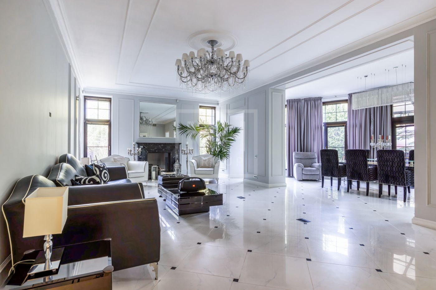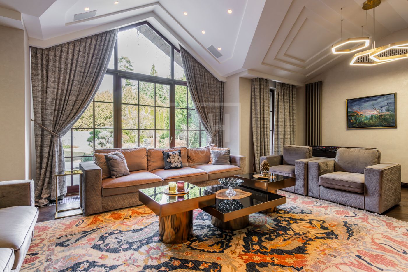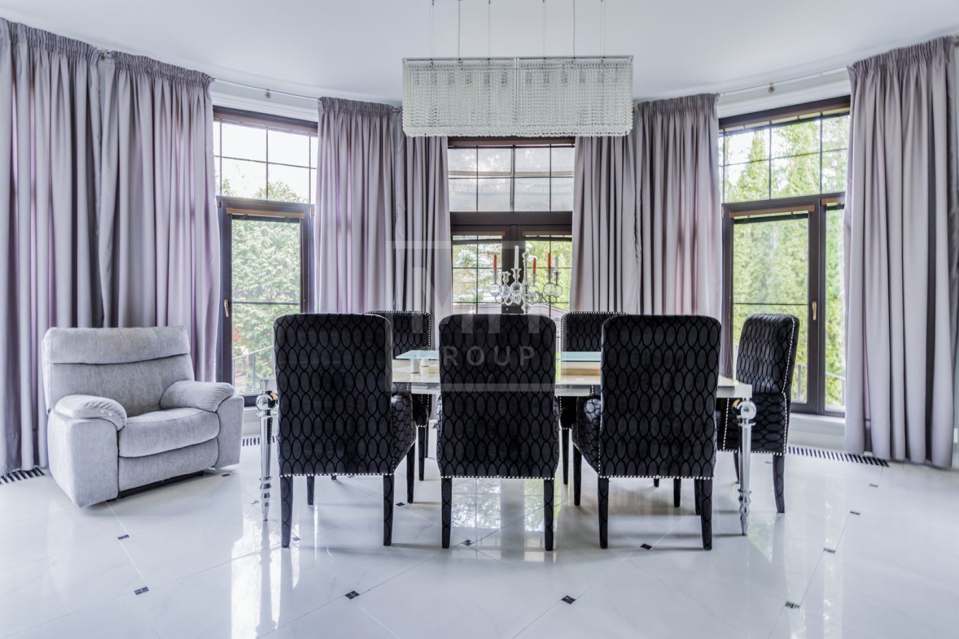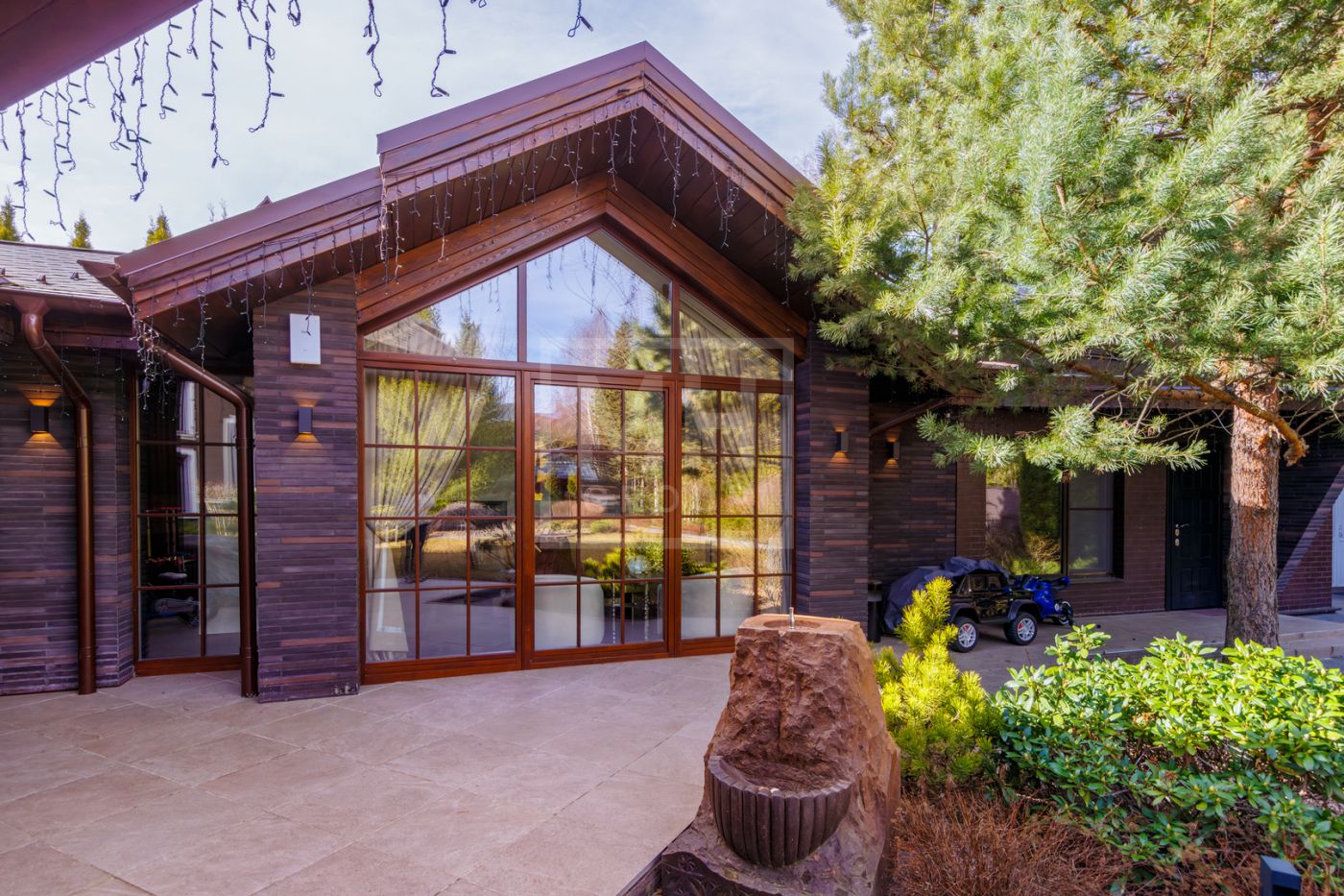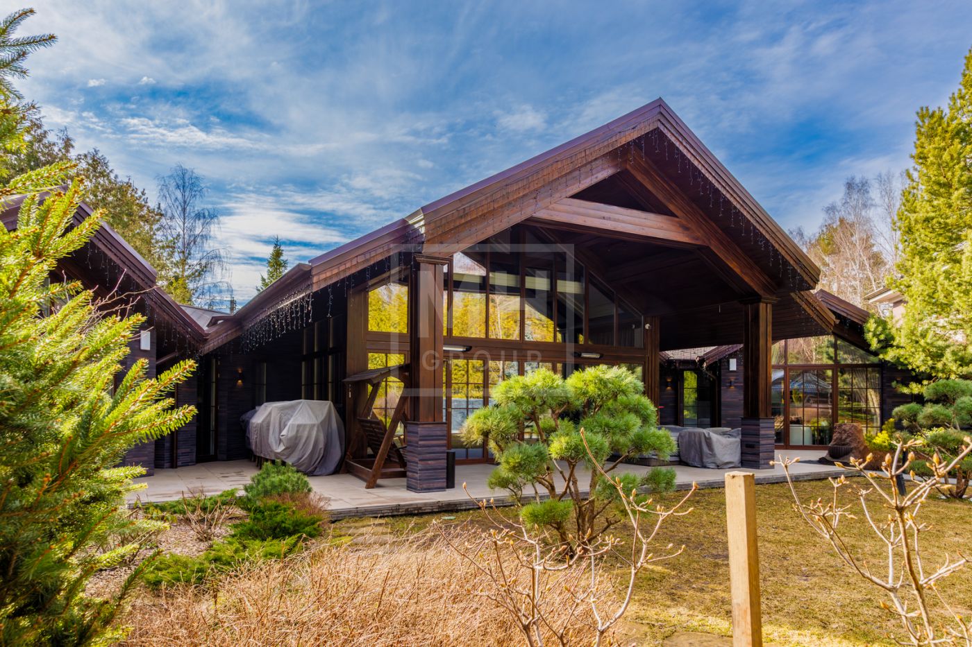 и просторный дом обладает большими витражными окнами, что создает атмосферу тепла и уюта. Дом с премиальной отделкой «под ключ» и полностью меблирован.