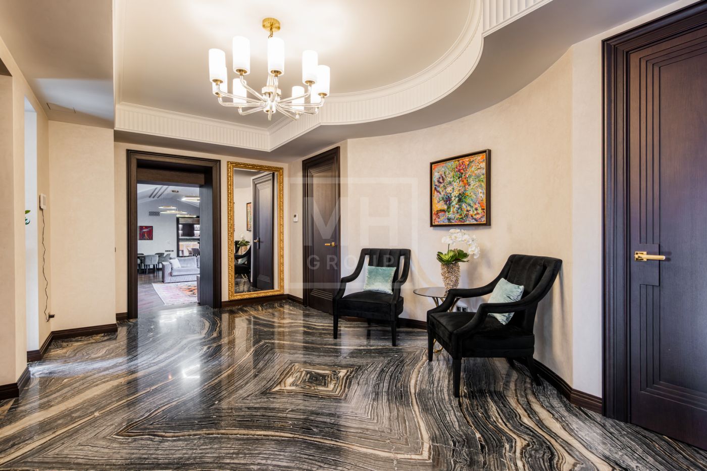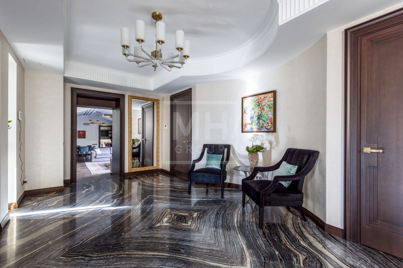 Этаж 2: спальня с с/у и гардеробной, зоной отдыха и бельевой, спальня с балконом, с/у и гардеробной, мастер зона: (спальня с с/у, гардеробной, будуаром и кабинетом).