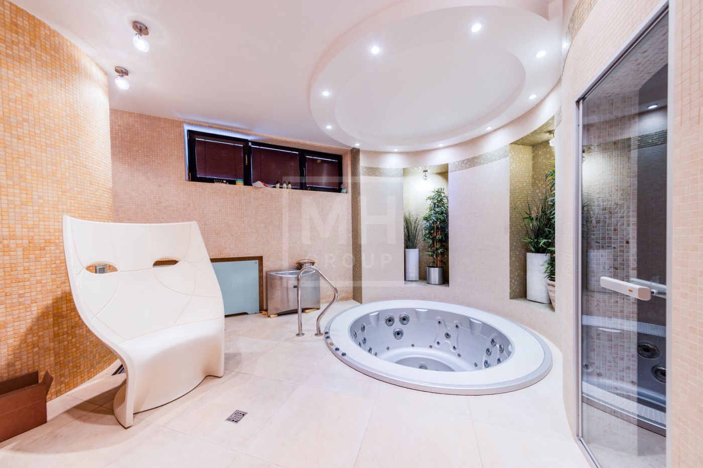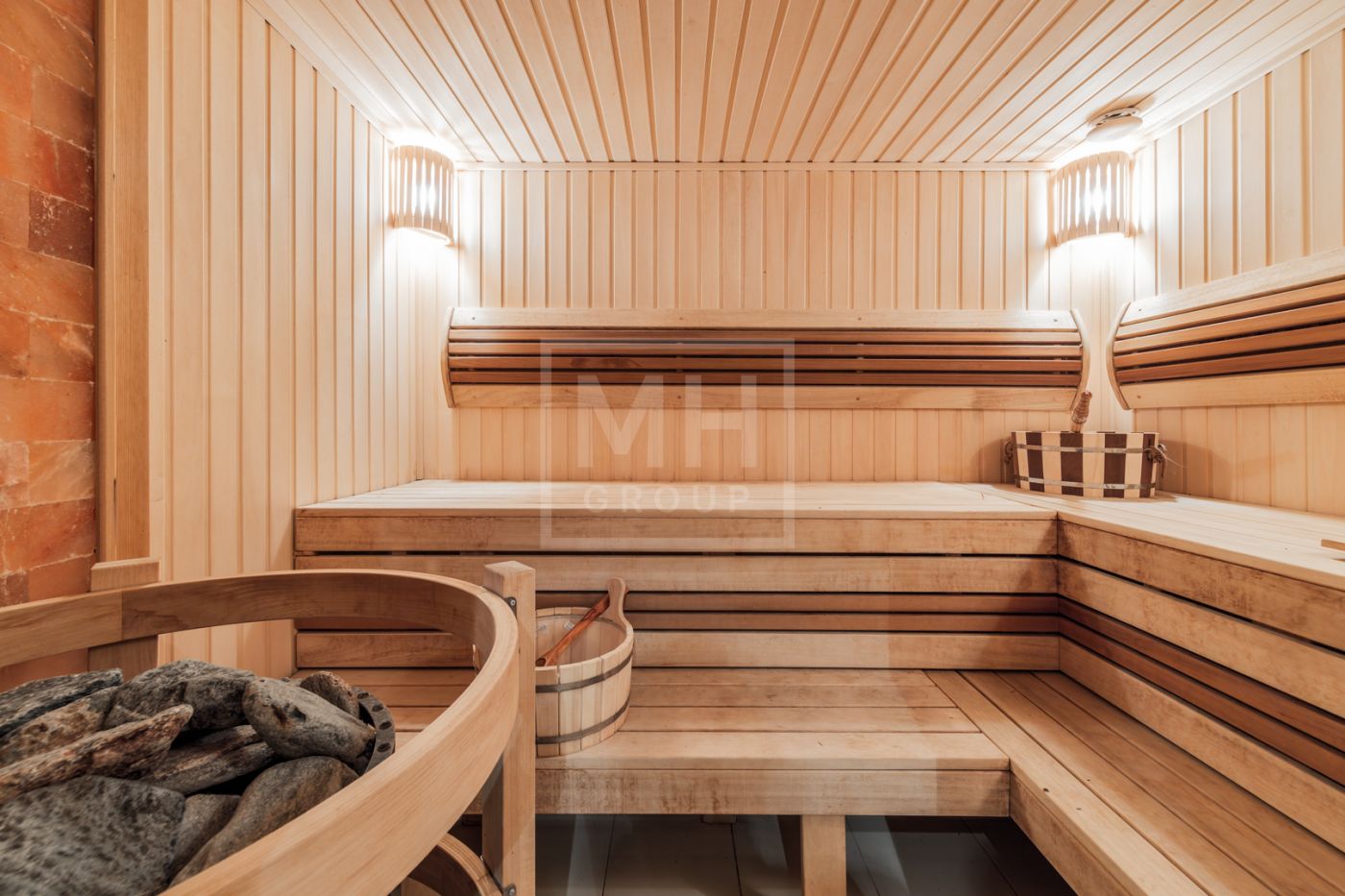 Уникальное жилой комплекс состоит из трех строений: основного дома, дома- шале и дома для персонала. Основной дом (650 кв.м) предлагает на первом этаже великолепную спа-зону с сауной и хамамом, а также просторную зону