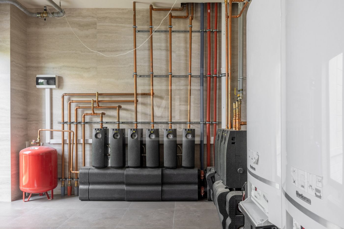 Этаж 1: холл, гардеробная, гостиная, кухня, столовая, спальня с гардеробной и санузлом, тренажерный зал, санузел, котельная, постирочная, гараж