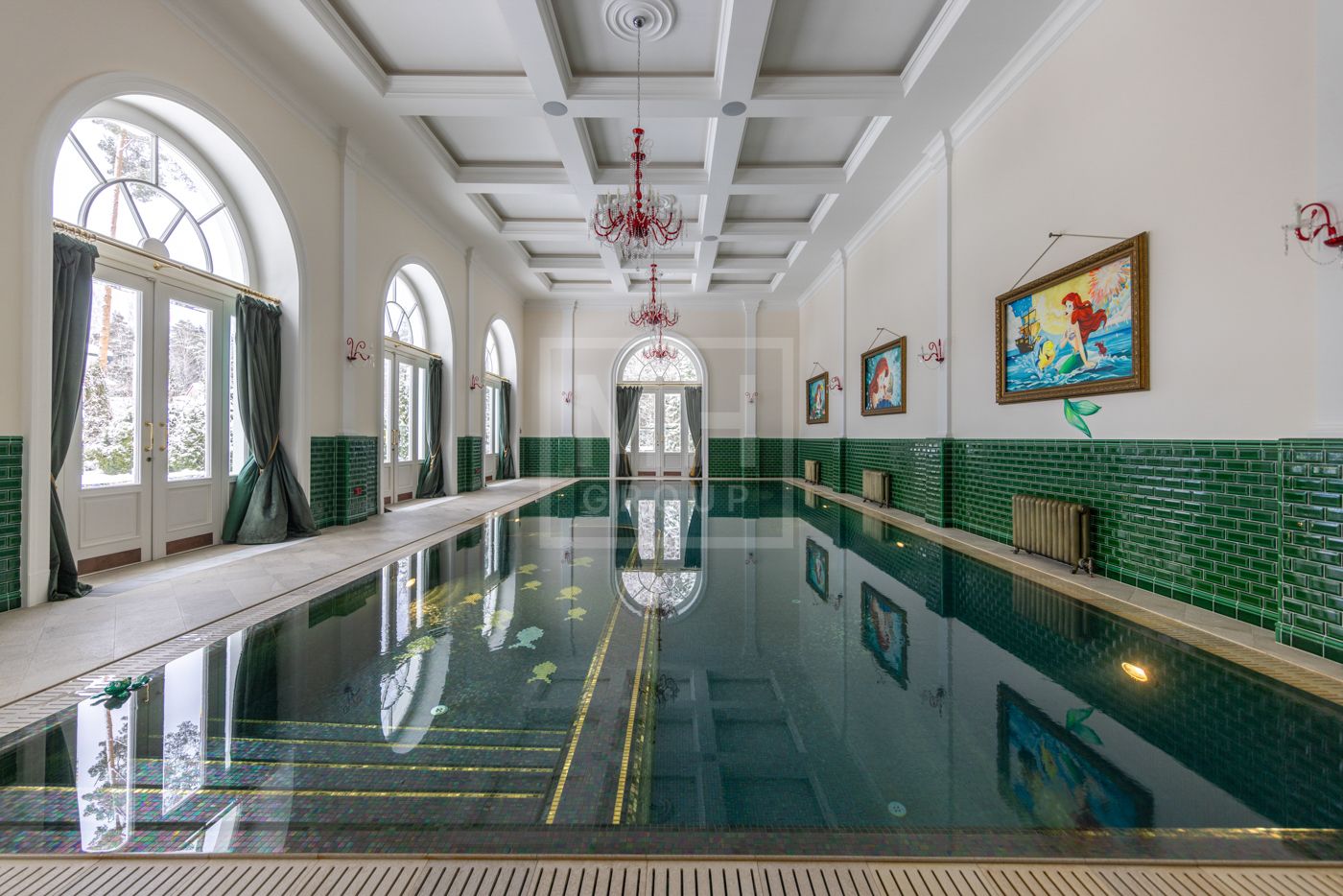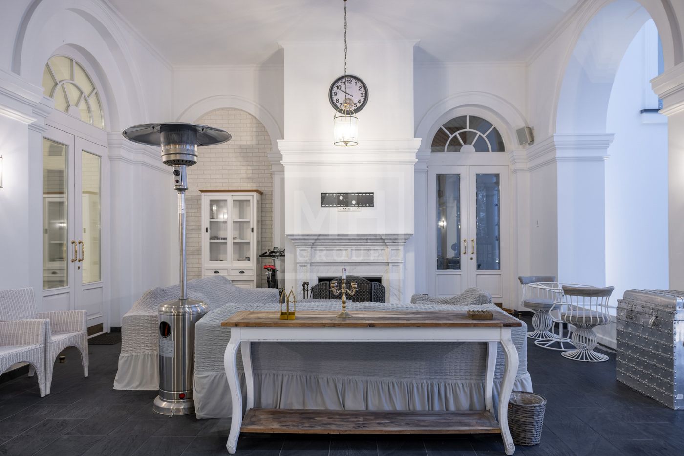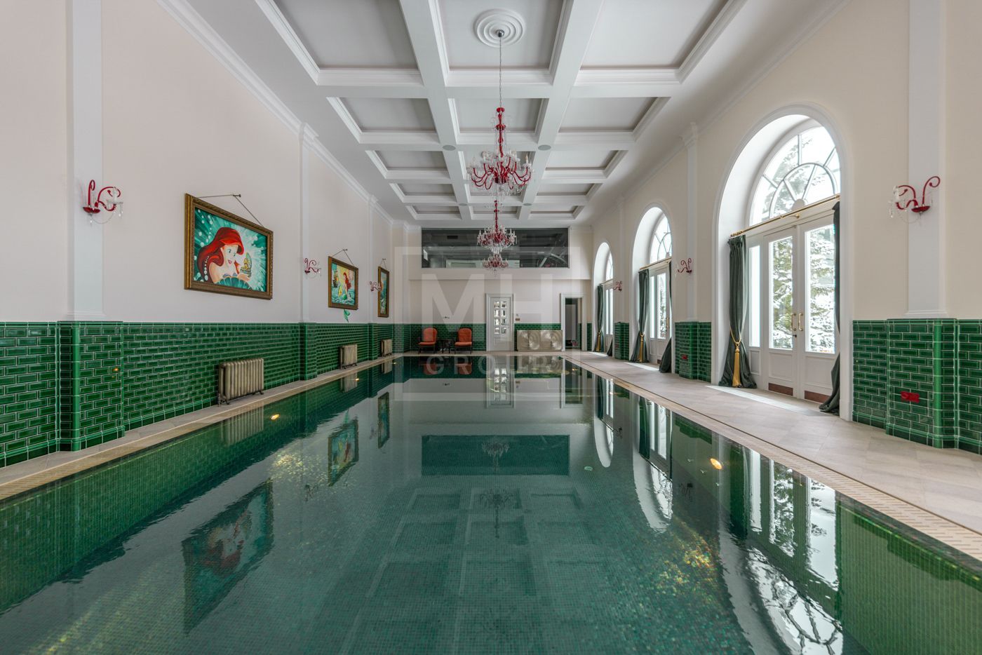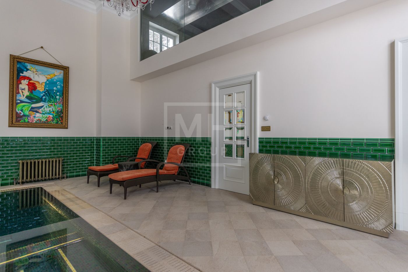 Продуманная планировка включает в себя 7 спален, кабинет, множество мес хранения, а также косметологический кабинет и студию звукозаписи. Для удобства перемещения в доме предусмотрен лифт. Просторная SPA-з с бассейном, сауной, хаммамом, массажным кабинетом и купелью позволяет расслабиться и насладиться уходом за собой. Особое внимание уделено просторной террасе с зоной барбекю и камином, где можно наслаждаться