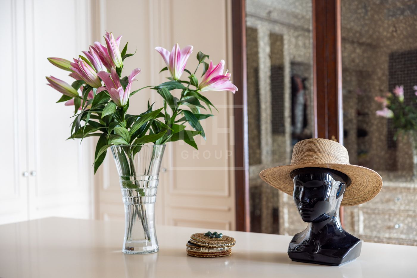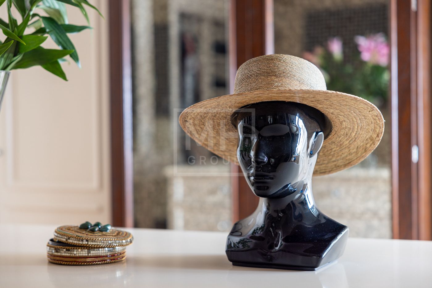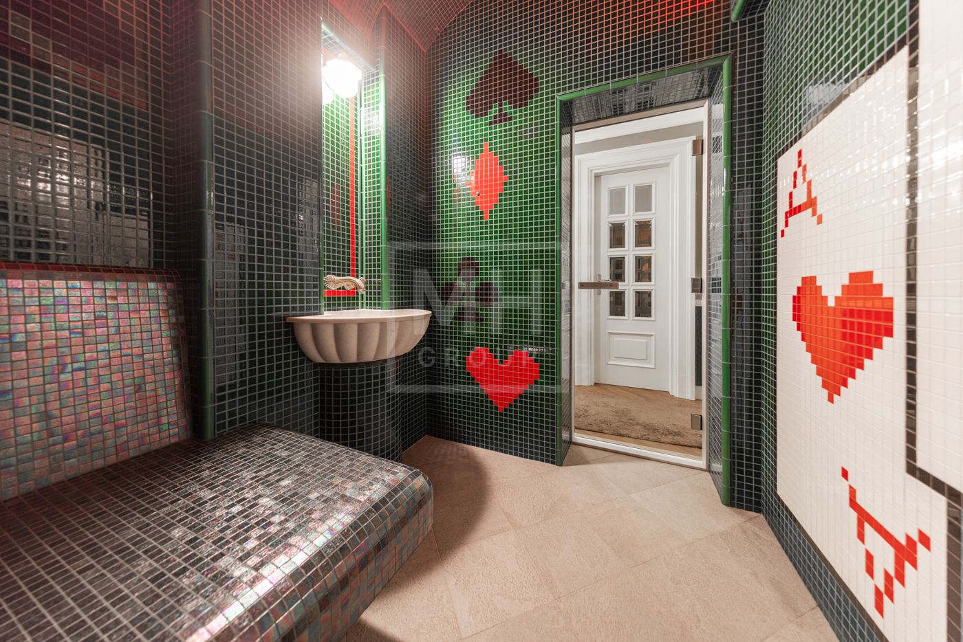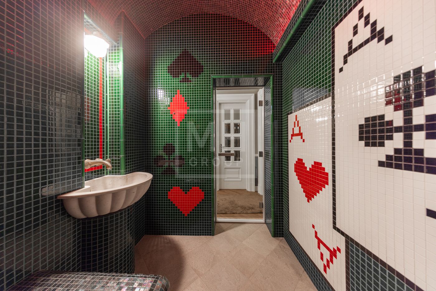 Продуманная планировка включает в себя 7 спален, кабинет, множество мес хранения, а также косметологический кабинет и студию звукозаписи. Для удобства перемещения в доме предусмотрен лифт. Просторная SPA-з с бассейном, сауной, хаммамом, массажным кабинетом и купелью позволяет расслабиться и насладиться уходом за собой. Особое внимание уделено просторной террасе с зоной барбекю и камином, где можно наслаждаться