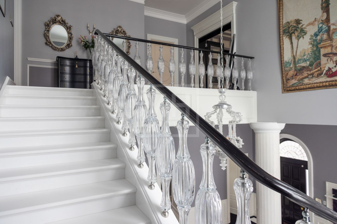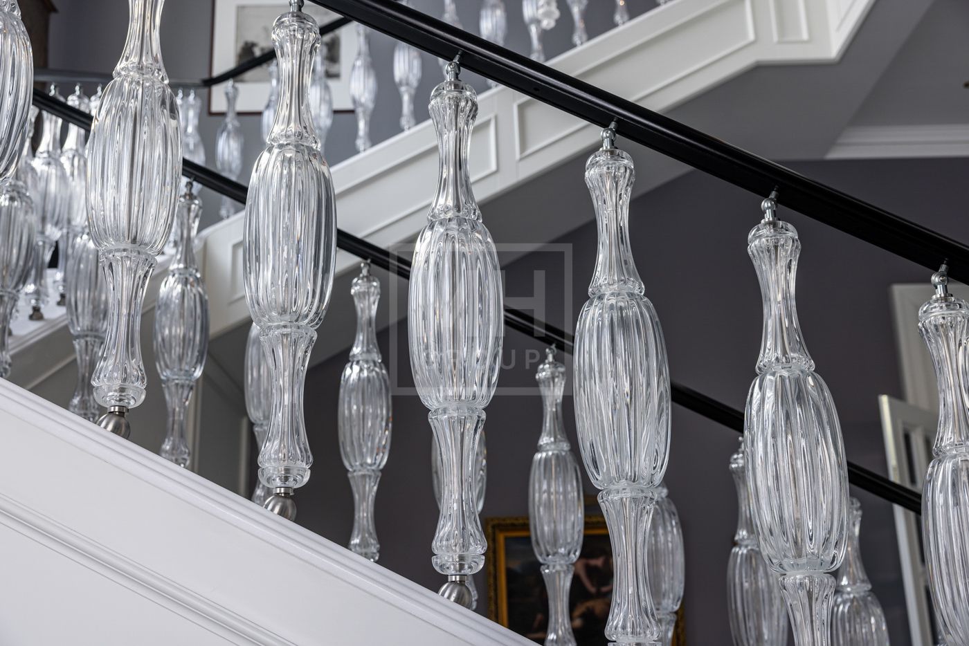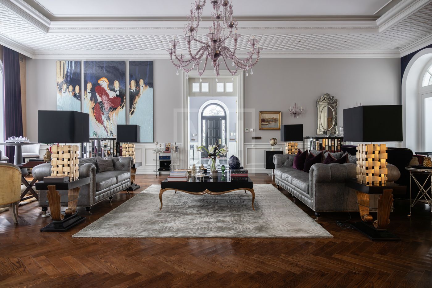 В холле вас встретит роскошная парадная лестница с балясинами из хрусталя, выполненными эксклюзивно для этого дома. Затем мы увидим просторную гостиную со вторым светом и зоной камина, профессиональную кухню с высококлассным оборудованием премиум-класса.
