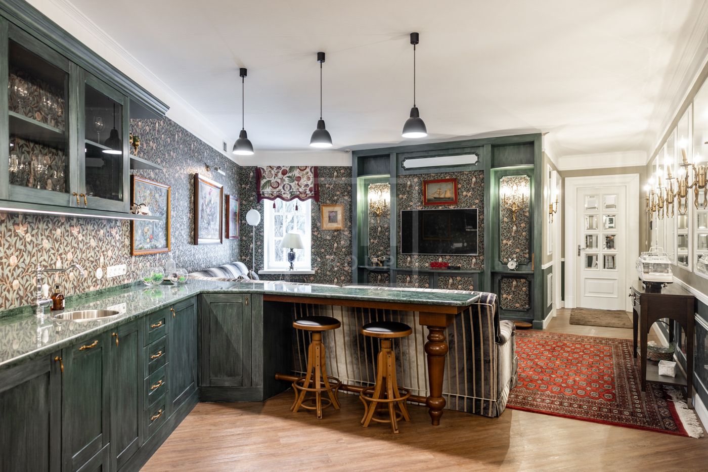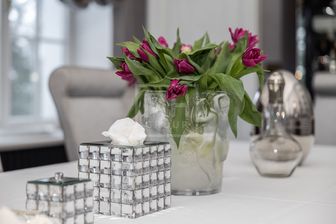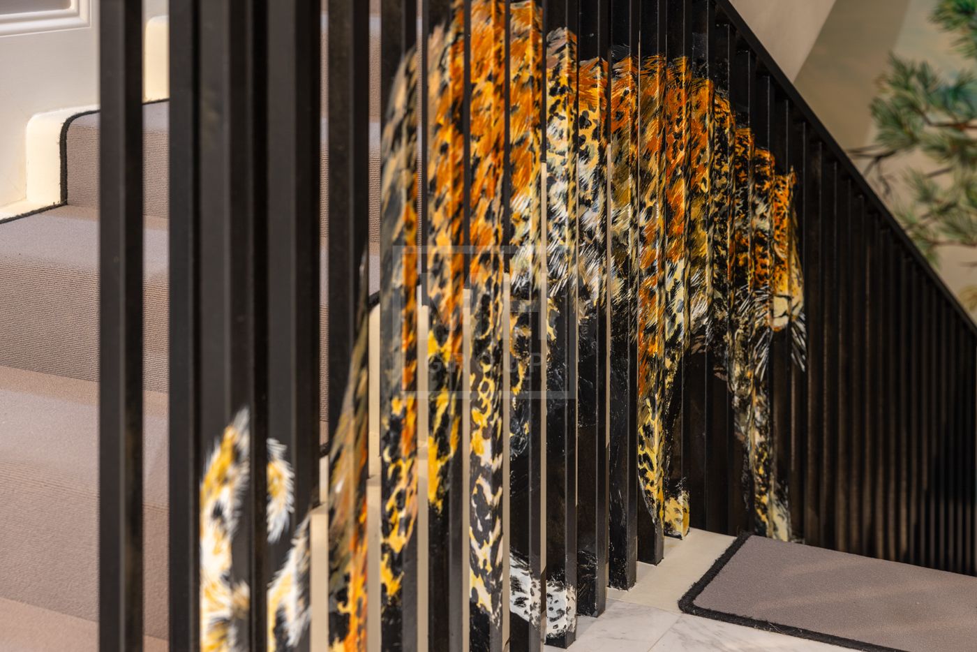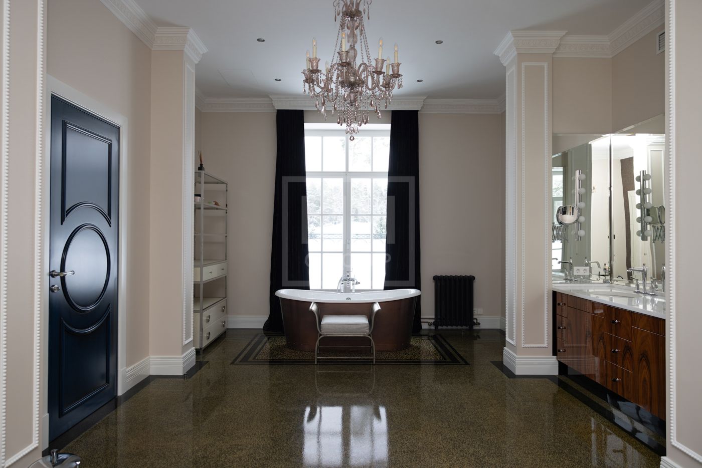 В холле вас встретит роскошная парадная лестница с балясинами из хрусталя, выполненными эксклюзивно для этого дома. Затем мы увидим просторную гостиную со вторым светом и зоной камина, профессиональную кухню с высококлассным оборудованием премиум-класса.