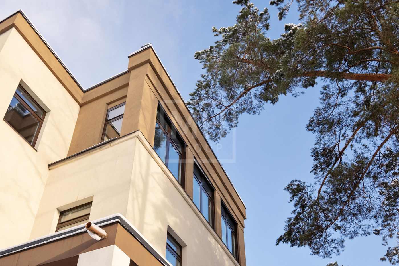 Материалы. Дом построен из многощелевого поризованного кирпича Тиги-кнауф (в пять раз теплее, чем обычный кирпич). Окна алюминиевые, Шуко. Окна первого этажа оборудованы скрытыми автоматическими рольрешетками. Перекрытия монолитные, без несущих перегородок, что позволяет свободную перепланировку в процессе эксплуатации под изменяющиеся требования владельца. Фундамент монолитный ж/б.