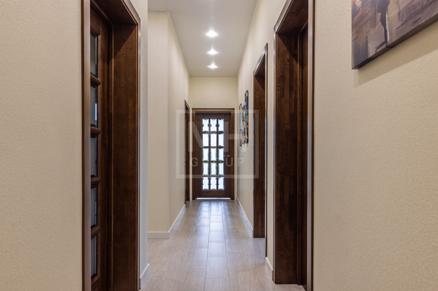 столовая с современной бытовой техникой, 4 спальни, 2 санузла, котельная, прихожая. Дом полностью готов к проживанию. Продается с мебелью. На участке 10 соток правильной формы выполнено благоустройство территории, растут хвойные деревья. Есть крытый гараж с автоматическими воротами. Дом расположен на тихой улице, застроенной новыми домами.