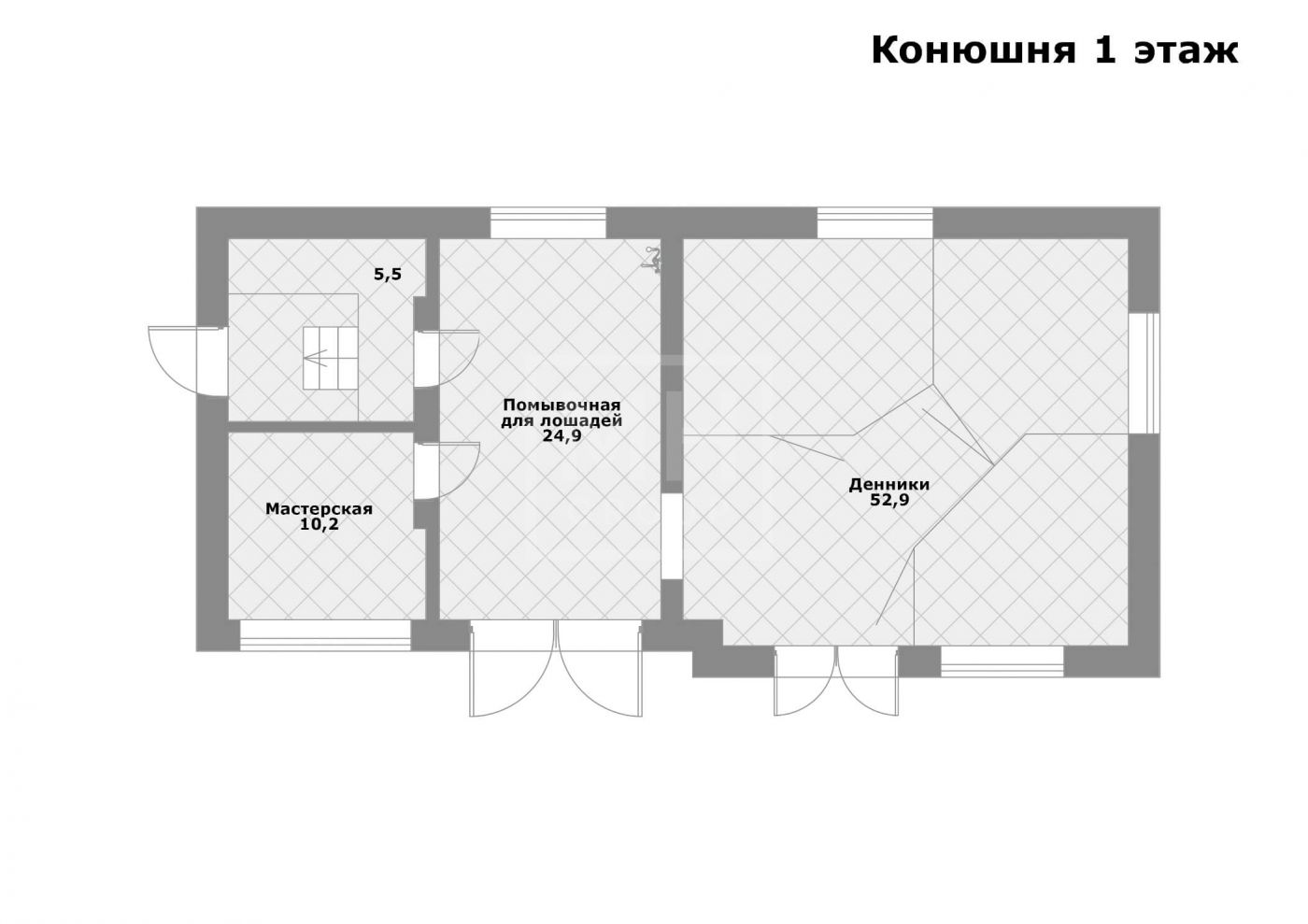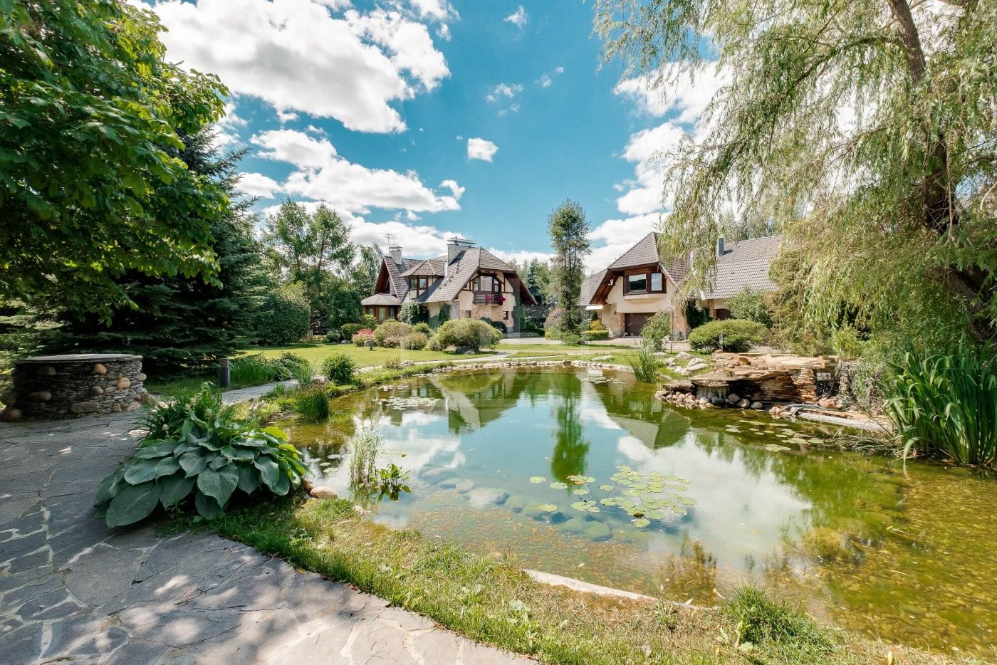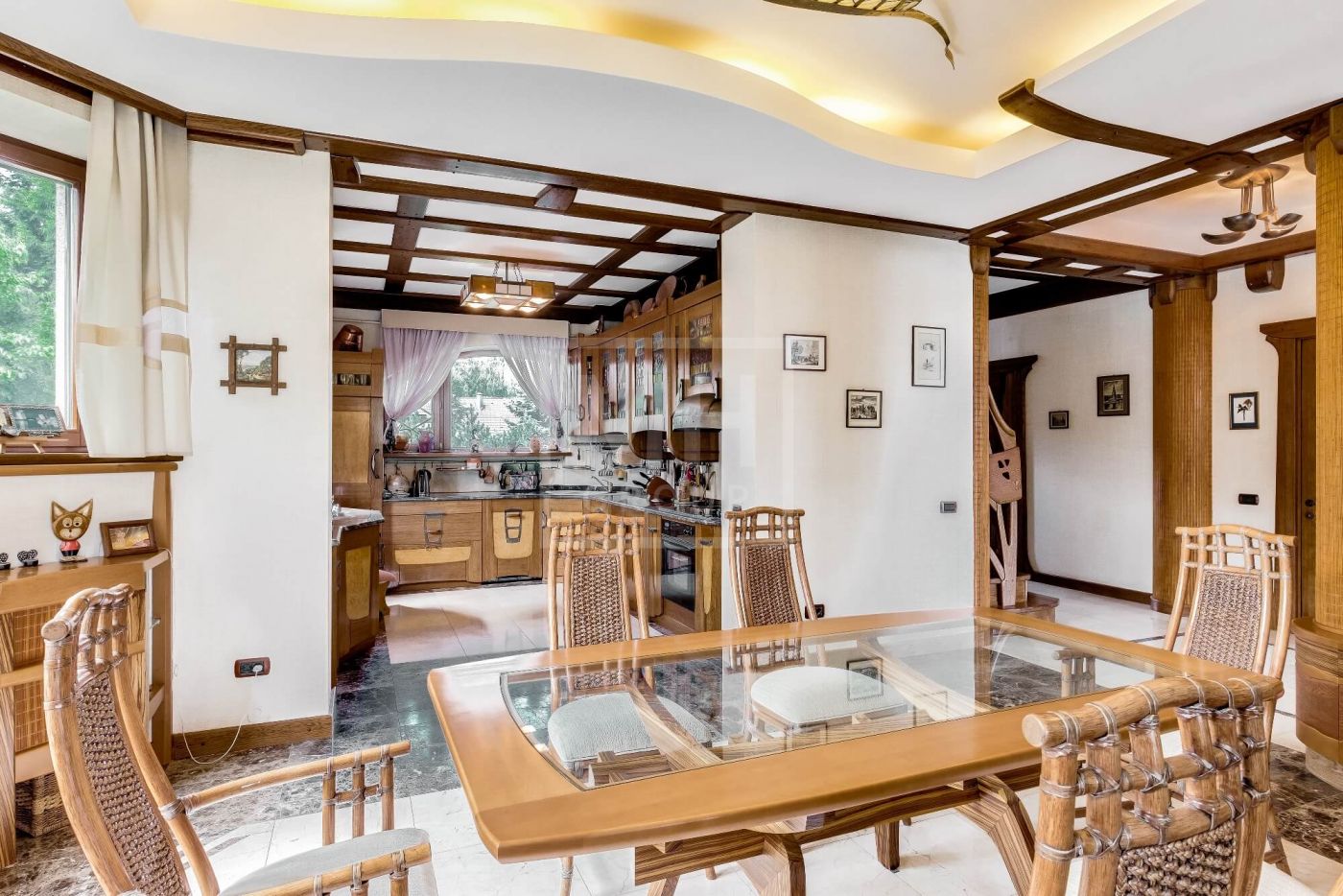 Усадебный комплекс состоит из 7-ми строений: главный дом (448 кв.м) соединен подземным переходом с бассейном (369 кв.м), гостевой дом (531 кв.м), банный комплекс (146 кв.м), дом персонала на 2 этаже и гараж (246 кв.м), будка охраны на въезде, конюшня (114 кв.м), хозяйственная постройка с гаражом (106 кв.м).