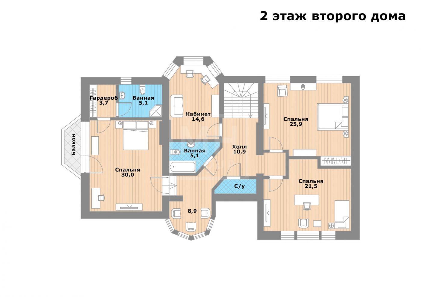 хозяйская спальня 31 кв.м с красивым видом, ванной комнатой 22 кв.м и гардеробной;