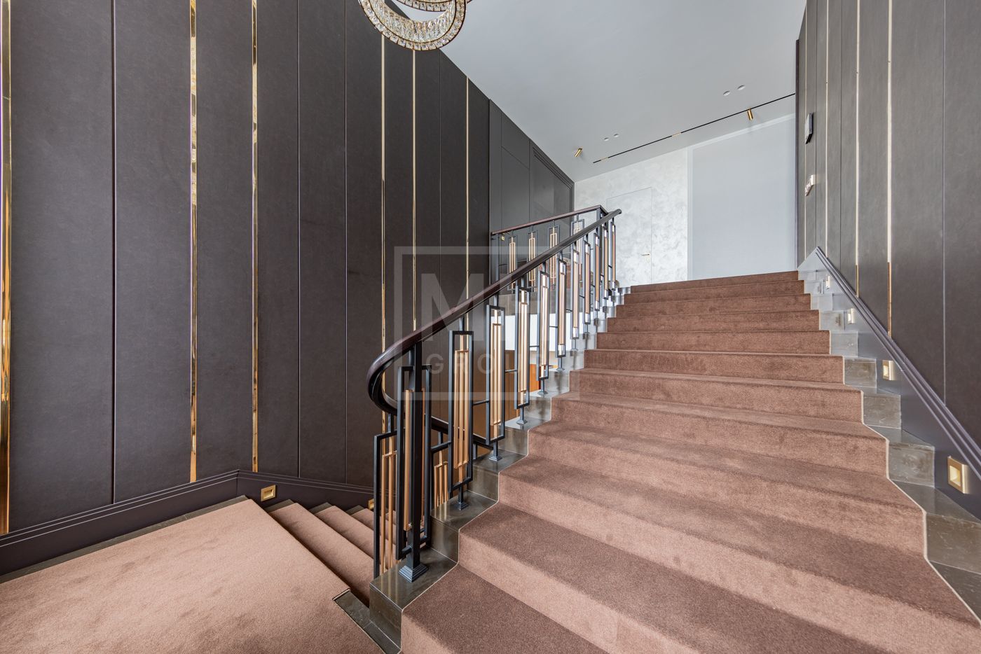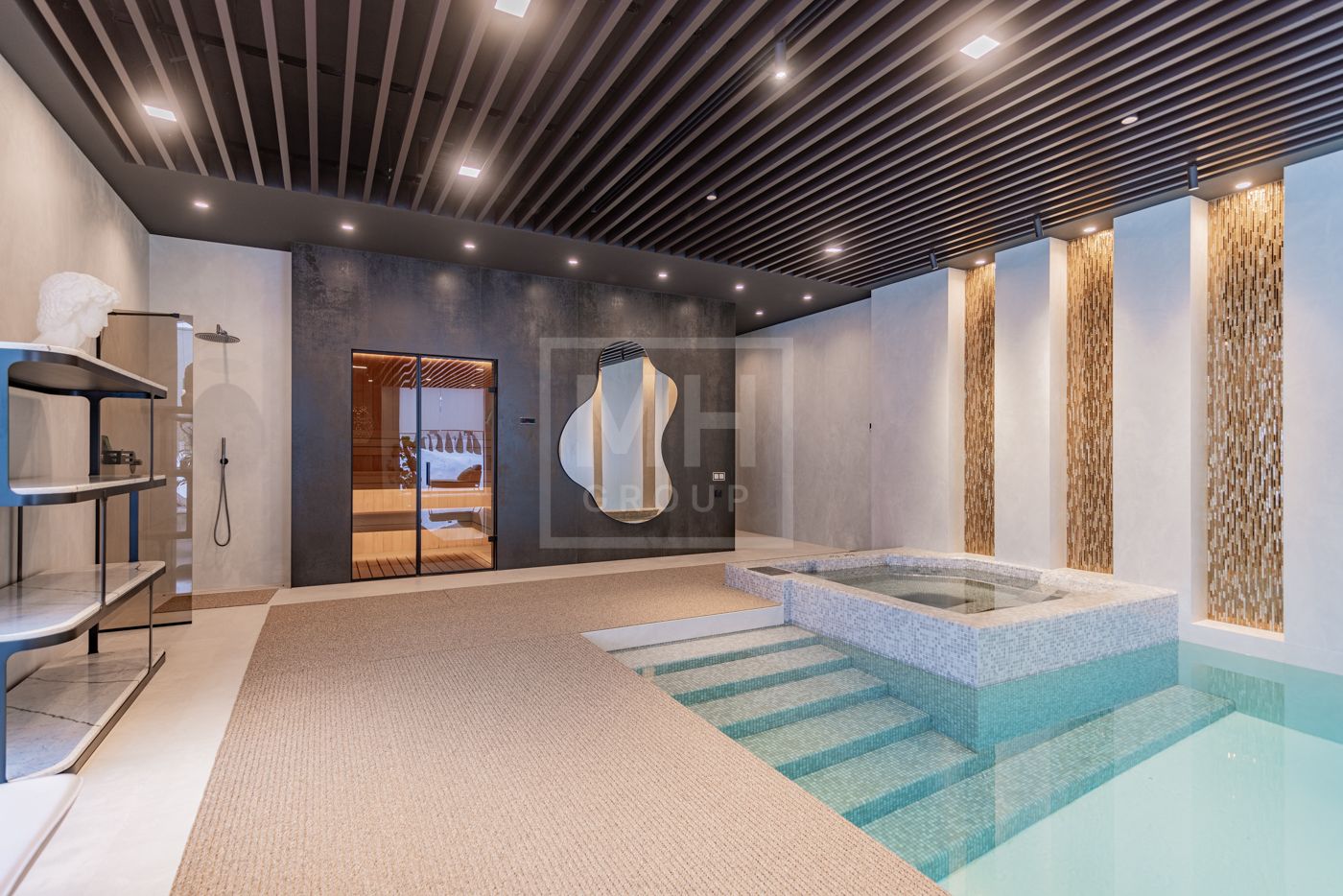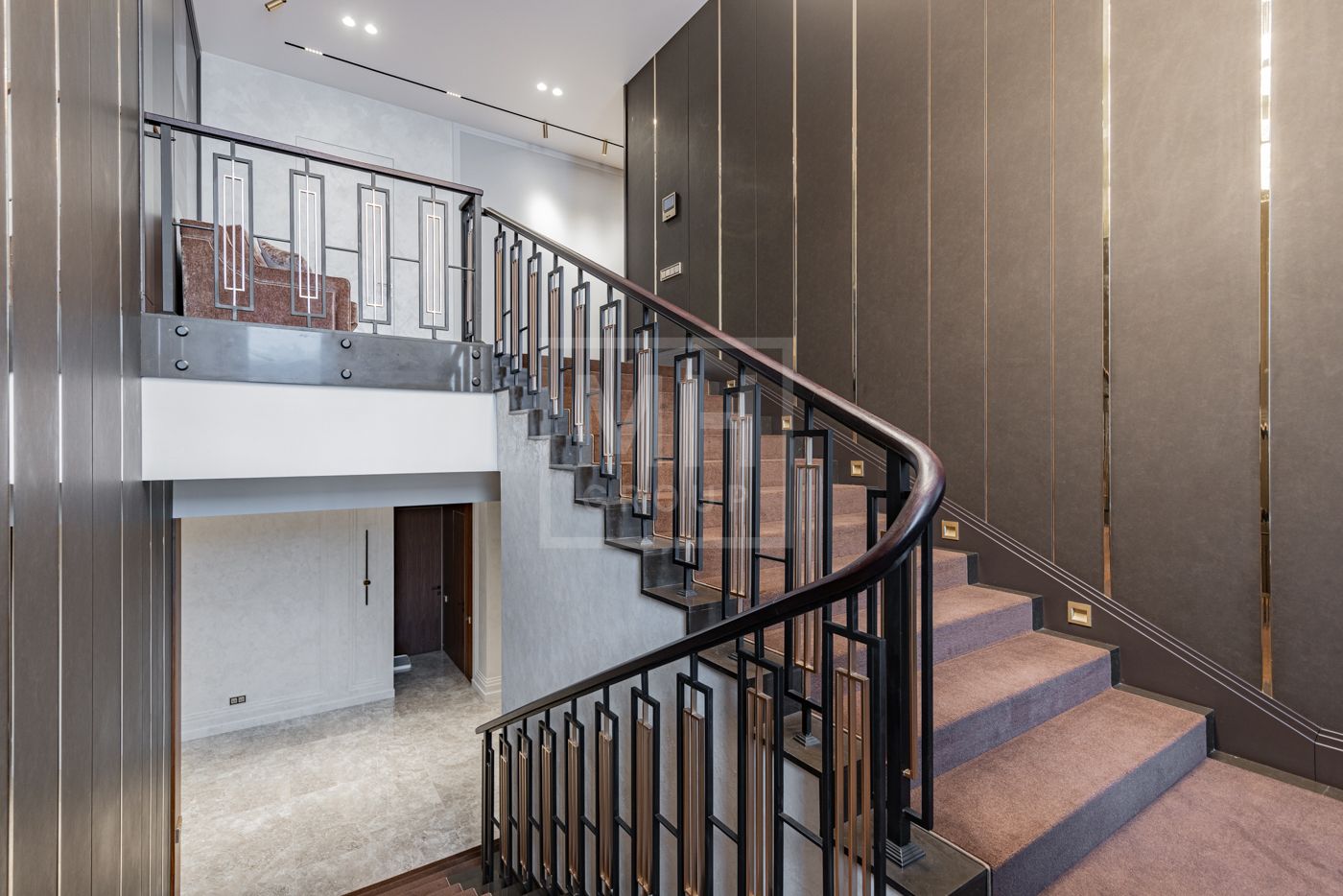 Этаж 2: 2 спальни с с/у и гардеробными, комната свободного назначения с с/у и гардеробной, основная спальня с с/у, 2-я гардеробными и выходом на террасу, блок для персонала с кухней, 2 спальнями, с/у и постирочной.
