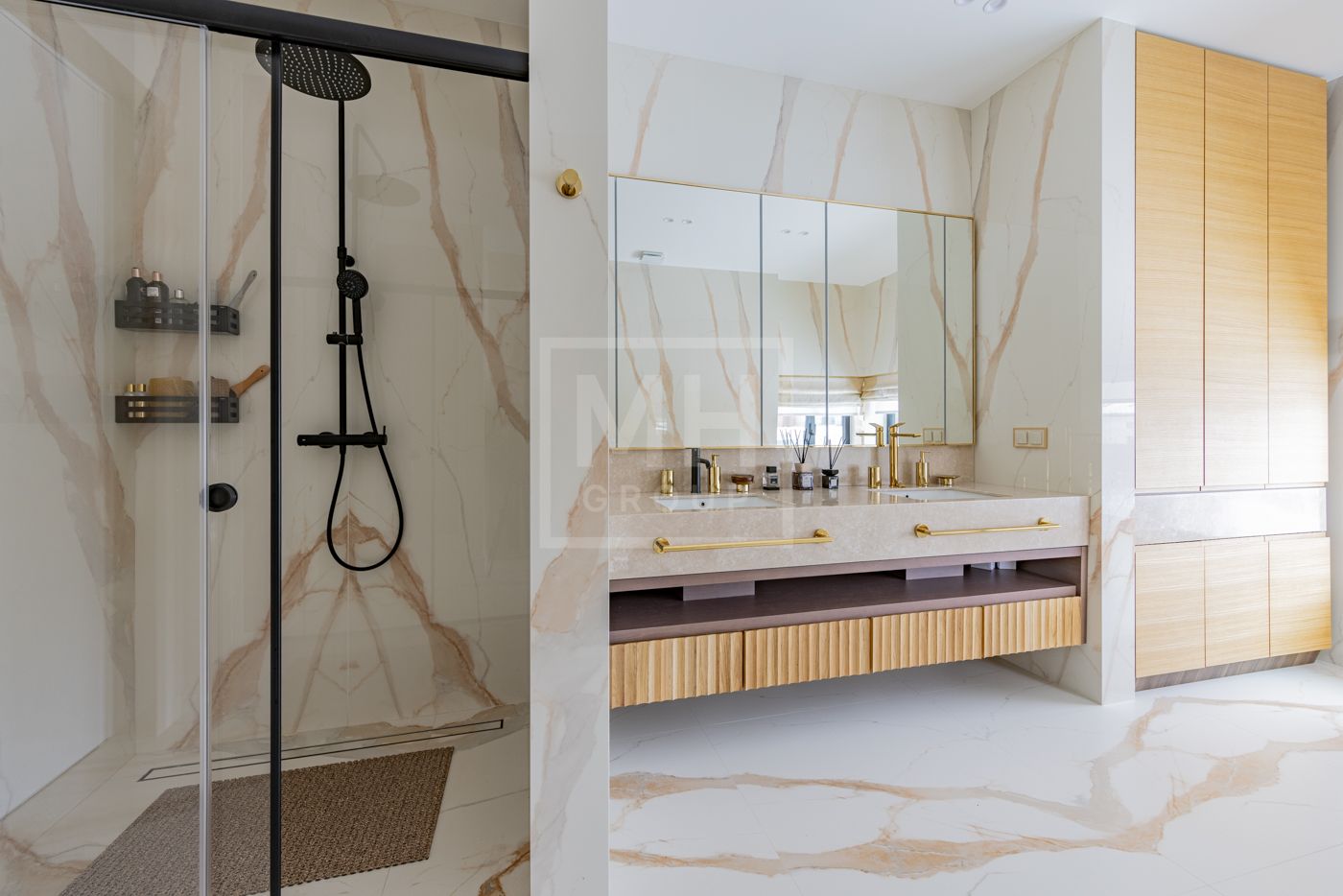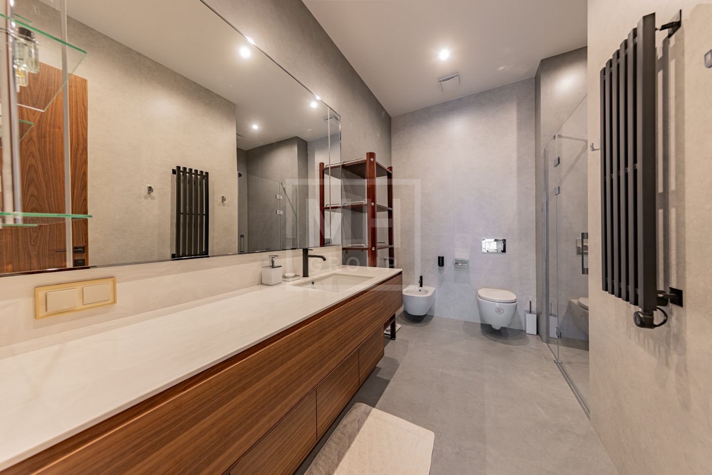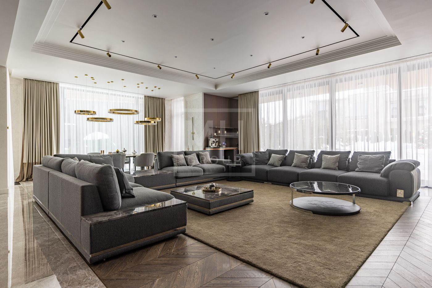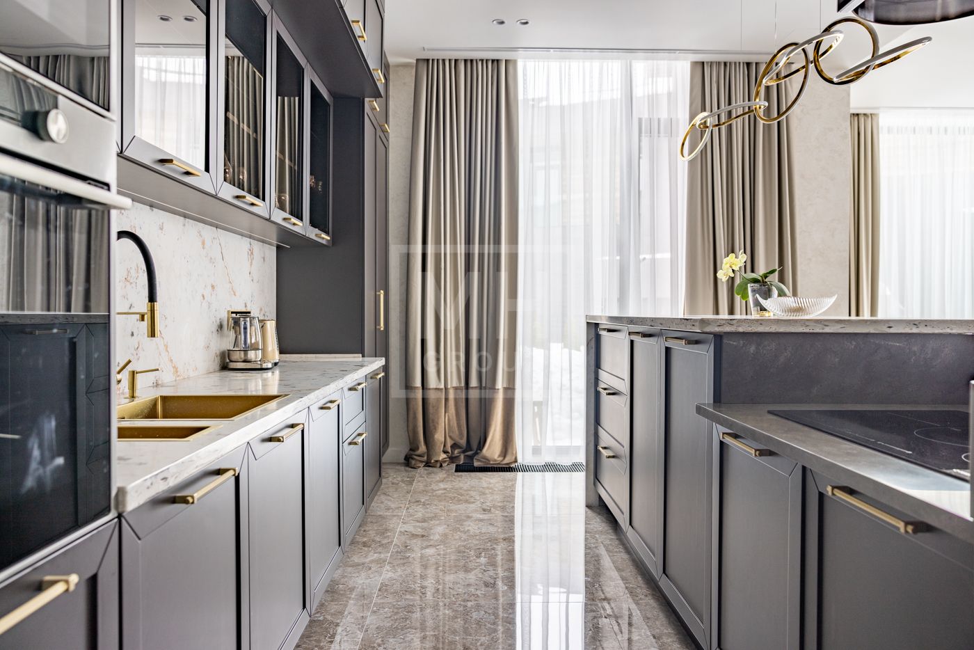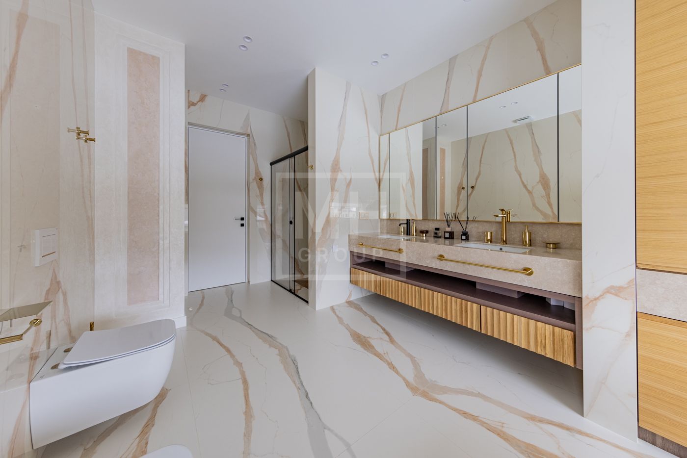 Роскошный новый современный дом, под ключ с мебелью, мебель во всем доме от ведущих производителей. Кухня европейского производства полностью укомплектована встроенной бытовой техникой. В отделке интерьеров качественные материалы. В гостиной камин, облицованный мрамором. Главная мастер спальня с с/у и просторной гардеробной. Интерьер дополняют: дизайнерская мебель европейского производства, премиальный текстиль на окнах, картины.