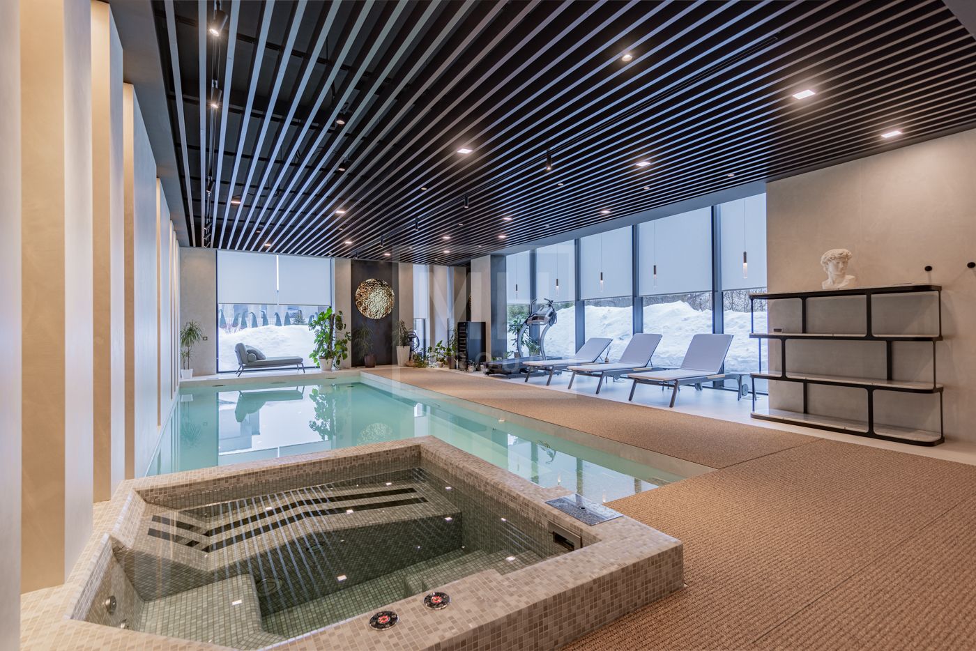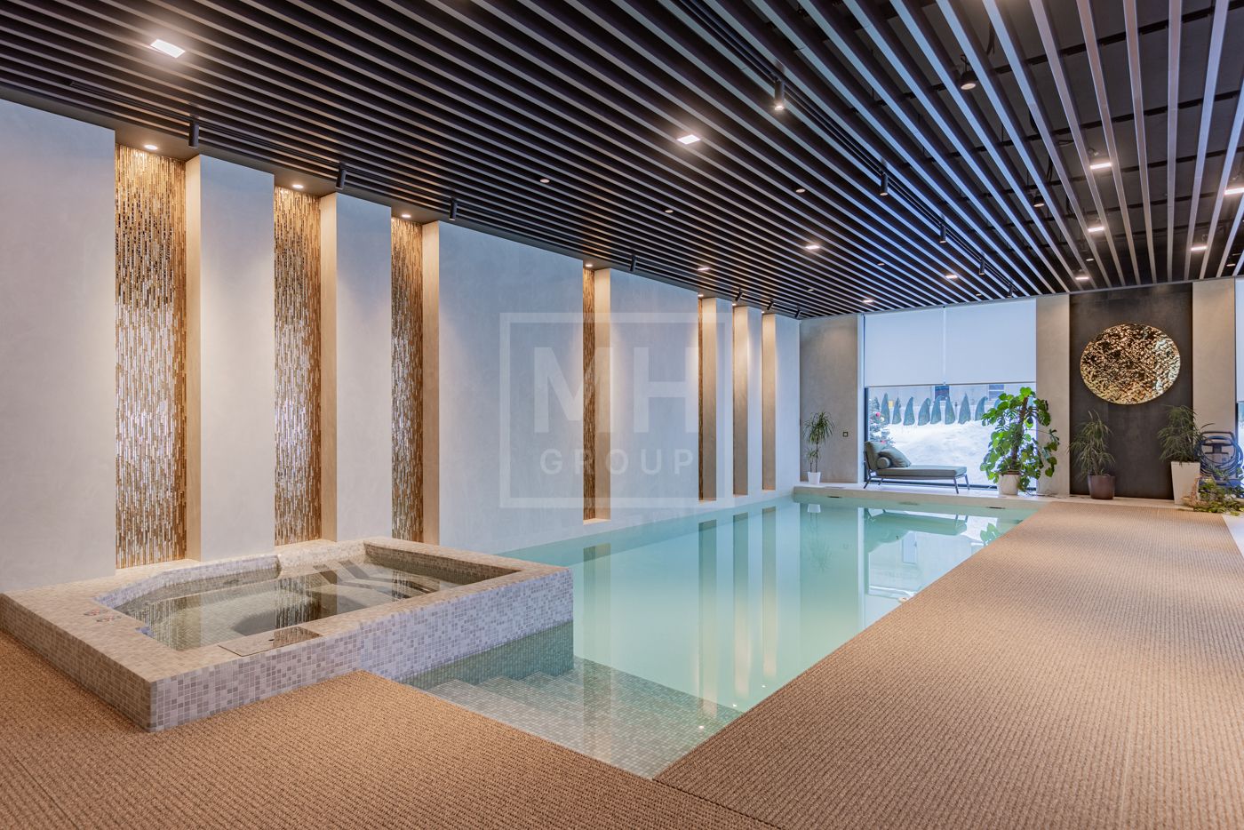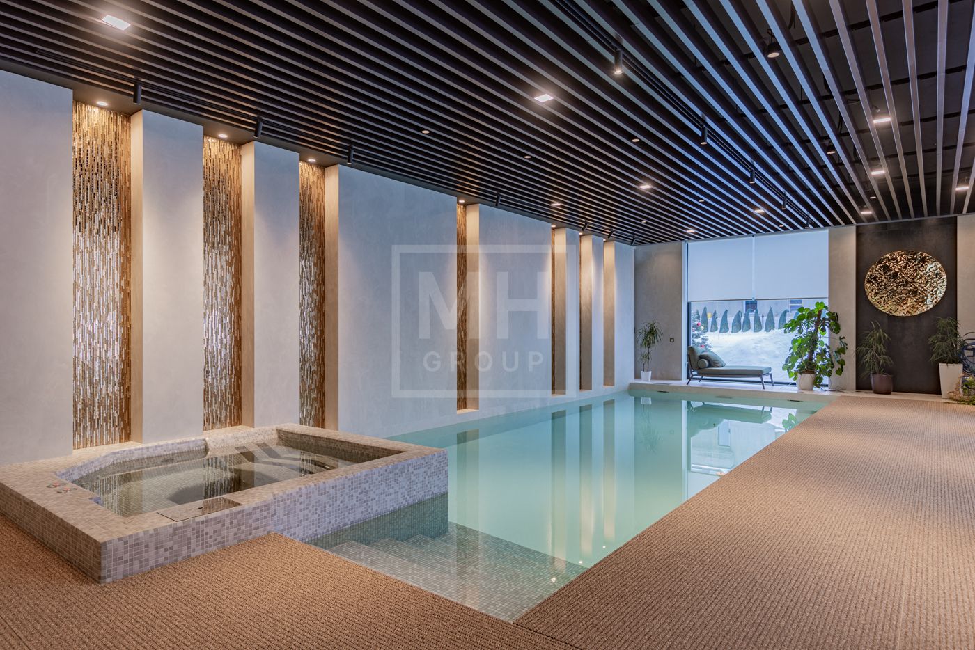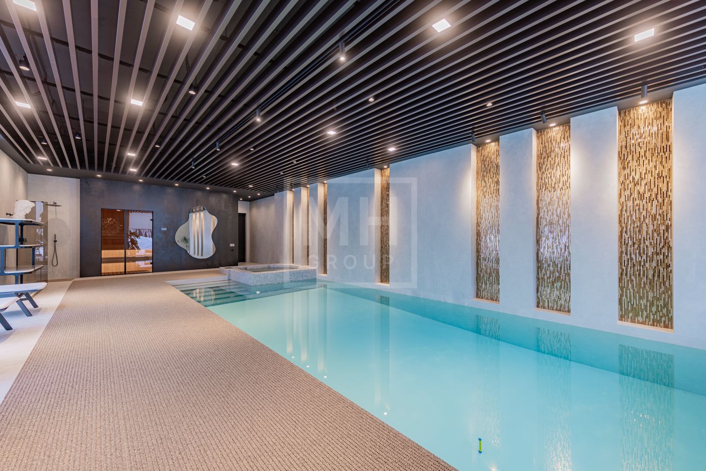 Этаж 1: прихожая, гардеробная, с/у, гостиная, кухня-столовая, спальня с с/у, бассейн, сауна, душевая, раздевалка, гараж 2 м/м;