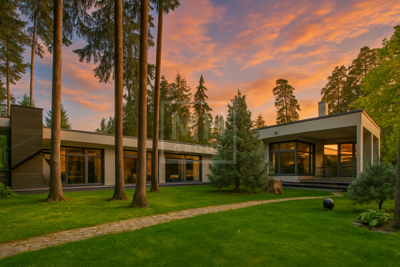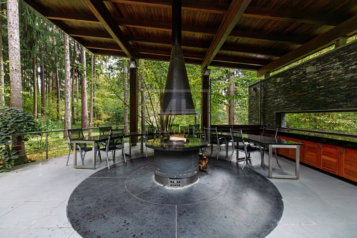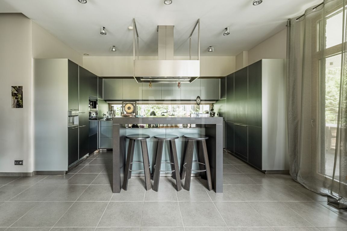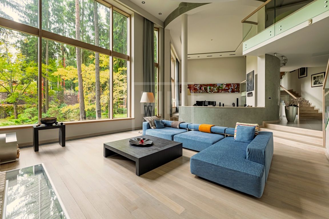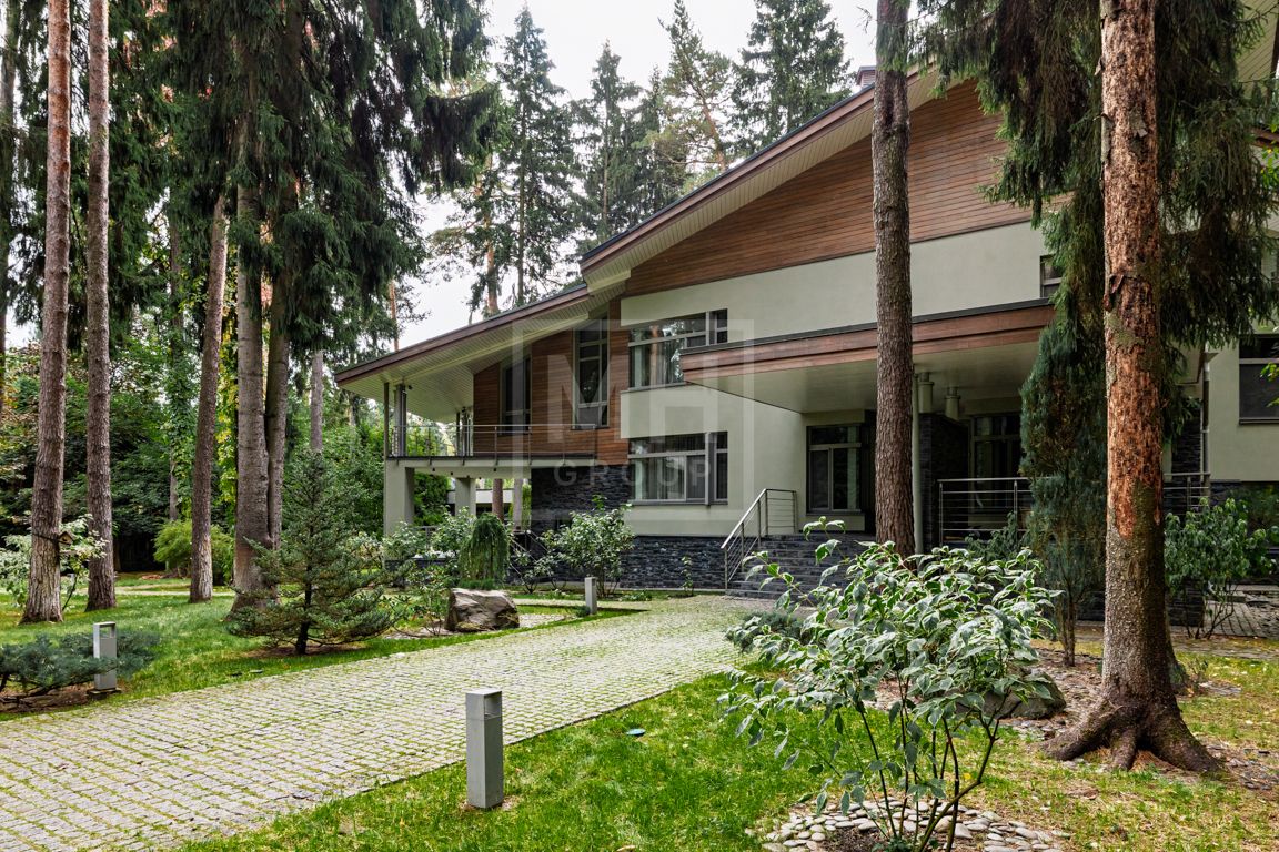Уютное шале с бассейном "под ключ" на лесном участке 1,5 Га в элитном КП "Грибово". Архитектура здесь подчинена главной идее -максимум света и разноуровневое пространство внутри. Высокие потолки до 6 метров и огромные панорамные окна Doleta с видами на лес буквально впускают природу внутрь дома. В отделке фасада - натуральный камень, штукатурка и дубовые панели. Мебель Armani, B&B. Немецкая кухня Bulthaup с бытовой техникой Zug (Швейцария). Сантехника Antonio Lupi.На участке есть СПА-комплекс 340 м2 (25-метровый бассейн, сауна, гостиная с мини-кухней и камином, с/у, гардеробная), беседка 100 м2 с барбекю и дом для персонала с гаражом на 2 машины и котельной