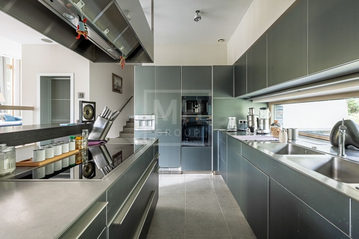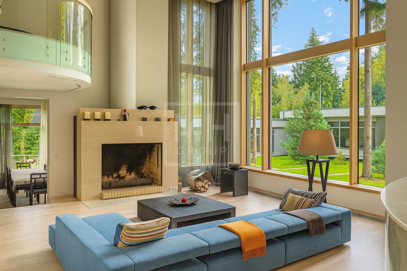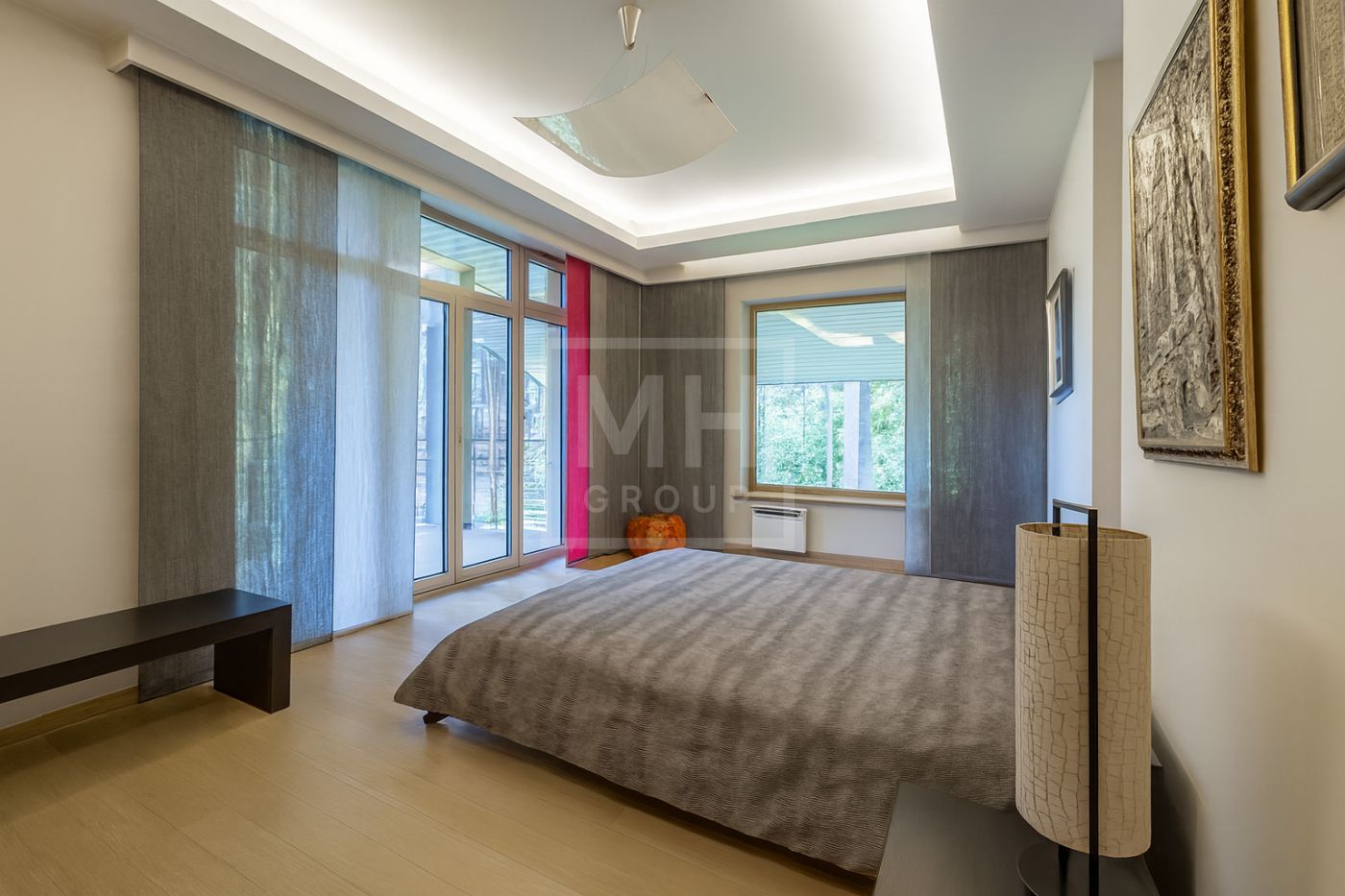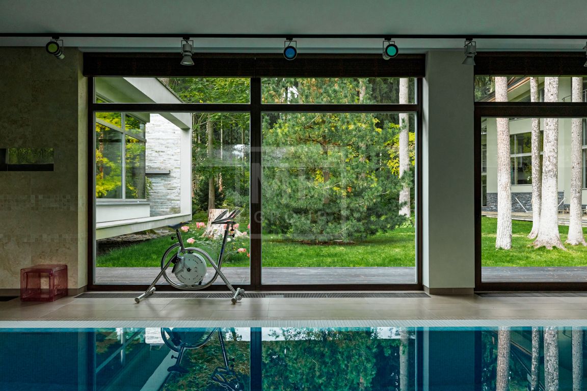 Уютное шале с бассейном "под ключ" на лесном участке 1,5 Га в элитном КП "Грибово". Архитектура здесь подчинена главной идее -максимум света и разноуровневое пространство внутри. Высокие потолки до 6 метров и огромные панорамные окна Doleta с видами на лес буквально впускают природу внутрь дома. В отделке фасада - натуральный камень, штукатурка и дубовые панели. Мебель Armani, B&B. Немецкая кухня Bulthaup с бытовой техникой Zug (Швейцария). Сантехника Antonio Lupi.На участке есть СПА-комплекс 340 м2 (25-метровый бассейн, сауна, гостиная с мини-кухней и камином, с/у, гардеробная), беседка 100 м2 с барбекю и дом для персонала с гаражом на 2 машины и котельной