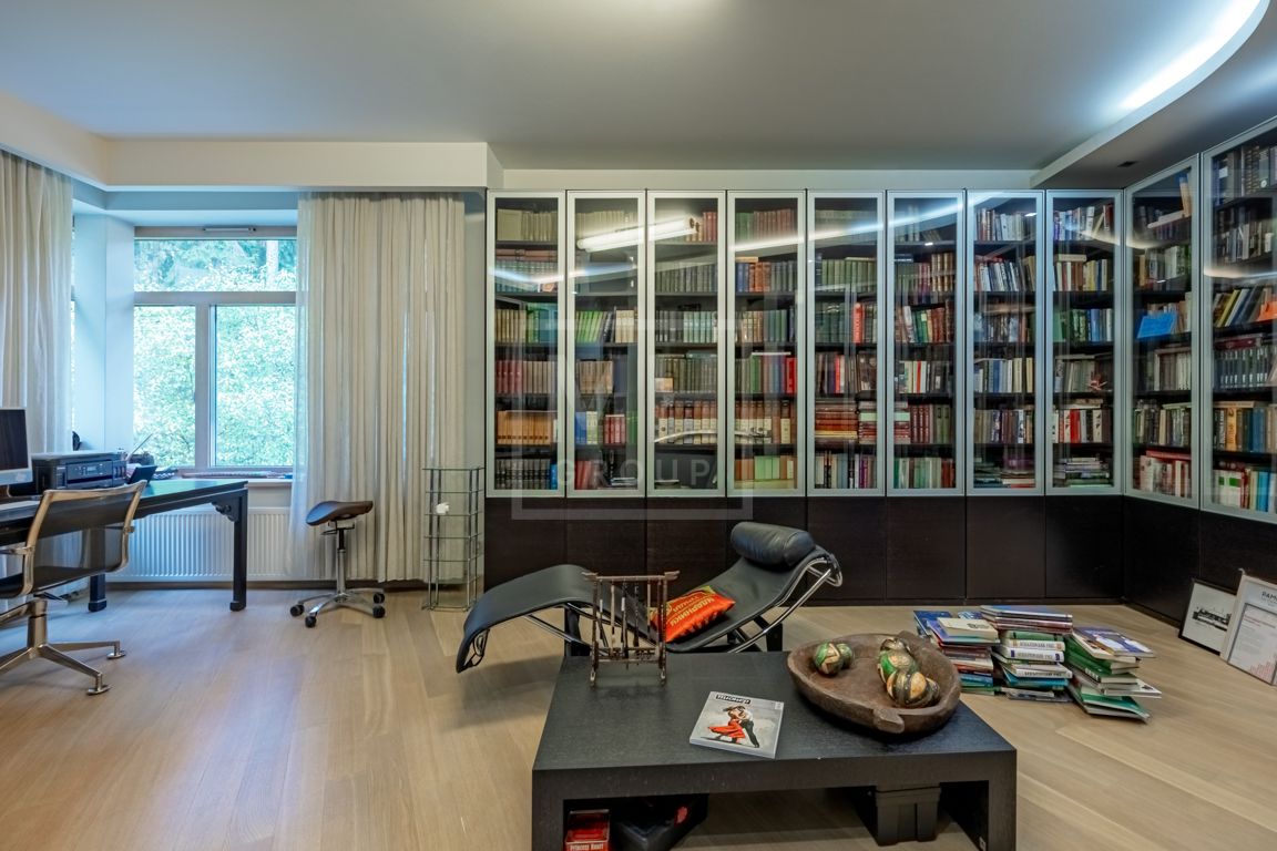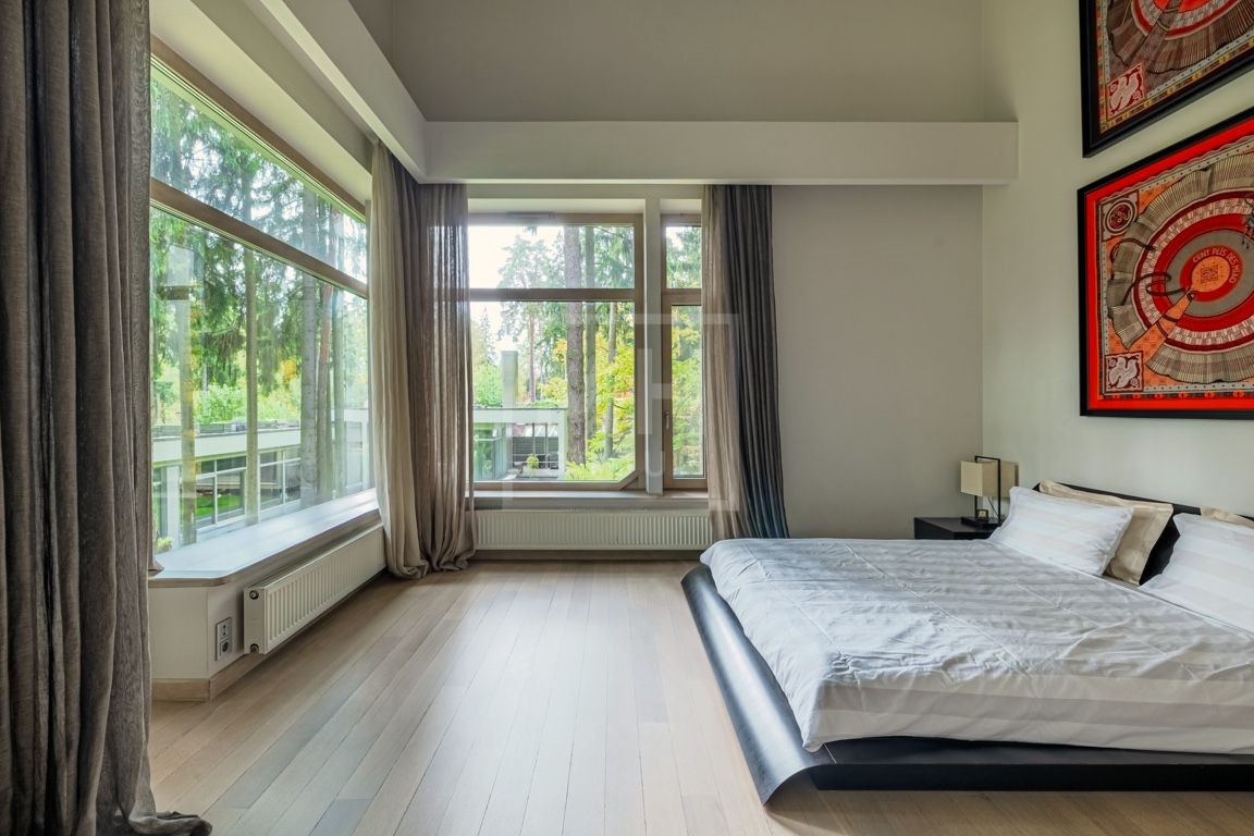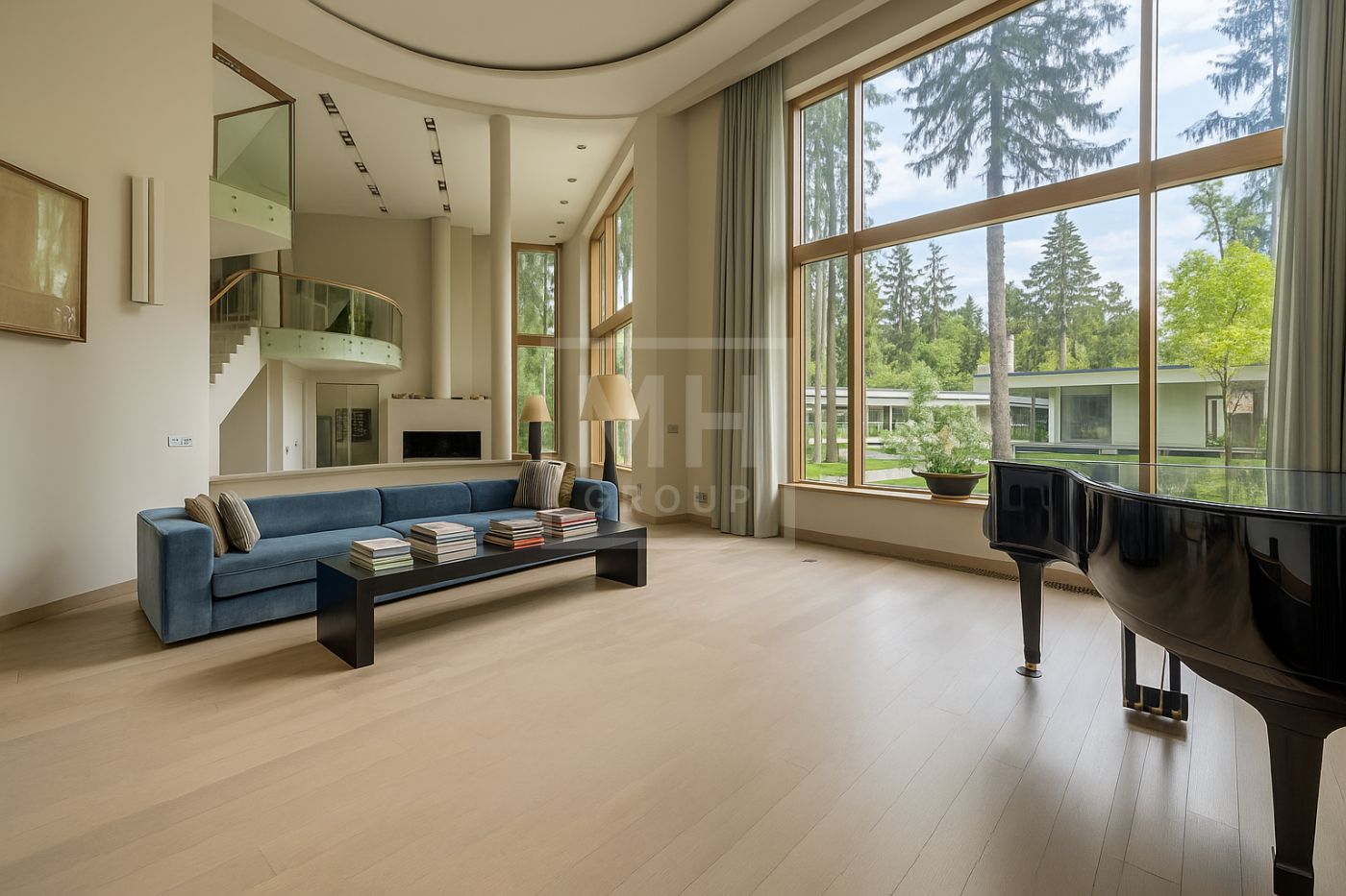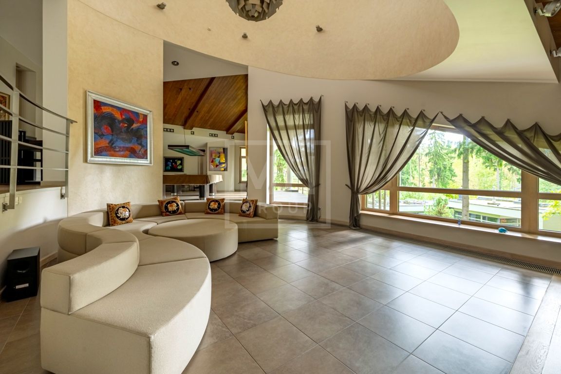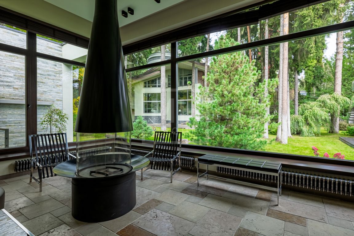 Уютное шале с бассейном "под ключ" на лесном участке 1,5 Га в элитном КП "Грибово". Архитектура здесь подчинена главной идее -максимум света и разноуровневое пространство внутри. Высокие потолки до 6 метров и огромные панорамные окна Doleta с видами на лес буквально впускают природу внутрь дома. В отделке фасада - натуральный камень, штукатурка и дубовые панели. Мебель Armani, B&B. Немецкая кухня Bulthaup с бытовой техникой Zug (Швейцария). Сантехника Antonio Lupi.На участке есть СПА-комплекс 340 м2 (25-метровый бассейн, сауна, гостиная с мини-кухней и камином, с/у, гардеробная), беседка 100 м2 с барбекю и дом для персонала с гаражом на 2 машины и котельной