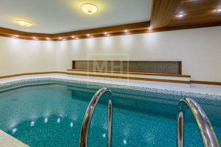 Особого внимания заслуживает парковый ландшафт, окружающий особняк. Ухоженный сад с многолетними деревьями и цветущими кустарниками создает идиллическую атмосферу и обеспечивает полную приватность. На территории участка также находится отдельный дом для персонала и охраны с встроенным гаражом площадью 128,4 м, что обеспечивает дополнительное удобство и практичность.
