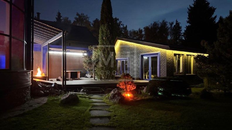 Яркий авторский дизайн, который прослеживается в ландшафте, интерьерах и отделке всех помещений домовладения, удачно сочетается с рациональным использованием пространства, комфортной планировкой, понятным зонированием.