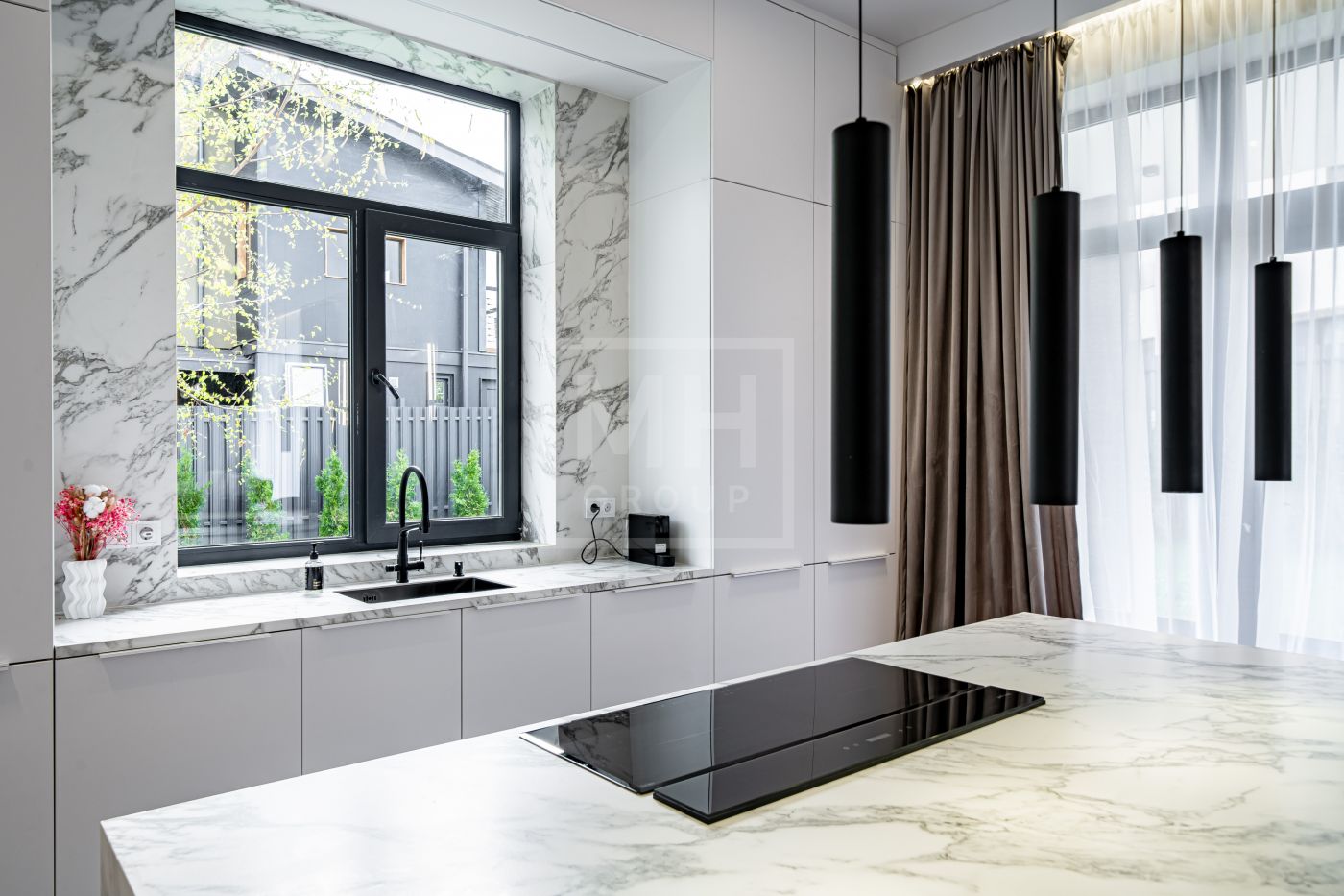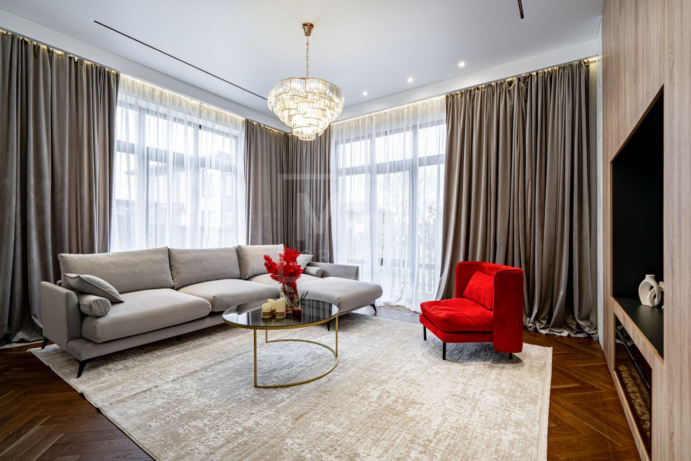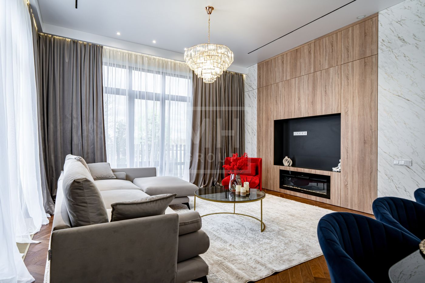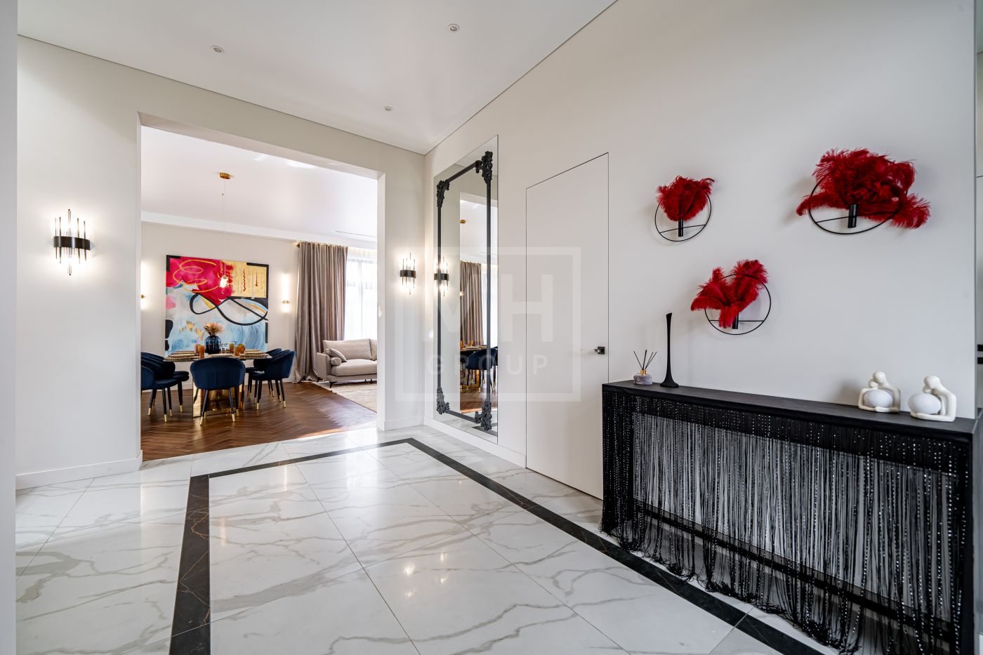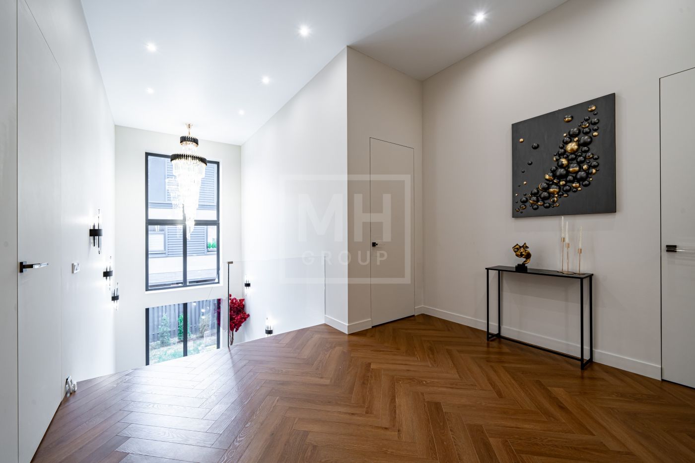 Загородный дом в современном стиле, расположенный в коттеджном поселке «Павловы озера», представляет собой гармоничное сочетание функциональности и изысканного дизайна. Проект площадью 310 м², расположенный на участке 6,5 соток, предлагает комфортную загородную жизнь всего в 14 км от Новорижского шоссе.Двухэтажный дом с плоской кровлей выполнен с дизайнерской отделкой «под ключ» и полностью меблирован. Планировка продумана для максимального удобства: просторная гостиная-столовая, стильная кухня, оснащенная современной бытовой техникой, пять уютных спален, включая мастер-спальню с индивидуальной гардеробной зоной, а также кабинет для работы. Большие панорамные окна обеспечивают естественное освещение на протяжении всего дня, создавая атмосферу тепла и уюта даже в пасмурную погоду. Этот дом идеально подойдет для тех, кто ищет современный и функциональный вариант загородного жилья с комфортной близостью