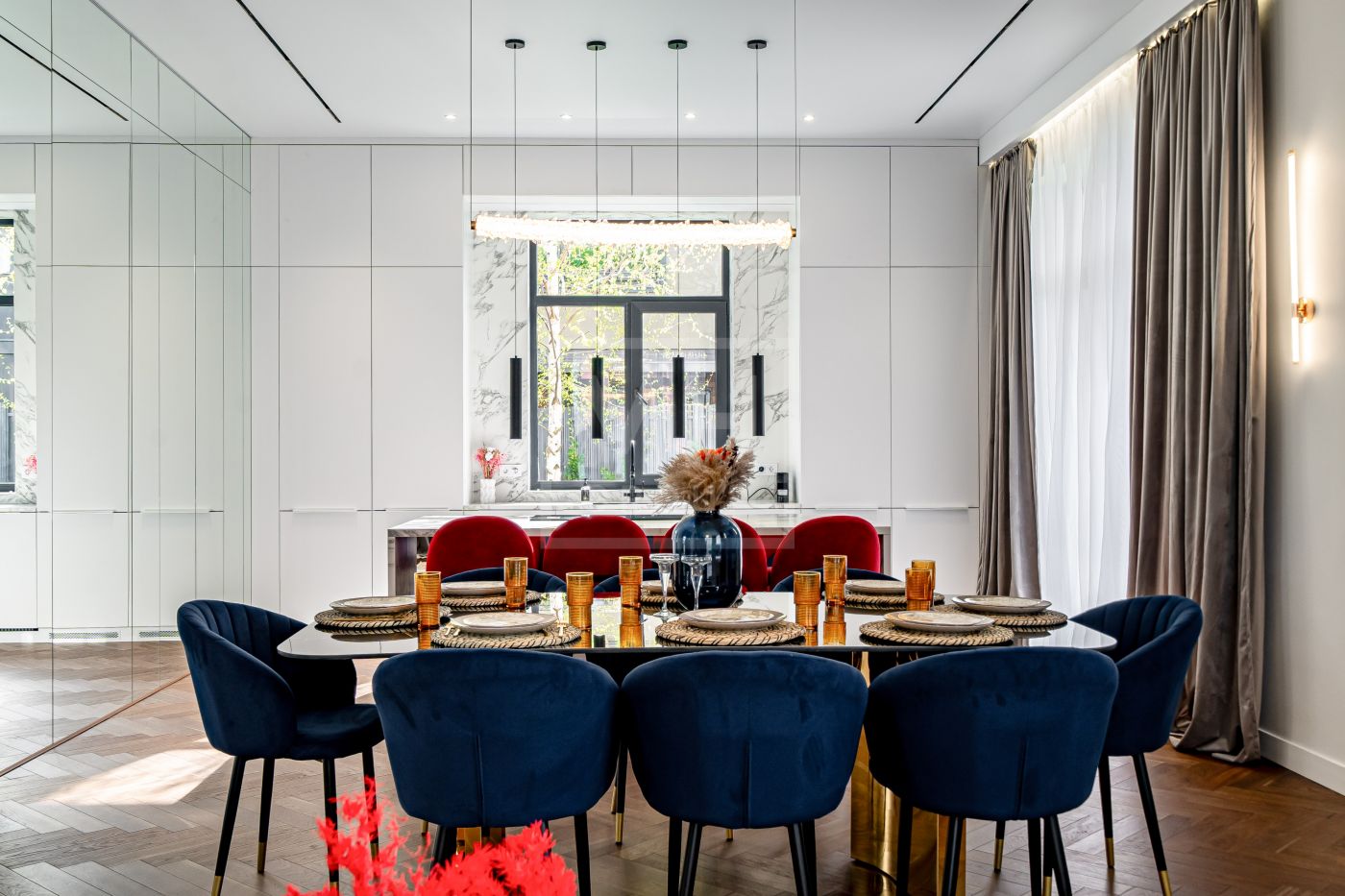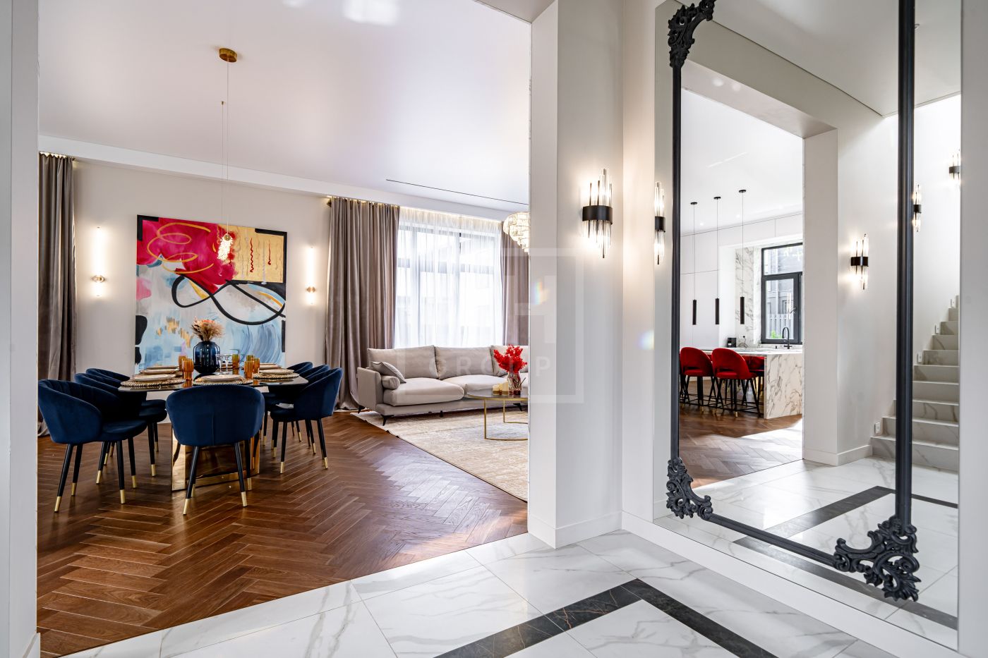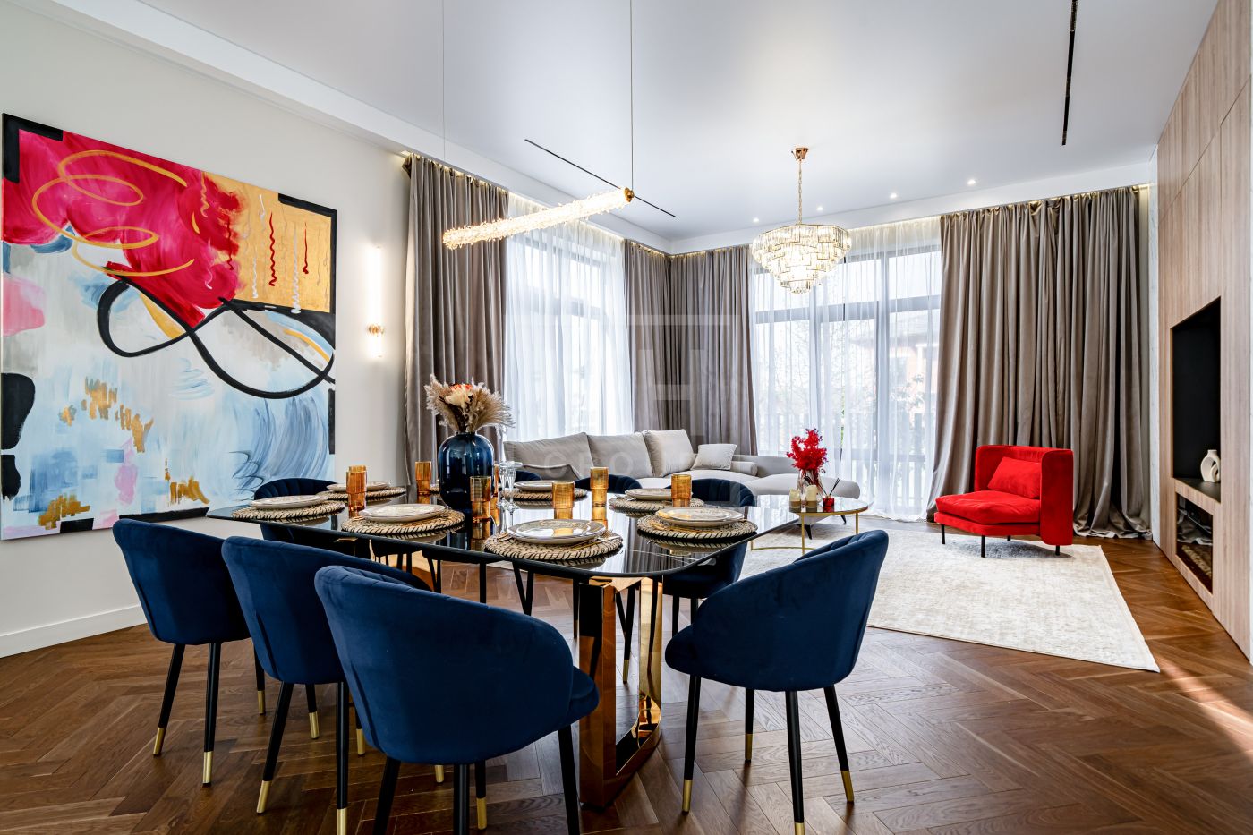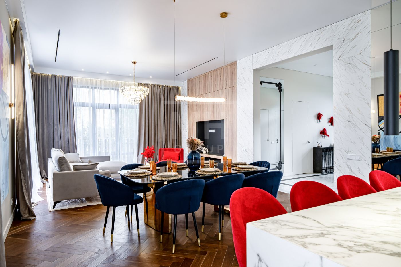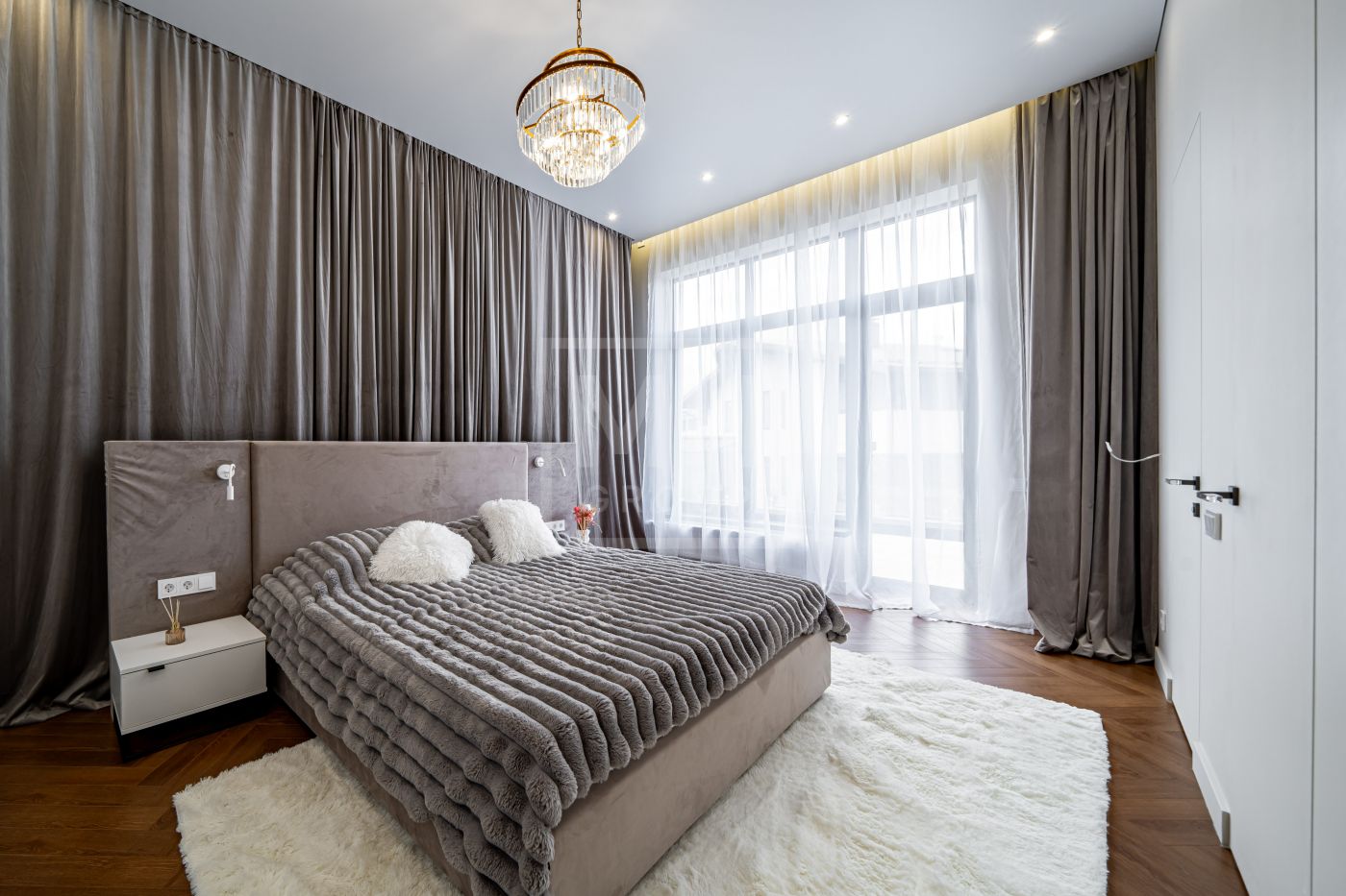 Загородный дом в современном стиле, расположенный в коттеджном поселке «Павловы озера», представляет собой гармоничное сочетание функциональности и изысканного дизайна. Проект площадью 310 м², расположенный на участке 6,5 соток, предлагает комфортную загородную жизнь всего в 14 км от Новорижского шоссе.Двухэтажный дом с плоской кровлей выполнен с дизайнерской отделкой «под ключ» и полностью меблирован. Планировка продумана для максимального удобства: просторная гостиная-столовая, стильная кухня, оснащенная современной бытовой техникой, пять уютных спален, включая мастер-спальню с индивидуальной гардеробной зоной, а также кабинет для работы. Большие панорамные окна обеспечивают естественное освещение на протяжении всего дня, создавая атмосферу тепла и уюта даже в пасмурную погоду. Этот дом идеально подойдет для тех, кто ищет современный и функциональный вариант загородного жилья с комфортной близостью