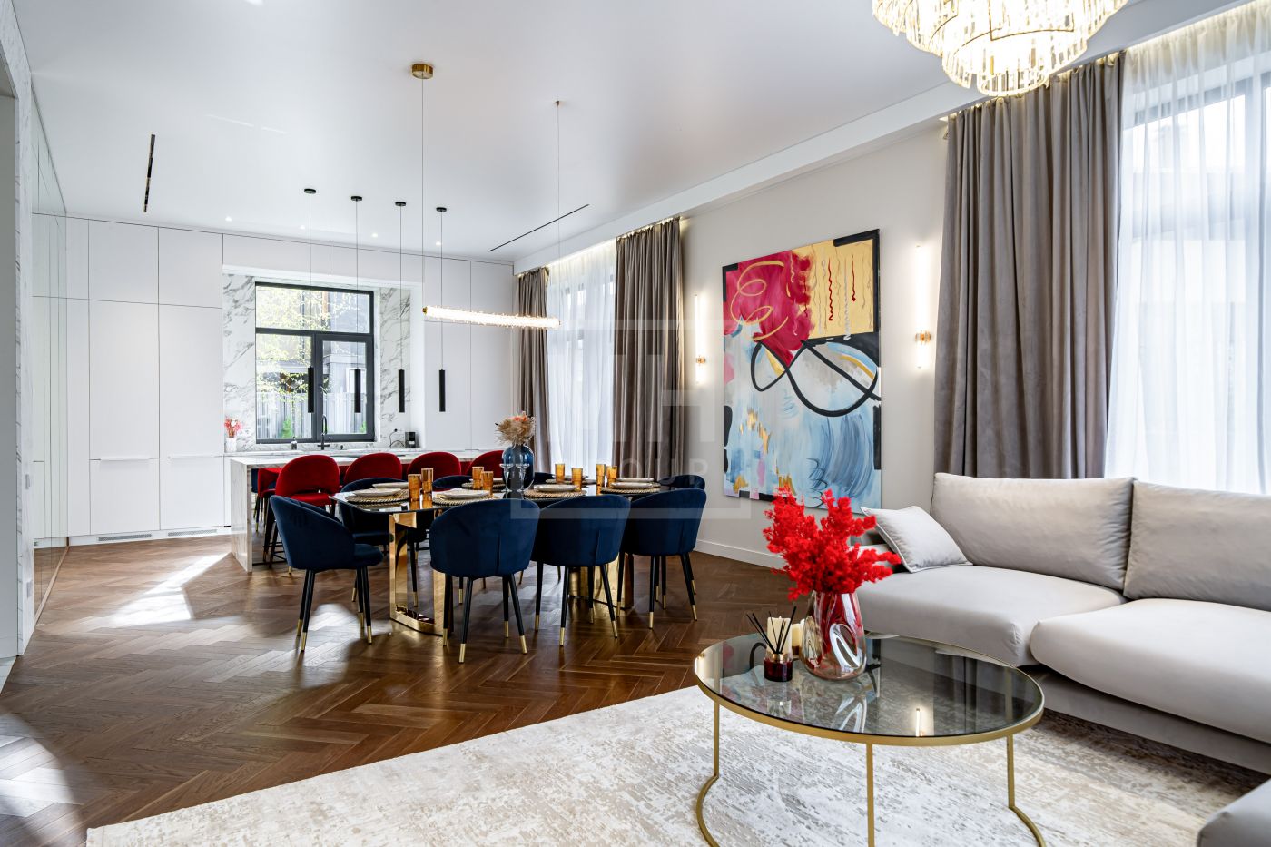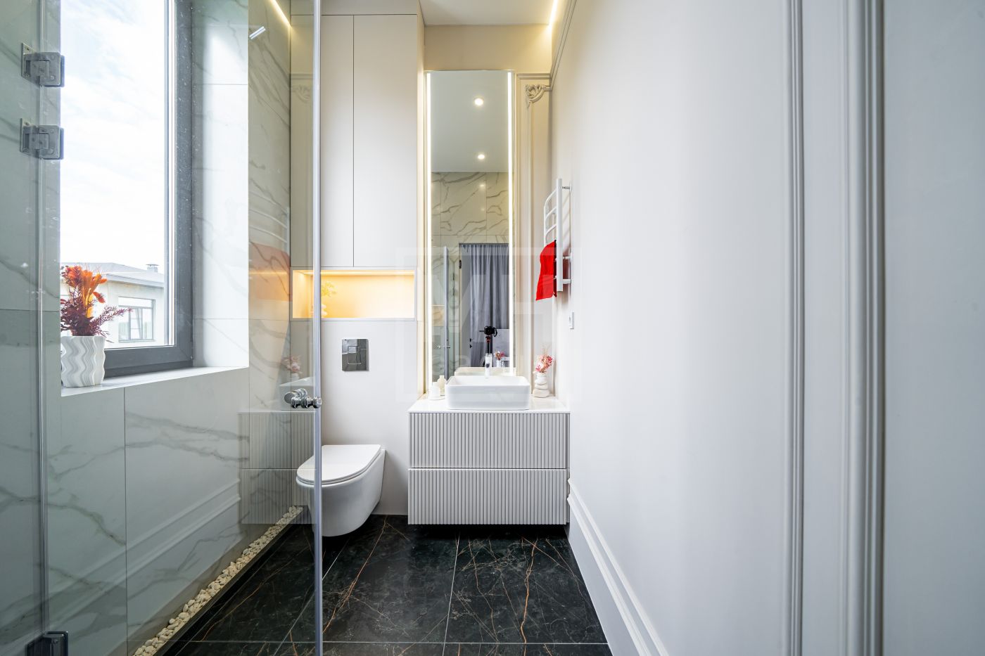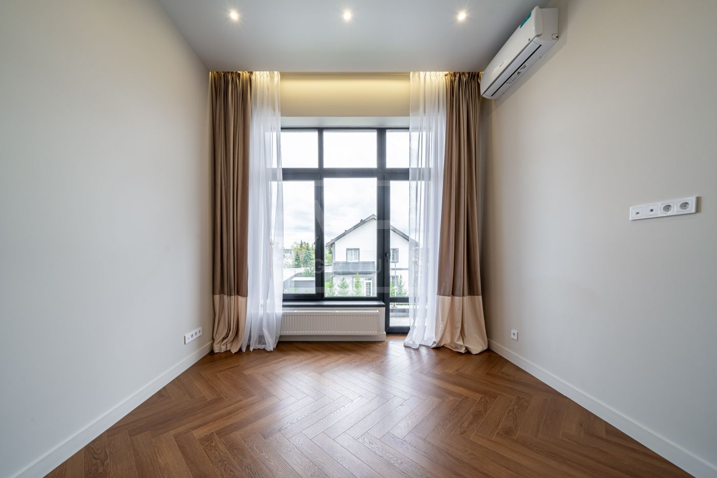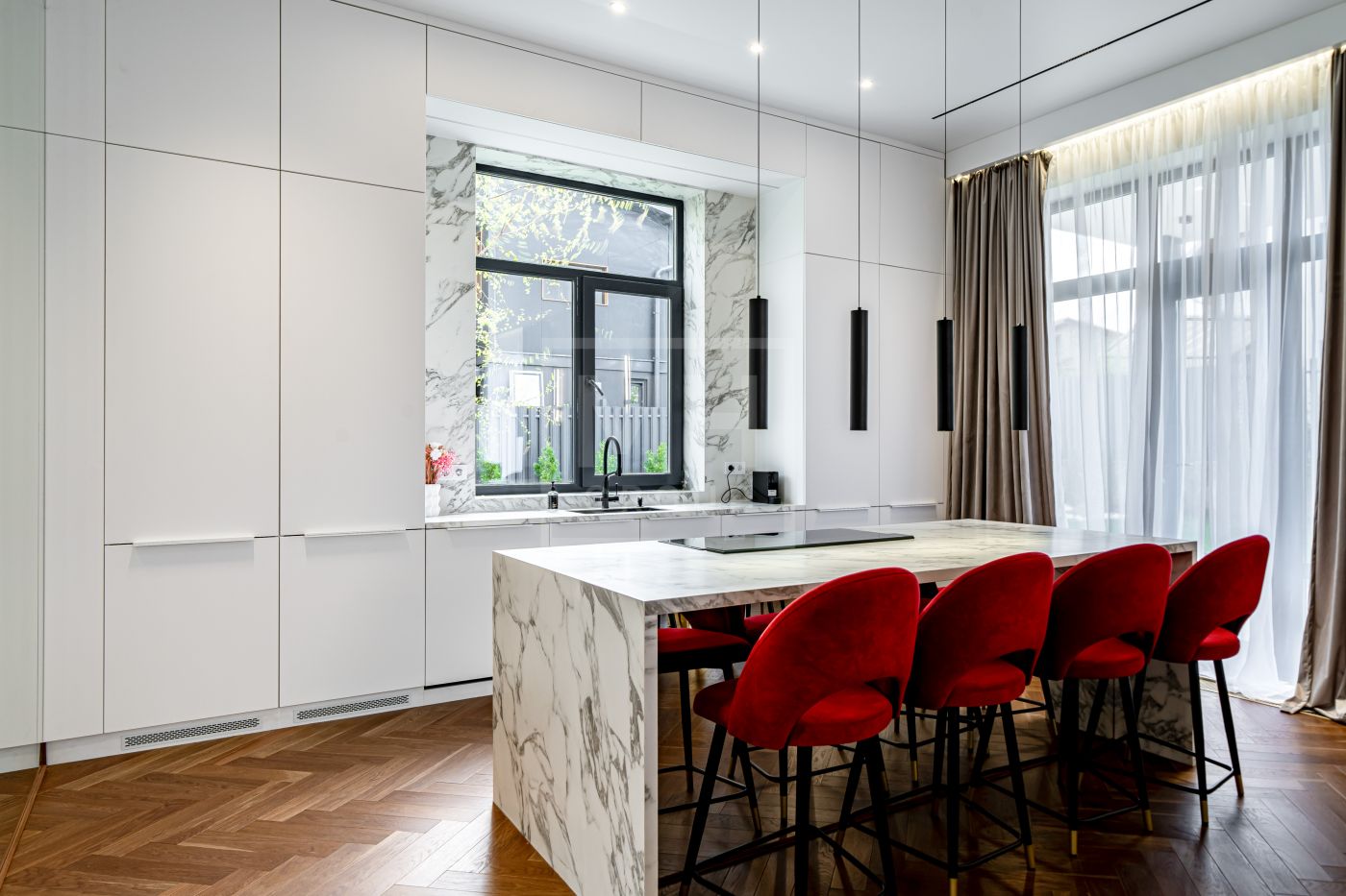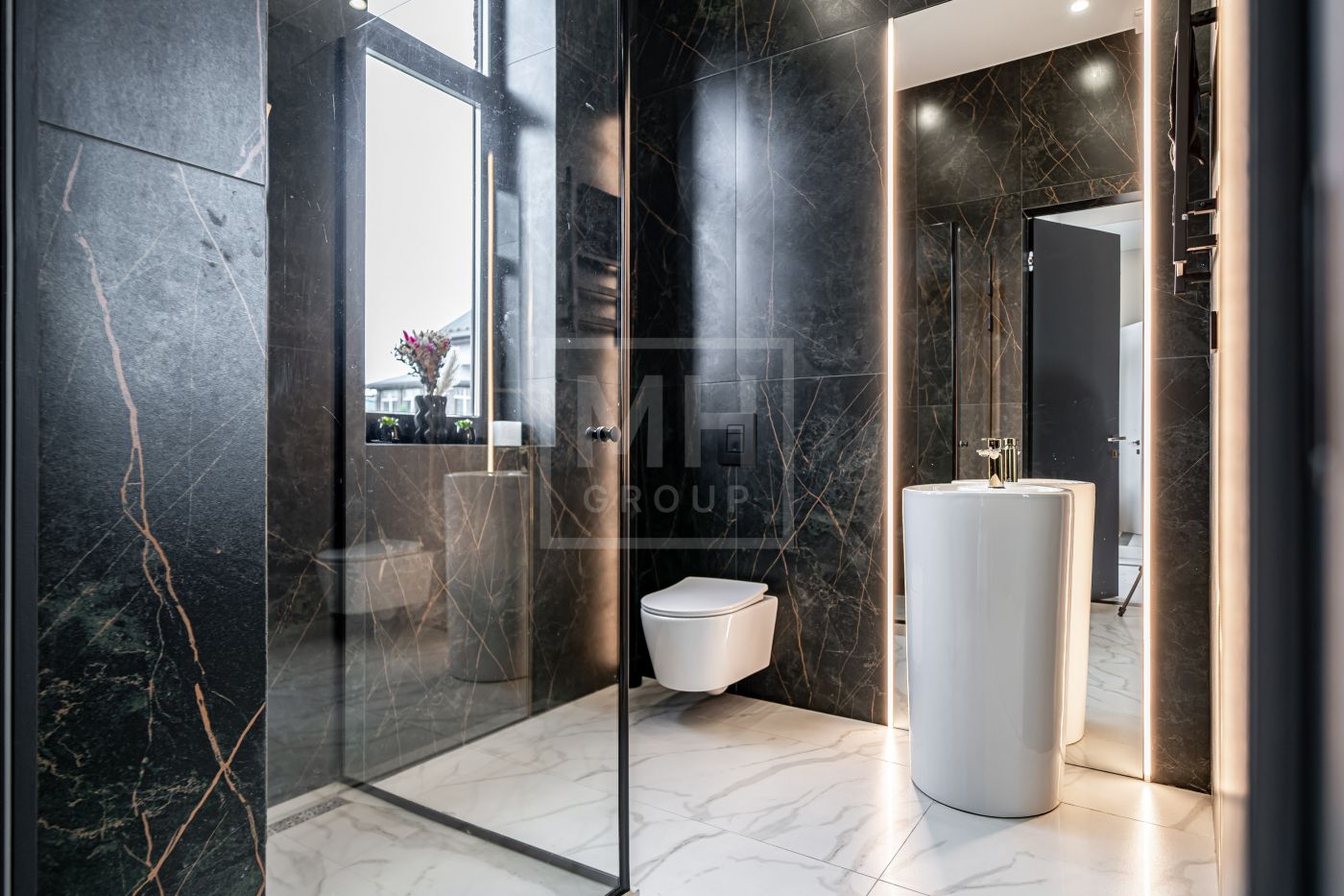 Загородный дом в современном стиле, расположенный в коттеджном поселке «Павловы озера», представляет собой гармоничное сочетание функциональности и изысканного дизайна. Проект площадью 310 м², расположенный на участке 6,5 соток, предлагает комфортную загородную жизнь всего в 14 км от Новорижского шоссе.Двухэтажный дом с плоской кровлей выполнен с дизайнерской отделкой «под ключ» и полностью меблирован. Планировка продумана для максимального удобства: просторная гостиная-столовая, стильная кухня, оснащенная современной бытовой техникой, пять уютных спален, включая мастер-спальню с индивидуальной гардеробной зоной, а также кабинет для работы. Большие панорамные окна обеспечивают естественное освещение на протяжении всего дня, создавая атмосферу тепла и уюта даже в пасмурную погоду. Этот дом идеально подойдет для тех, кто ищет современный и функциональный вариант загородного жилья с комфортной близостью