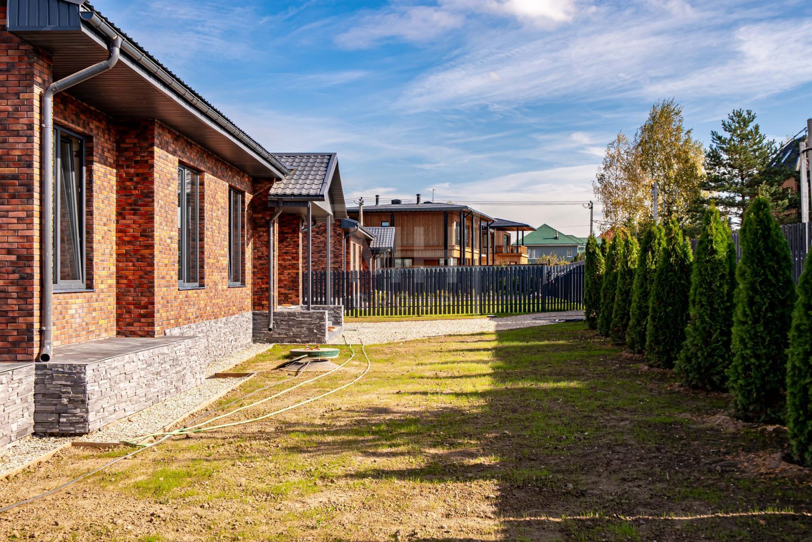 Продаётся новый дом общей площадью 259,6 м², на участке 10 сот. В доме на данный момент выполнены инженерные системы и отштукатурены стены. Полная готовность дома под ключ в декабре 2025 года.Планировка одноэтажного дома очень удобная и функциональная, просторная кухня-гостиная с выходом на террасу, мастер-спальня с гардеробной, санузлом и собственным выходом на террасу, две спальни, кабинет также с выходом на террасу. Все коммуникации заведены в дом.