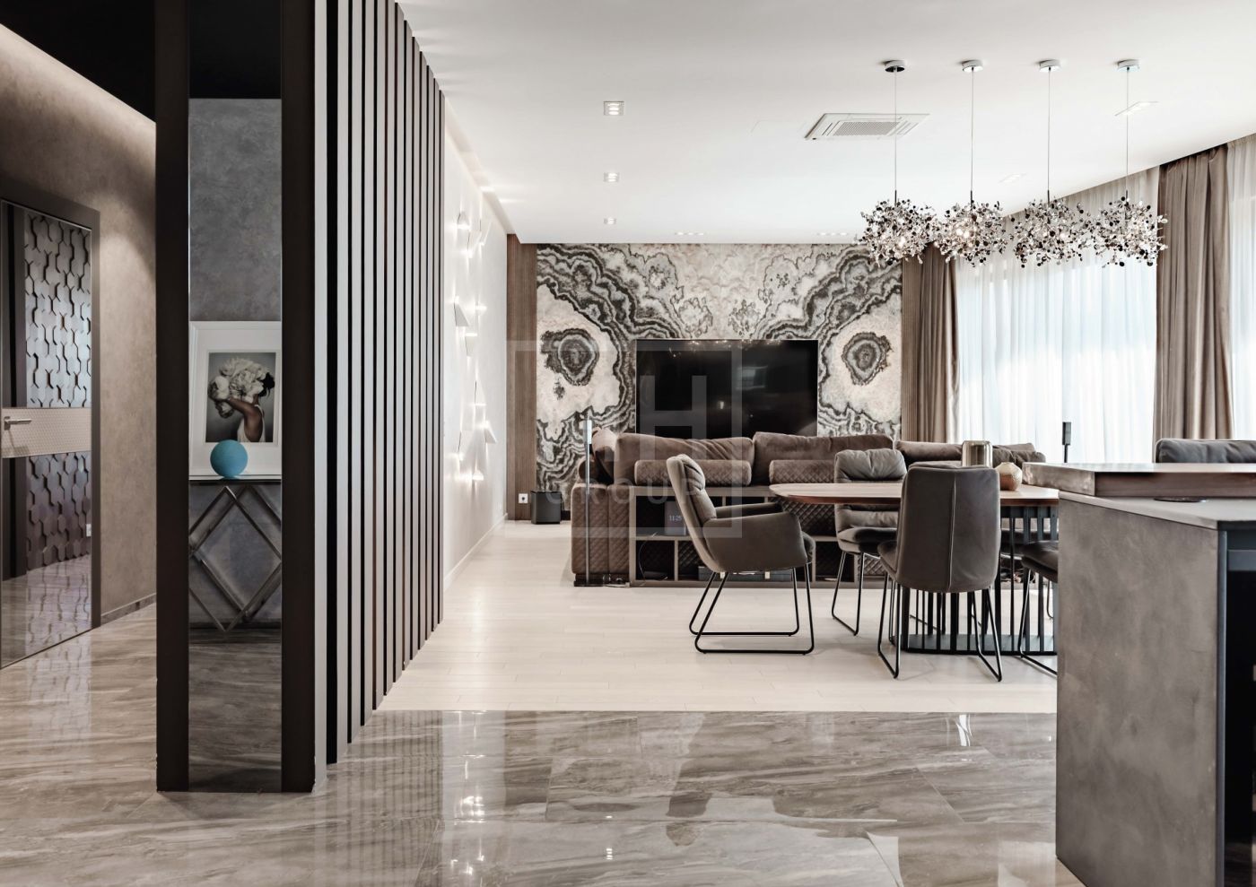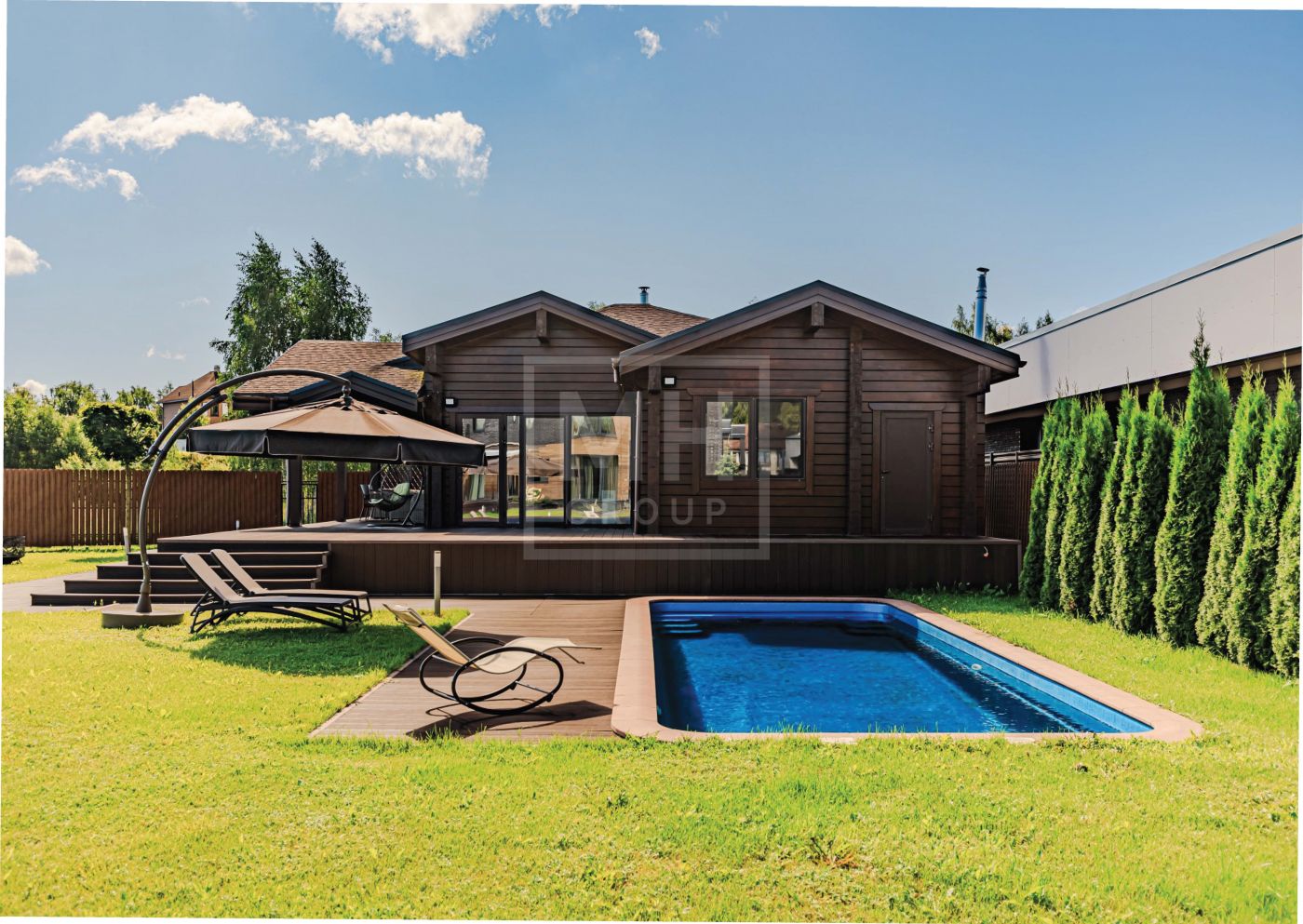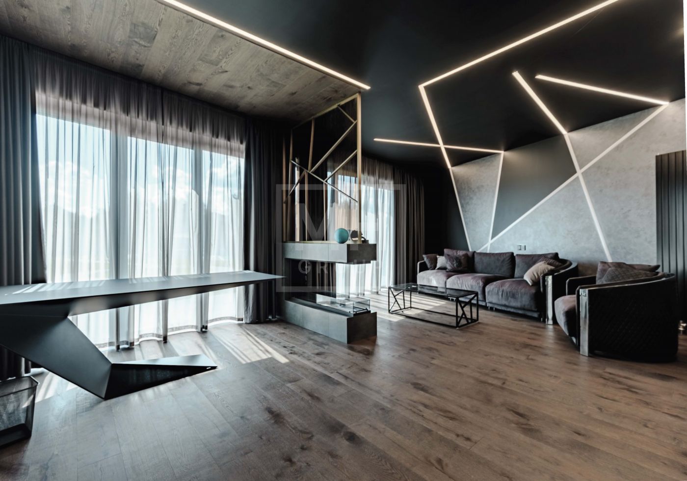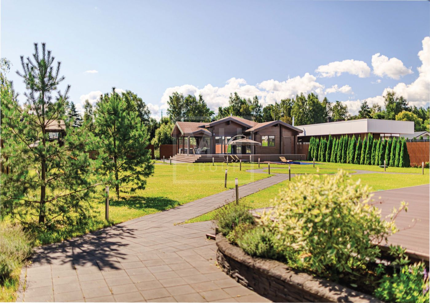 Просторный загородный дом 600 м2 с дизайнерским ремонтом построен на 1-й линии реки на территории престижного охраняемого коттеджного поселка «Лес и Река».Светлый просторный дом выполнен из высококачественных материалов, в отделке использованы натуральные материалы, много дерева, камень - стена в гостиной полностью выполнена из оникса с подсветкой.