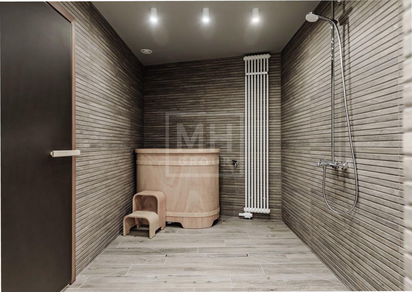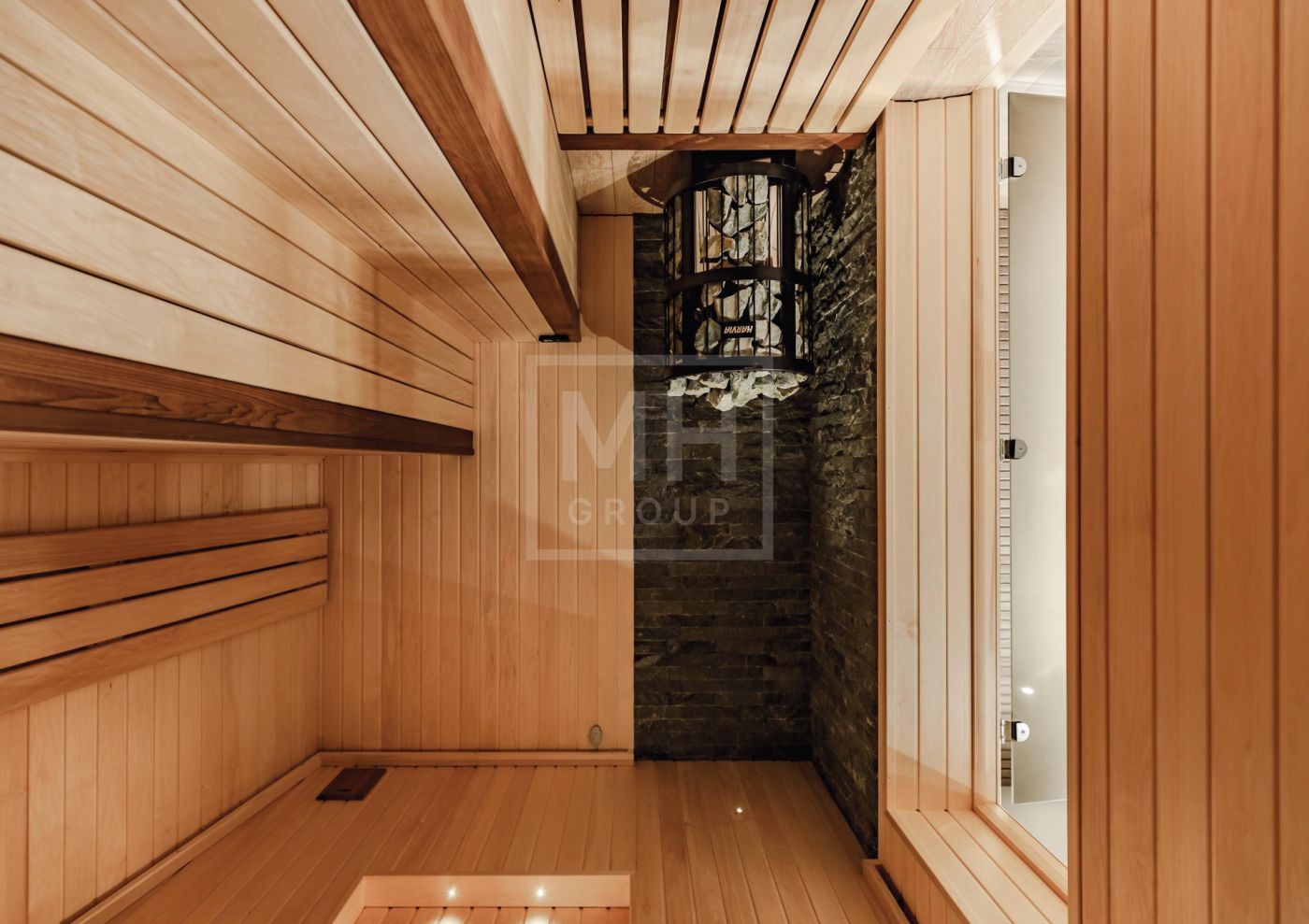 Цоколь: Бойлерная, техпомещение, сауна, душевая с купелью, комната отдыха, постирочная(техника Asko), кладовая, санузел, спортивный зал с окном, зона проживания персонала с су и кухней (отдельный вход с улицы).