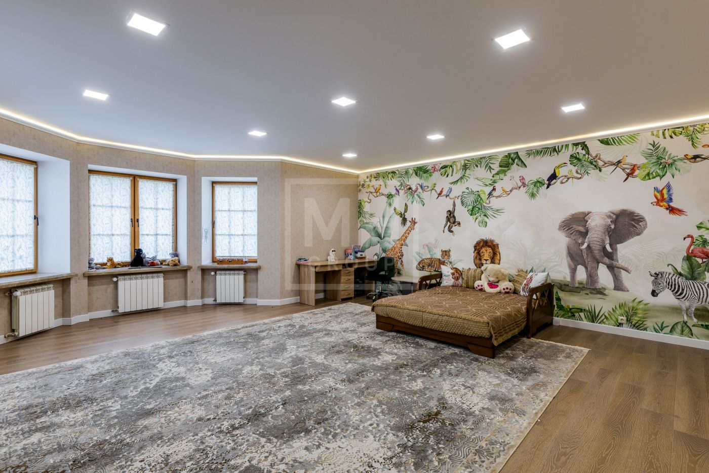 Этаж 3: мастер-спальня с кабинетом, гардеробной и собственным санузлом, а также детская комната с отдельным санузлом.