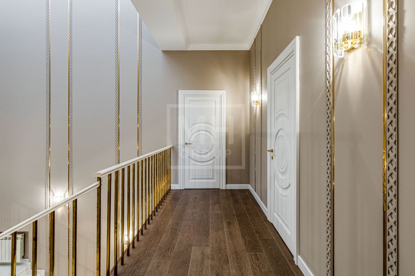 Участок площадью 32 сотки предоставляет достаточно пространства для создания уединенного уголка для отдыха и досуга. Коттеджный поселок премиум класса строго охраняется, а все дома выполнены в едином архитектурном стиле, что
